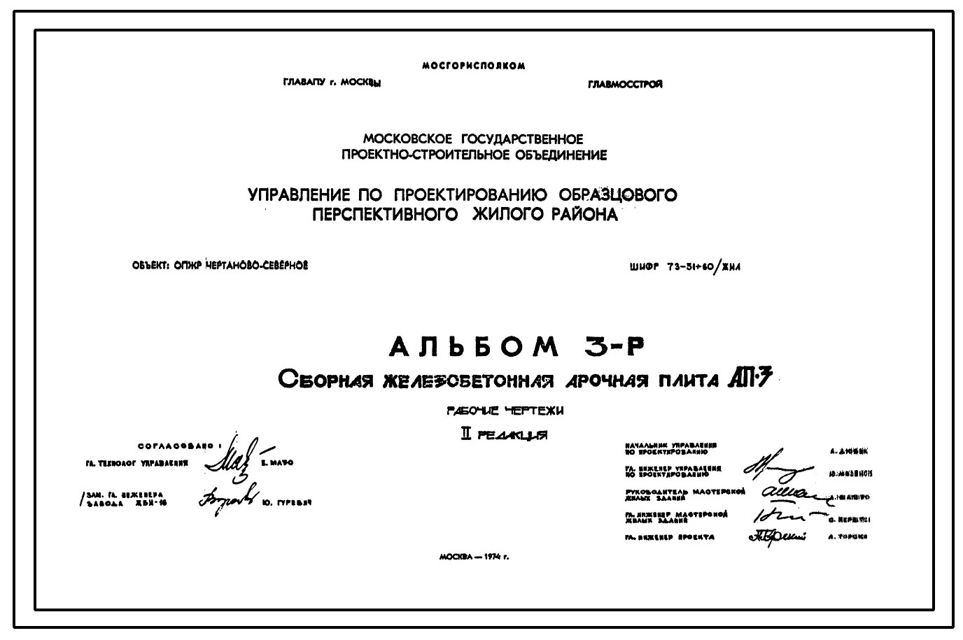 Шифр 73-51-60/ЖИЛ Сборная железобетонная арочная плита АП-3 (1974 г.)
