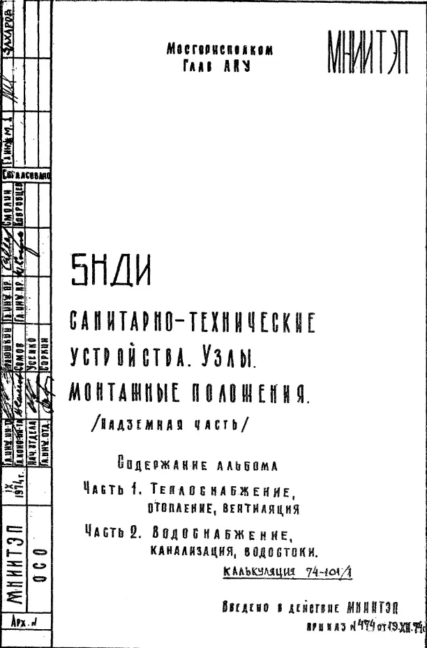Шифр 5НДИ Санитарно-технические устройства. Узлы, монтажные положения (надземная часть) (1974 г.)