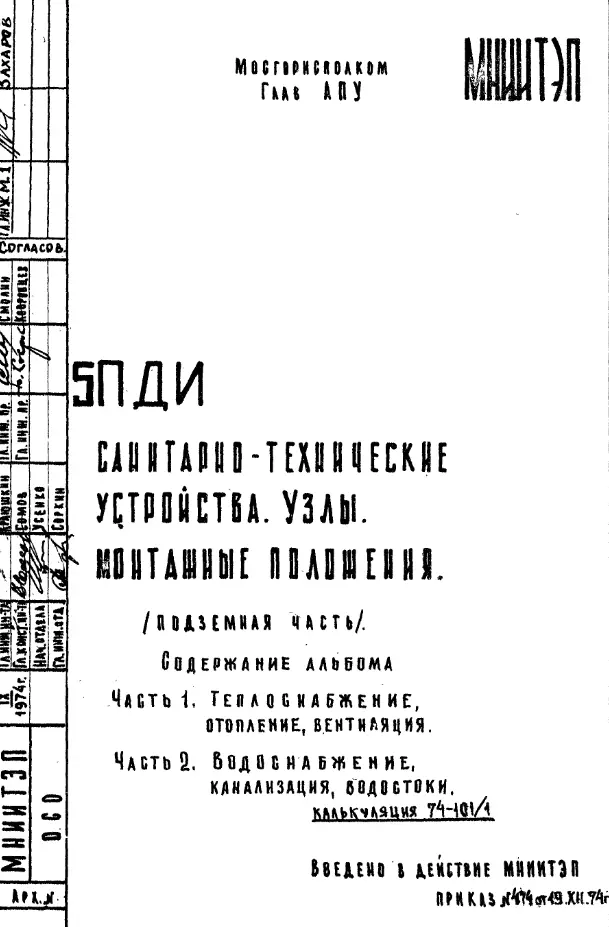 Шифр 5ПДИ Санитарно-технические устройства. Узлы, монтажные положения (подземная часть) (1974 г.)