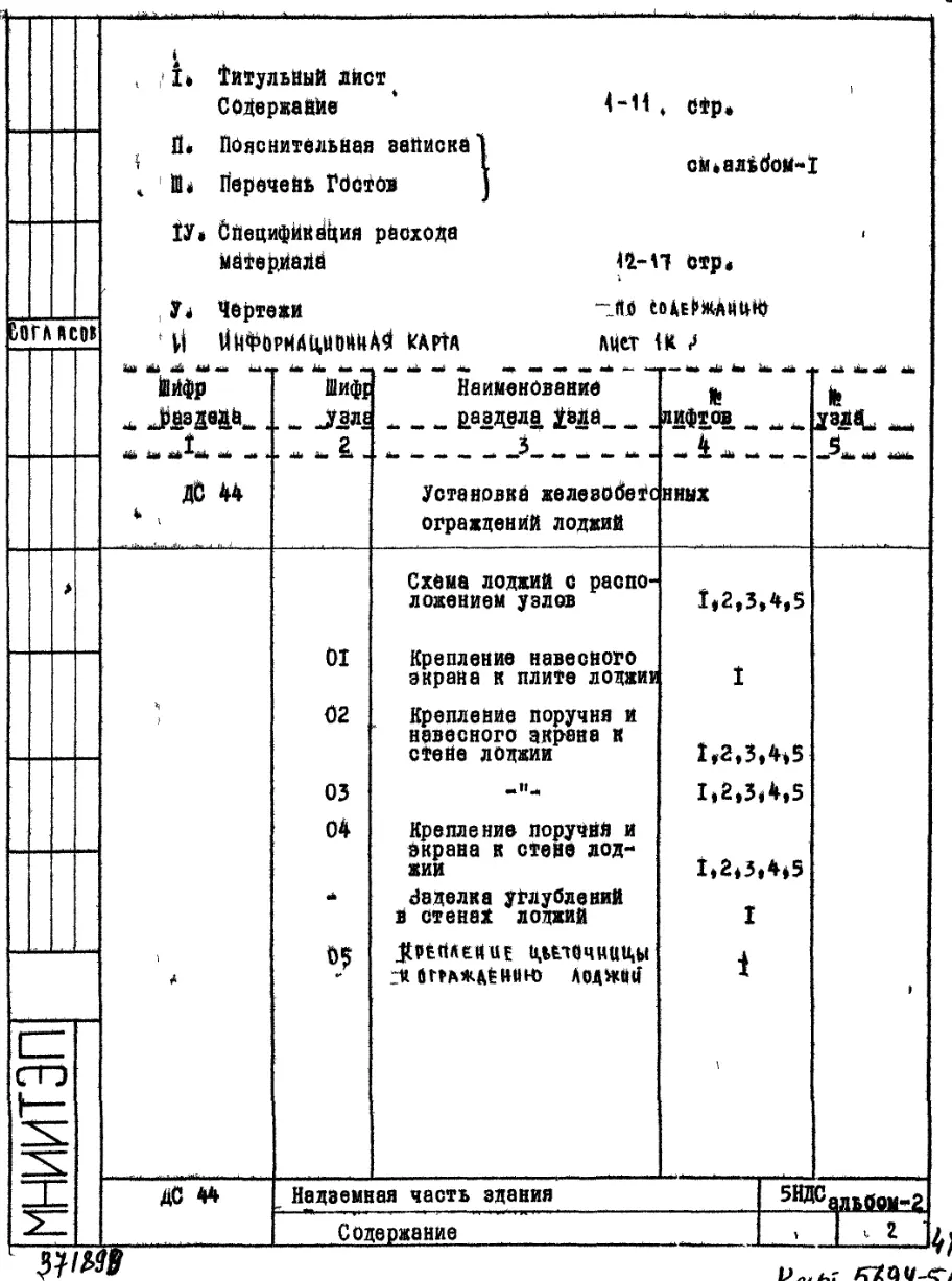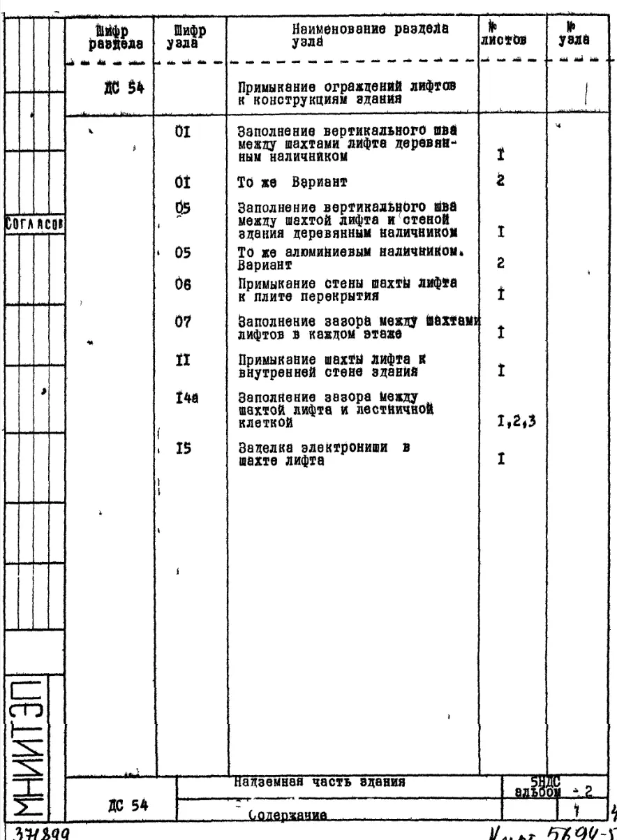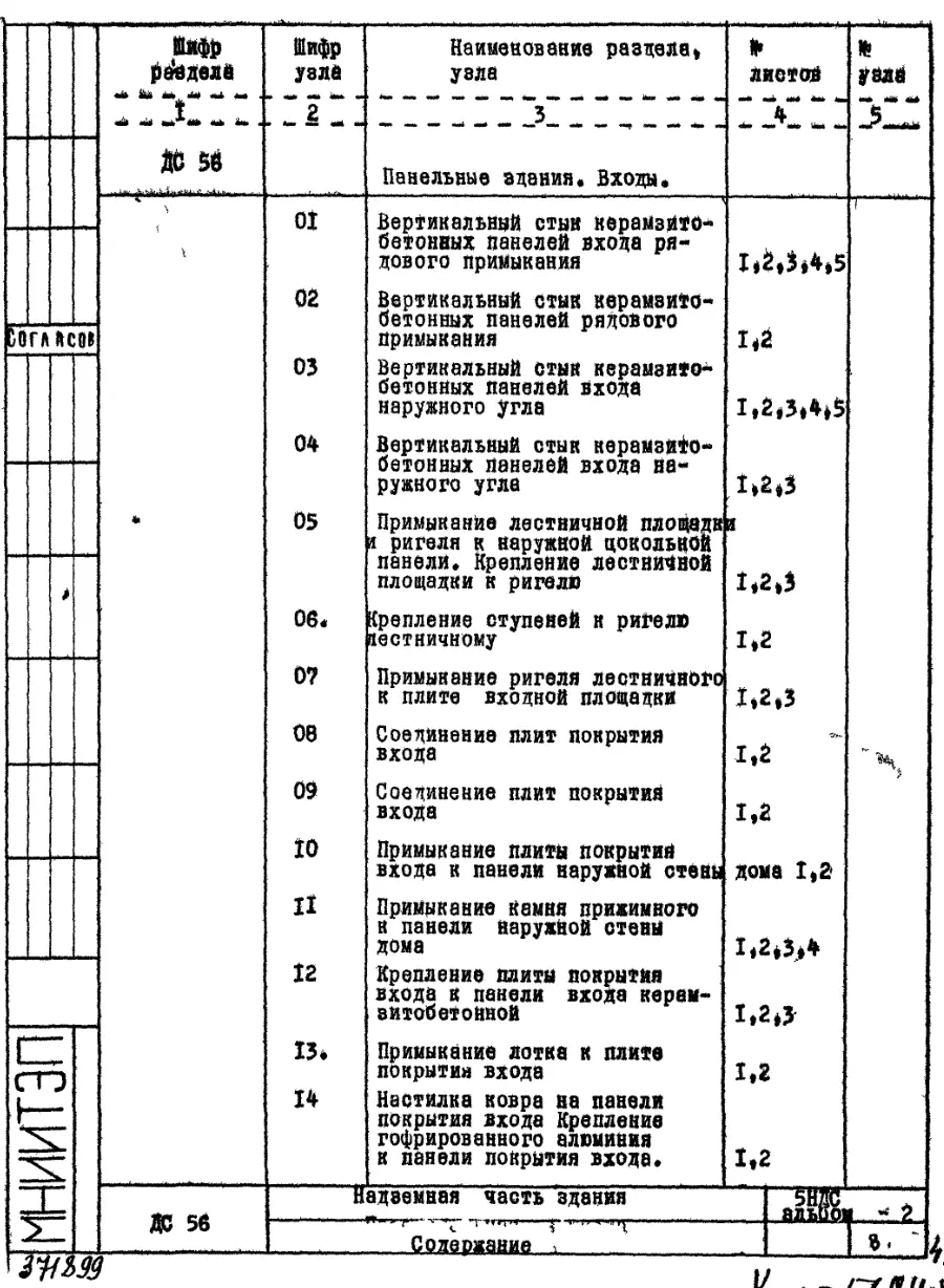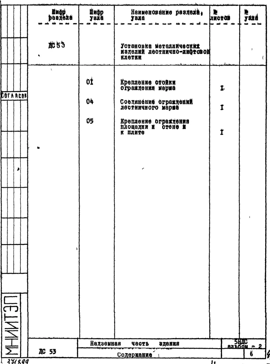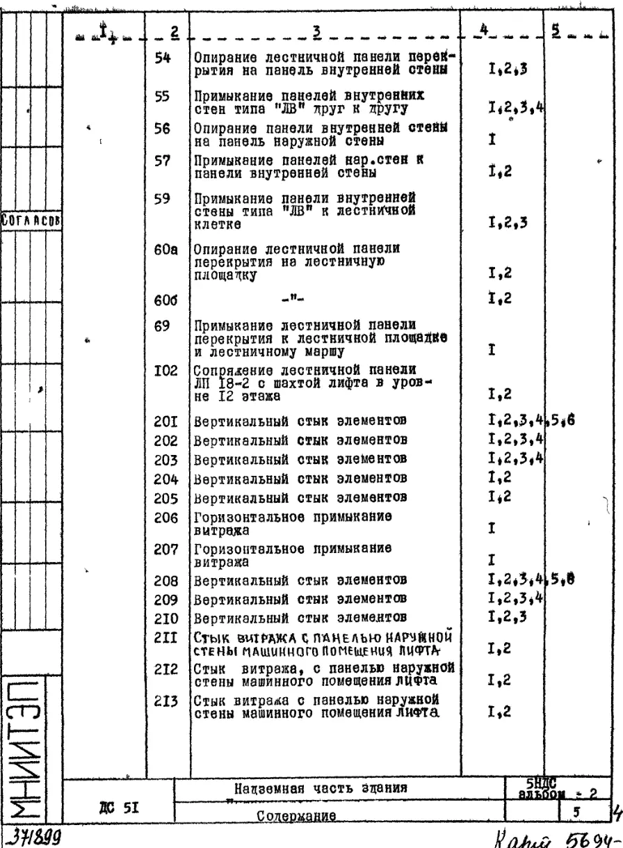 Шифр 5НДС Надземная часть здания. Детали узлов.
