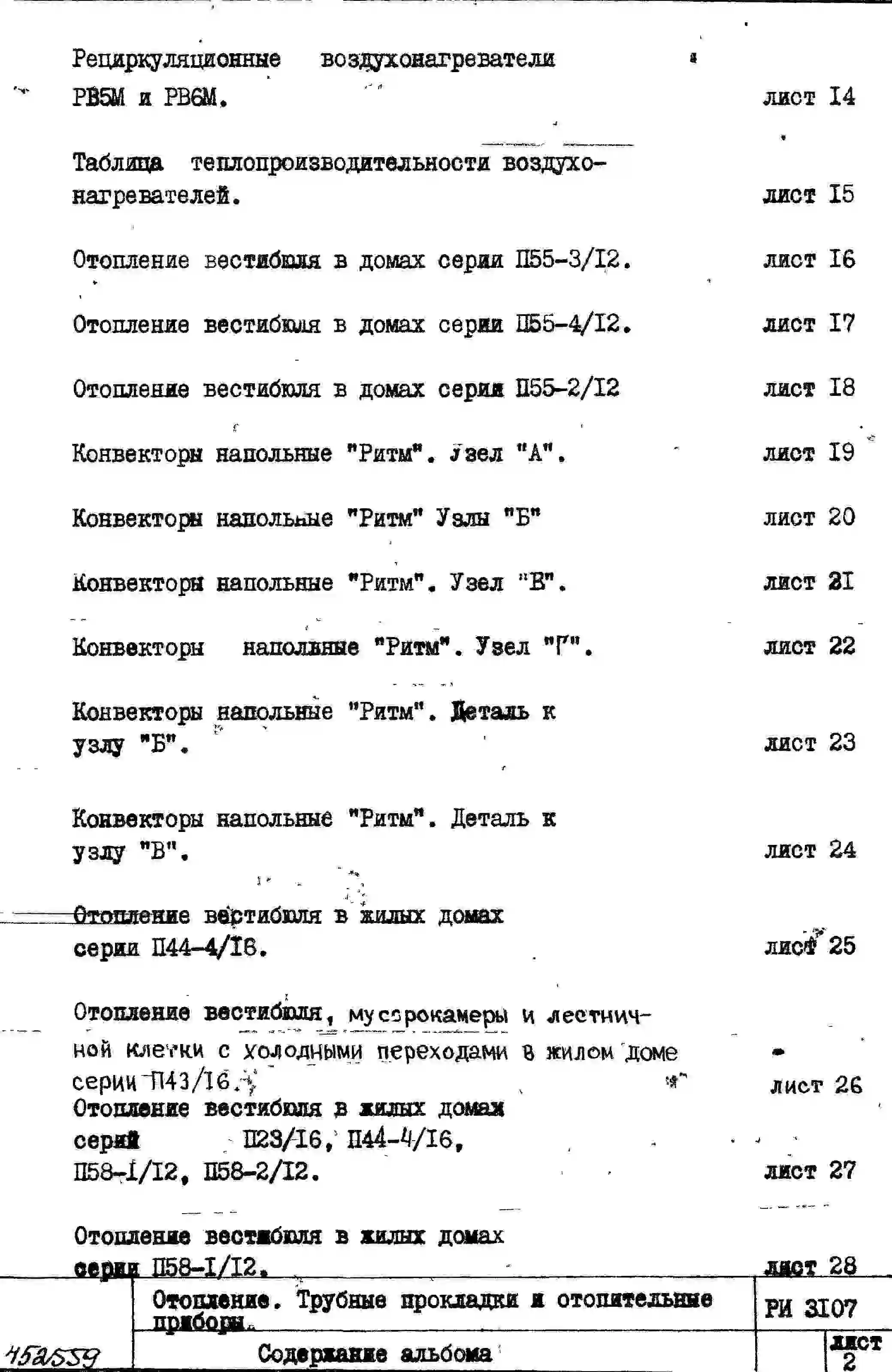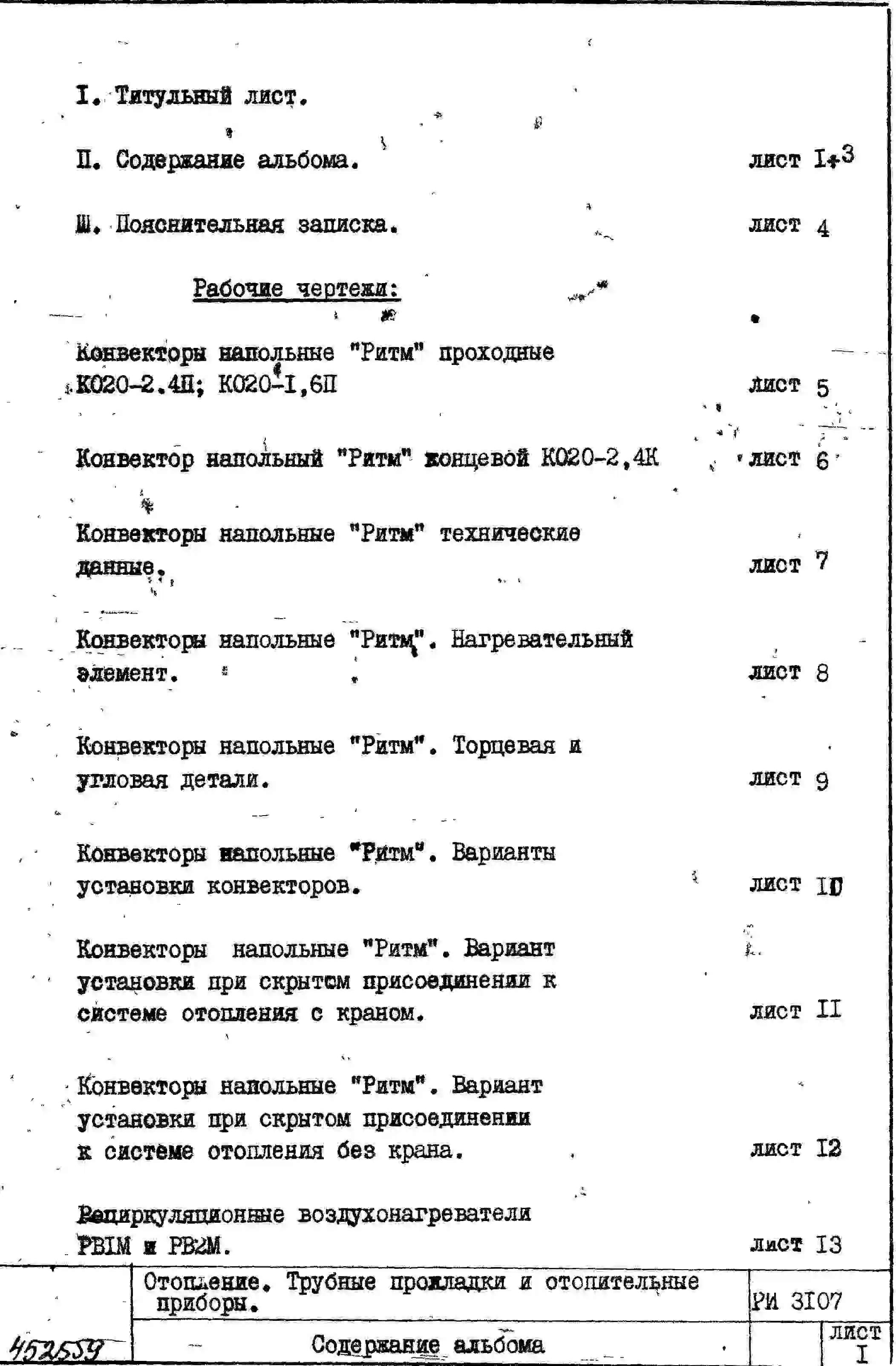 Шифр РИ 3107 Отопление. Трубные прокладки и отопительные приборы (1978 г.)
