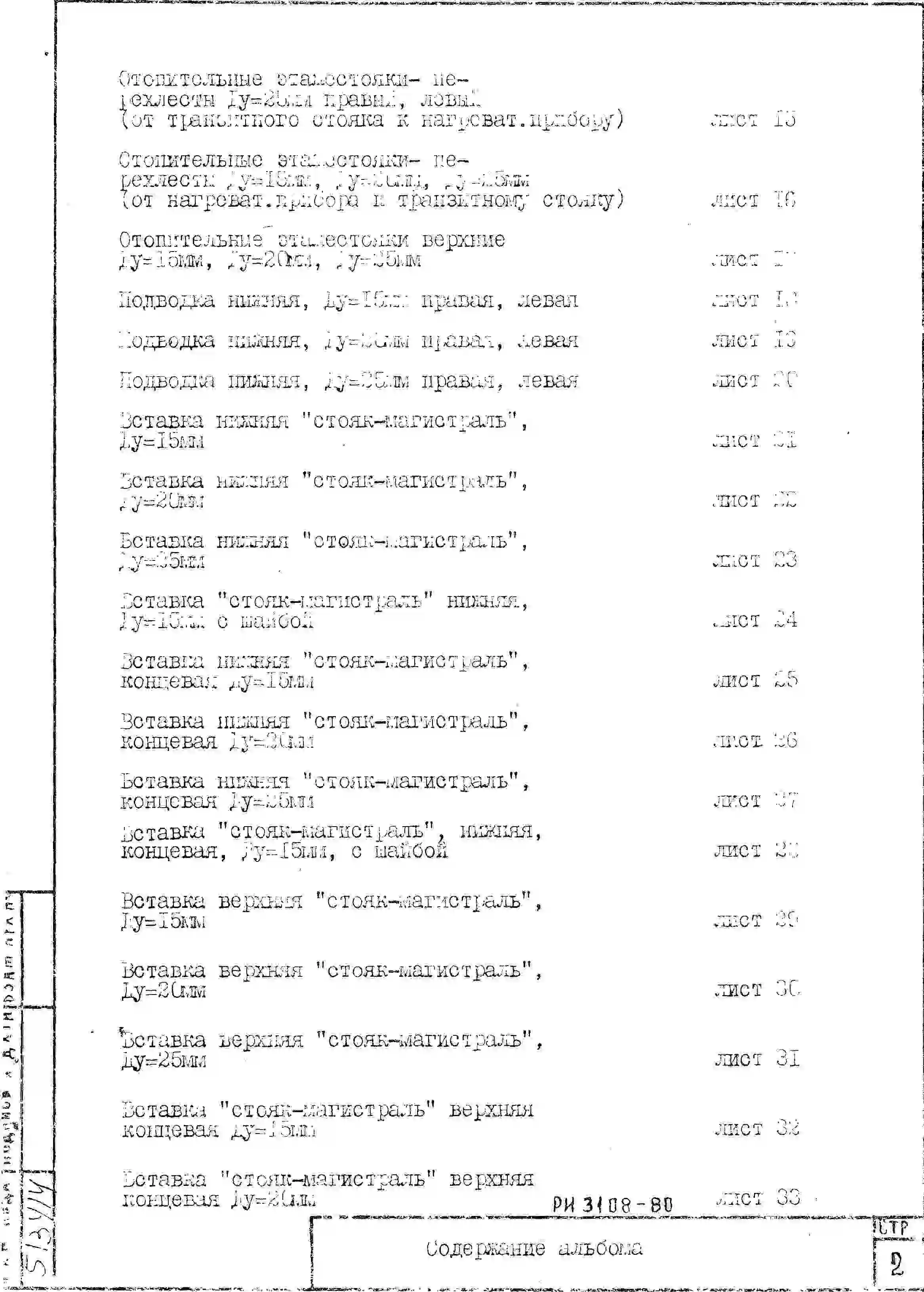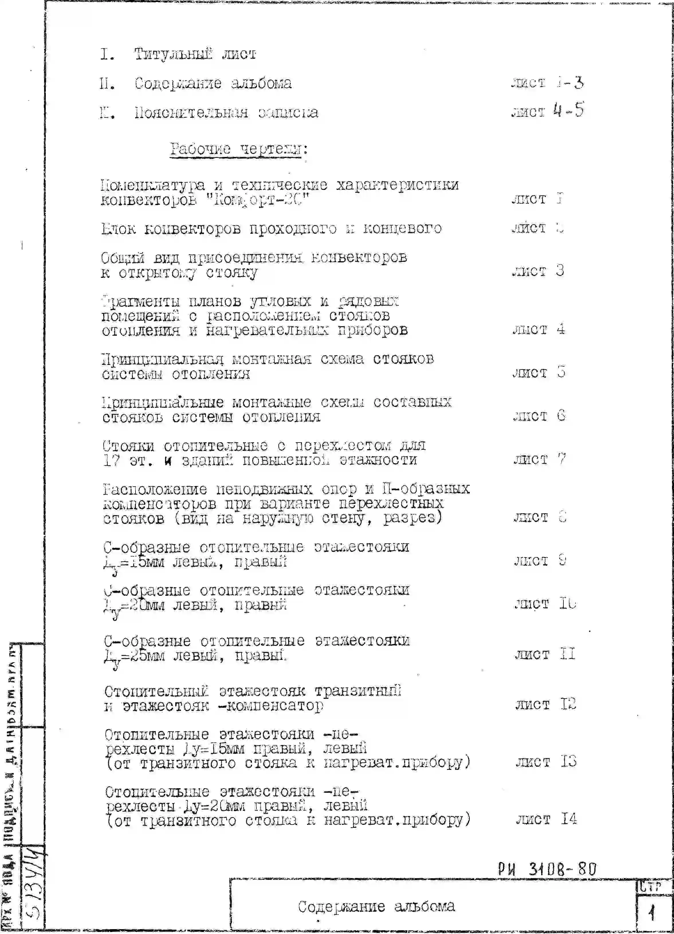 Шифр РИ 3108-80 Отопление. Стояки, подводки состем с конвекторами "Комфорт -20" (1980 г.)