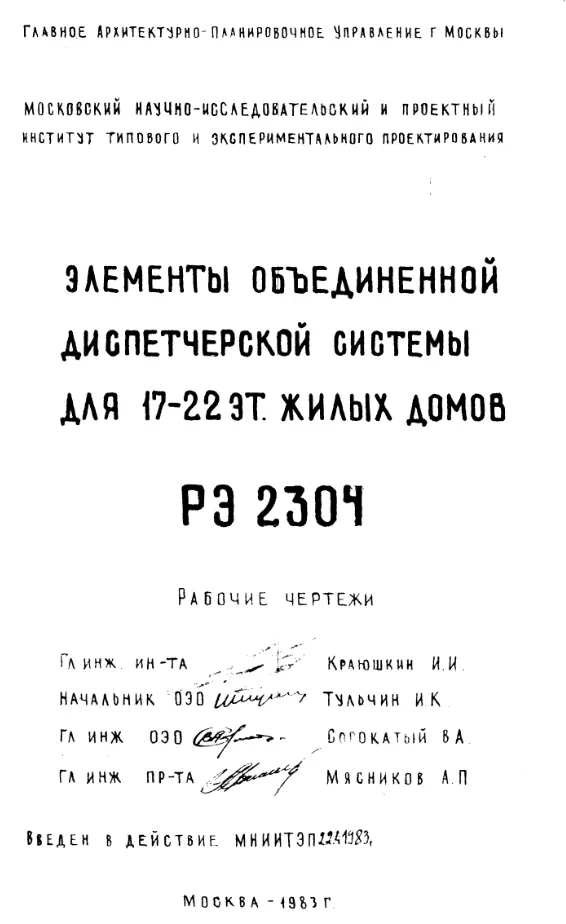 Шифр РЭ 2304 Элементы объединенной диспетчерской системы для 17-22 эт. жилых домов (1983 г.)