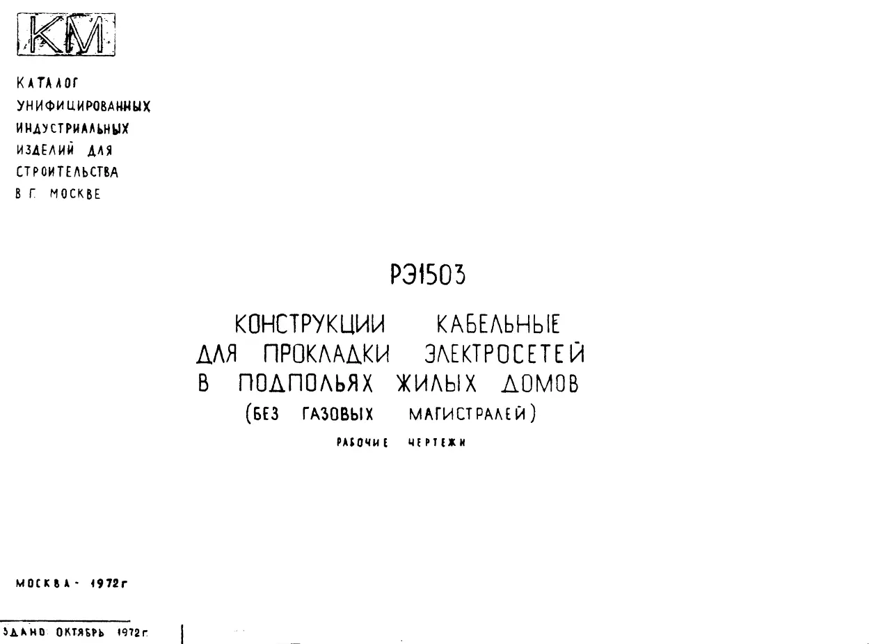 Шифр РЭ 1503 Конструкции кабельные для прокладки электросетей в подпольях жилых домов (без газовых магистралей) (1972 г.)