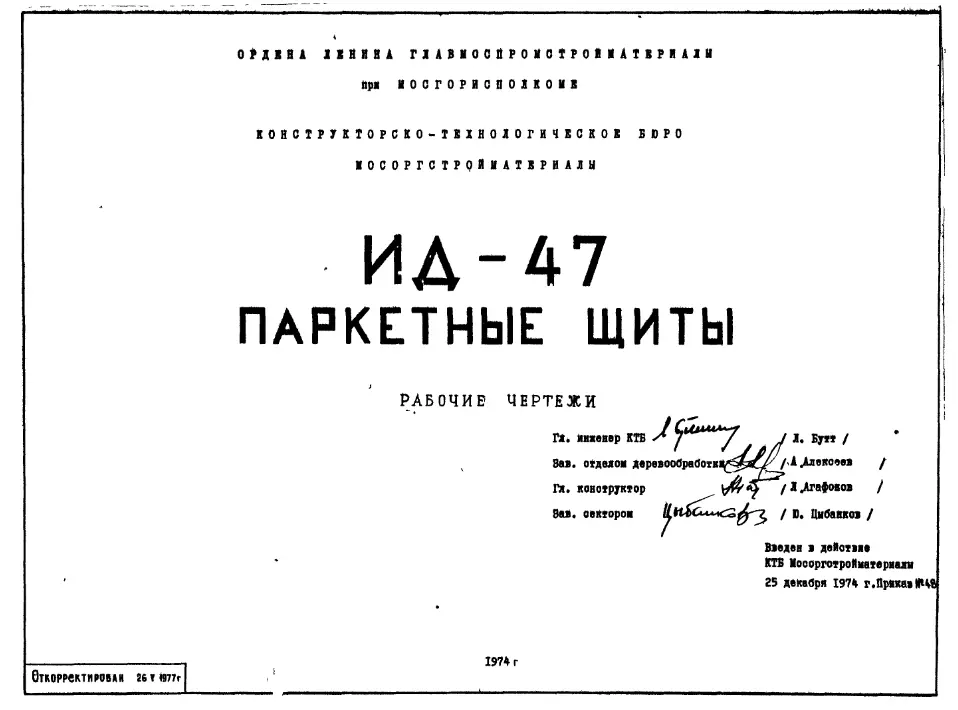 Шифр ИД-47 Паркетные щиты. Рабочие чертежи.