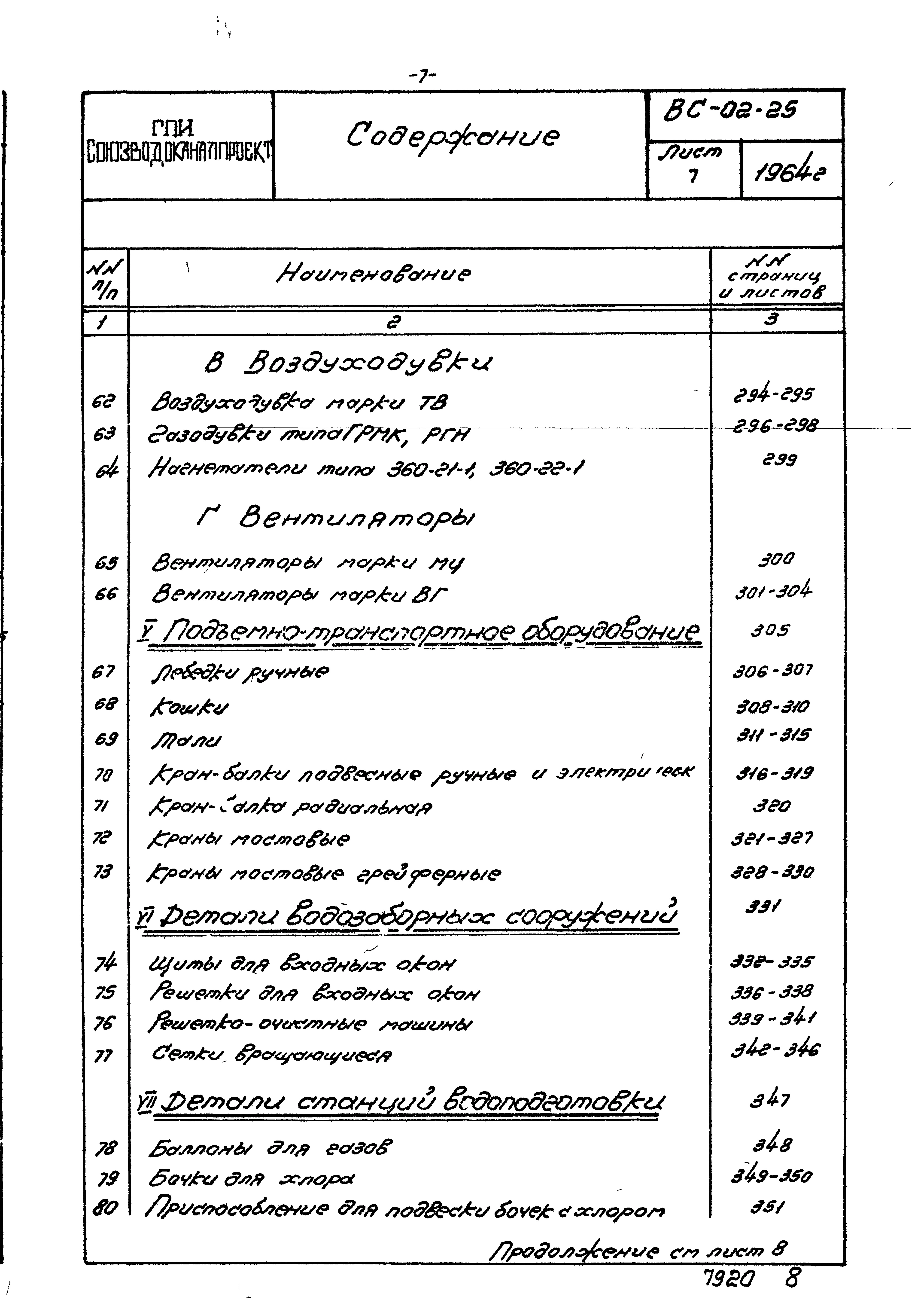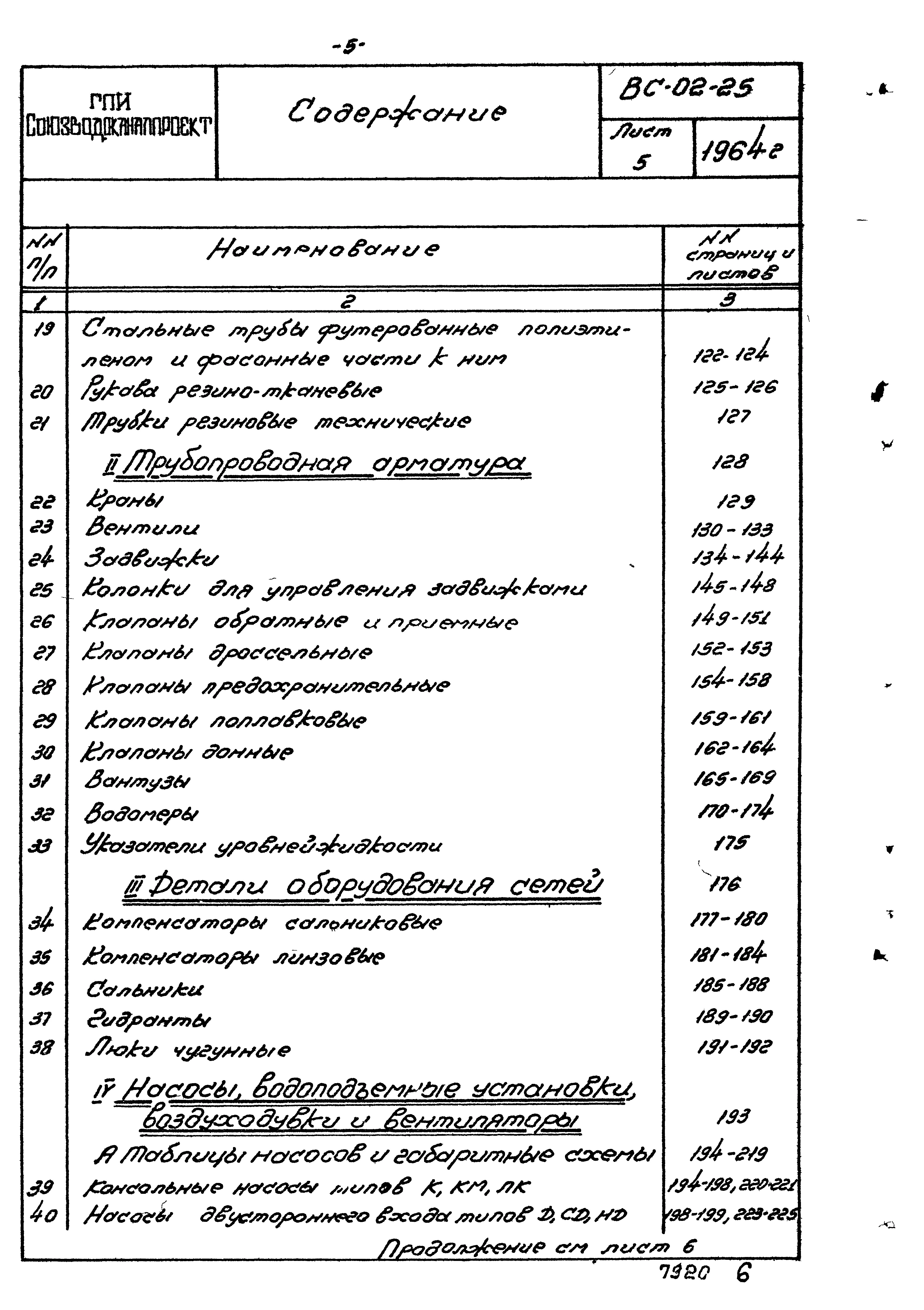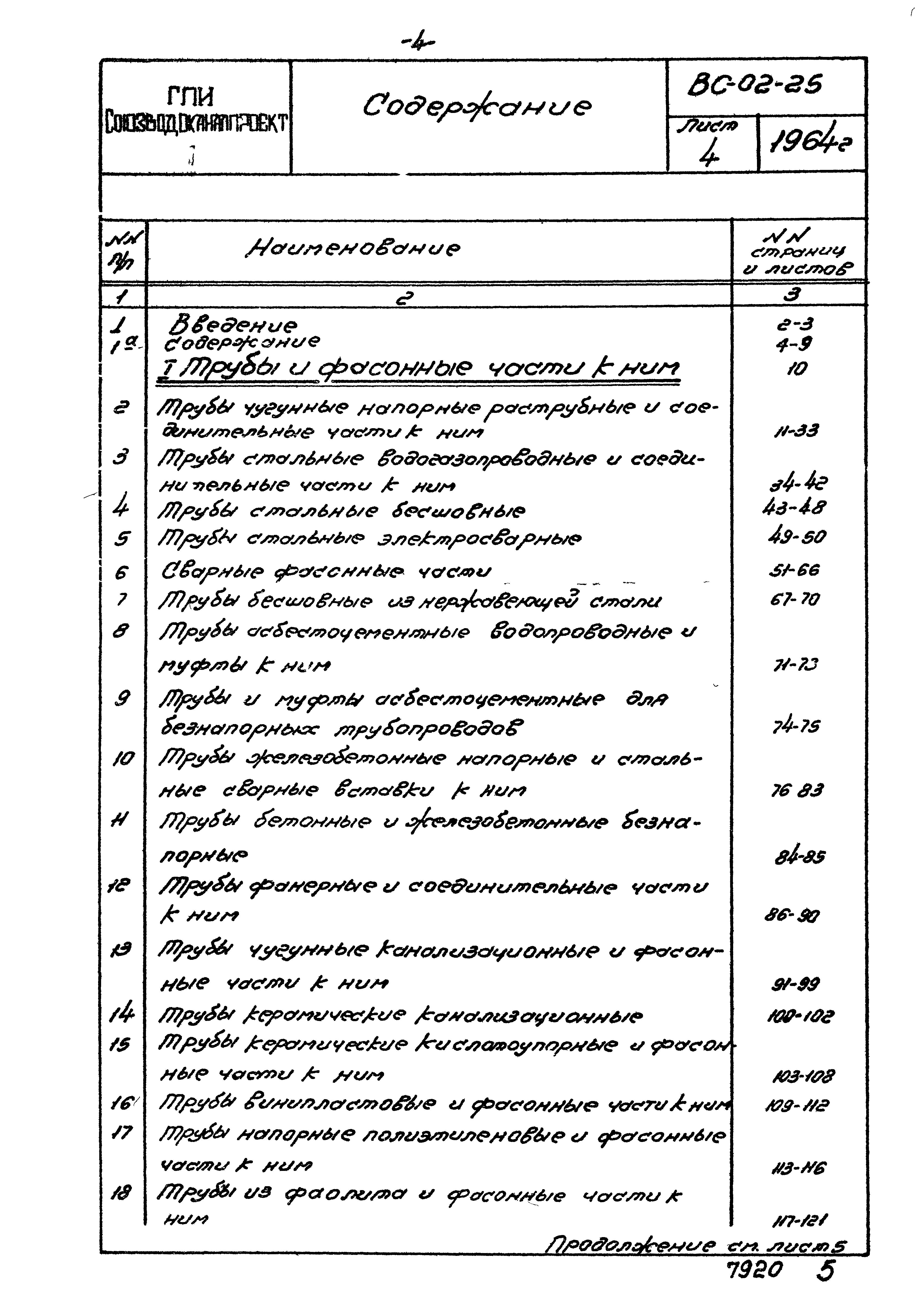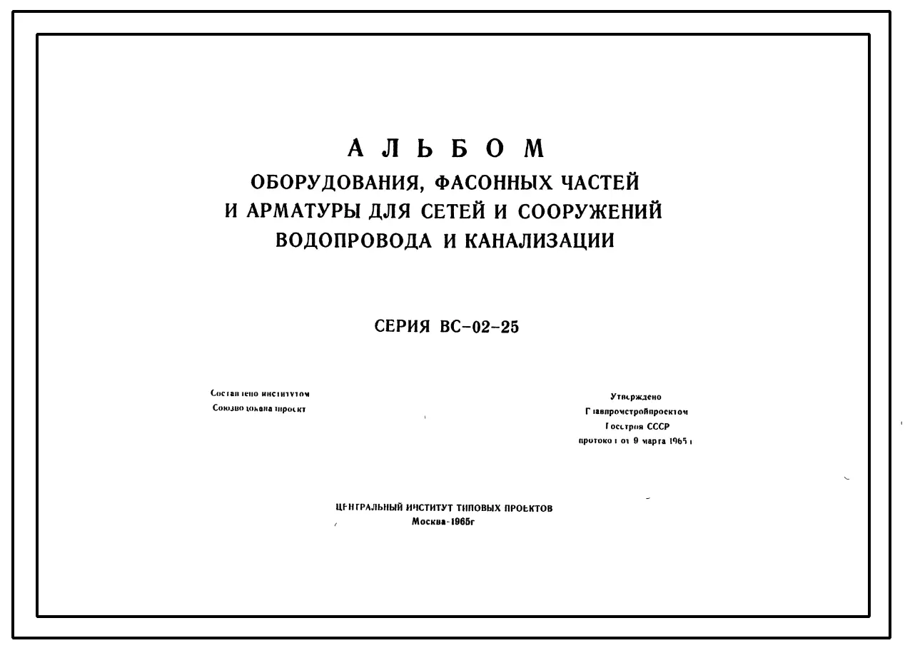 Серия ВС-02-25 Альбом оборудования, фасонных частей и арматуры для сетей и сооружений водопровода и канализации