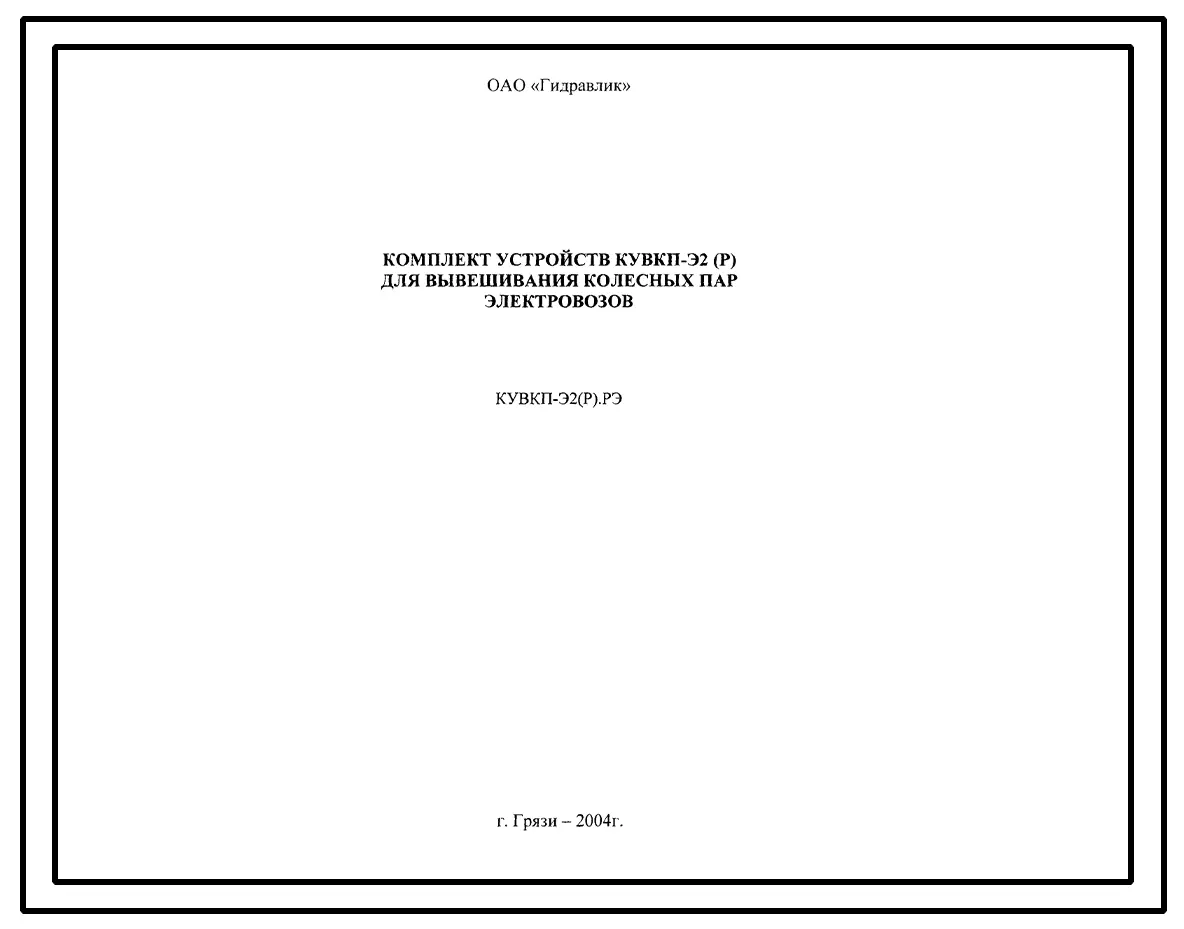 Шифр КУВКП-Э2(Р).РЭ Комплект устройств для вывешивания колесных пар электровозов