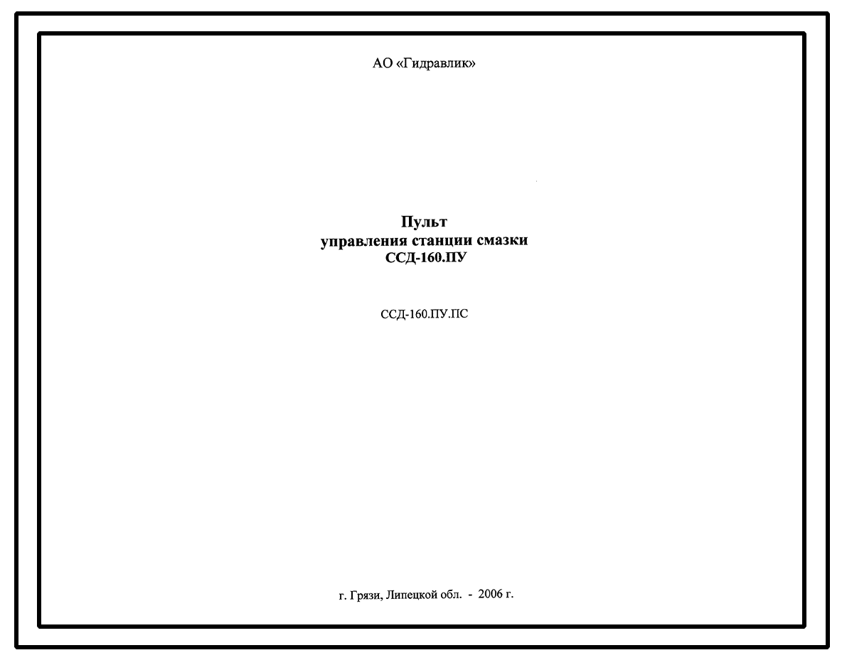 Шифр ССД-160.ПУ.ПС Пульт управления станции смазки ССД-160.ПУ