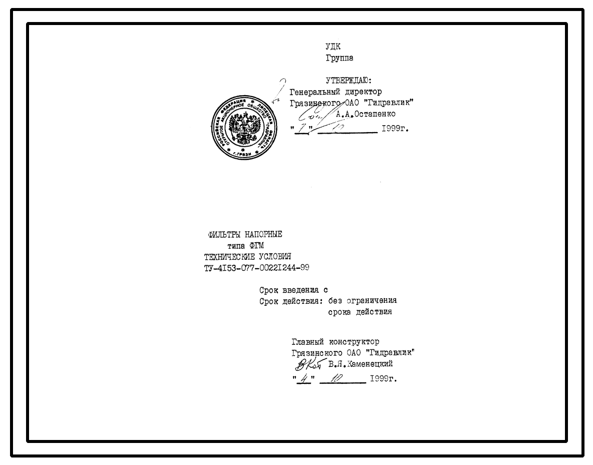 Шифр ТУ-4153-077-00221244-99 Фильтры напорные типа ФГМ