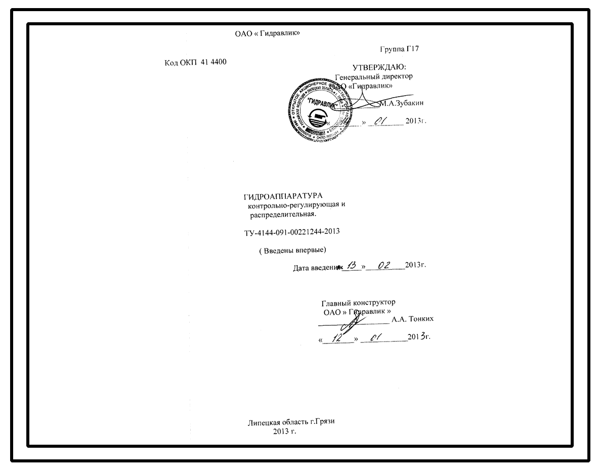 Шифр ТУ-4144-091-00221244-2013 Гидроаппаратура контрольно-регулирующая и распределительная