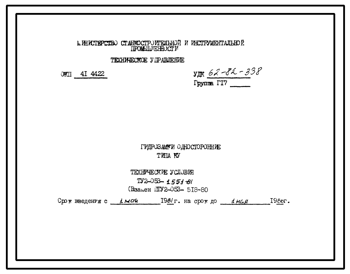 Шифр ТУ2-053-1551-81 Гидрозамки односторонние типа КУ