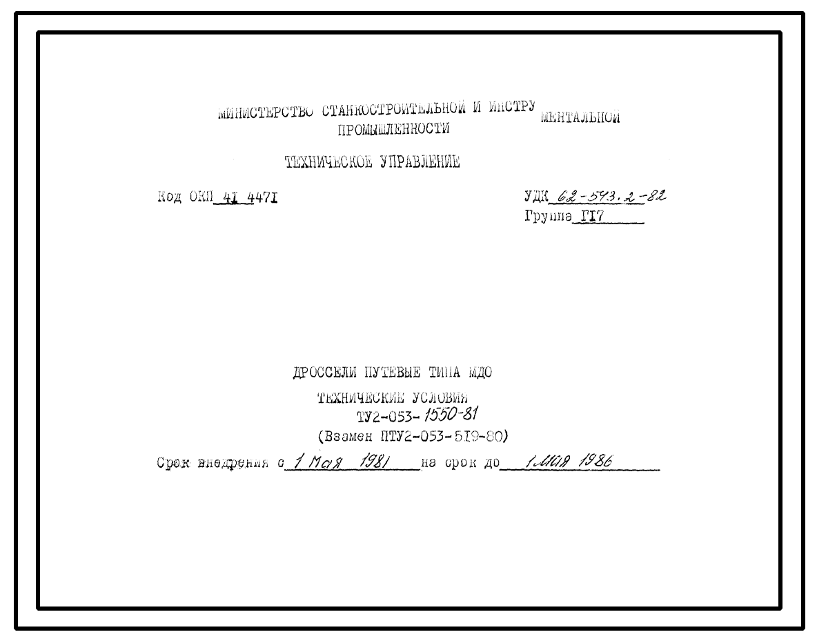 Шифр ТУ2-053-1550-81 Дроссели путевые типа МДО