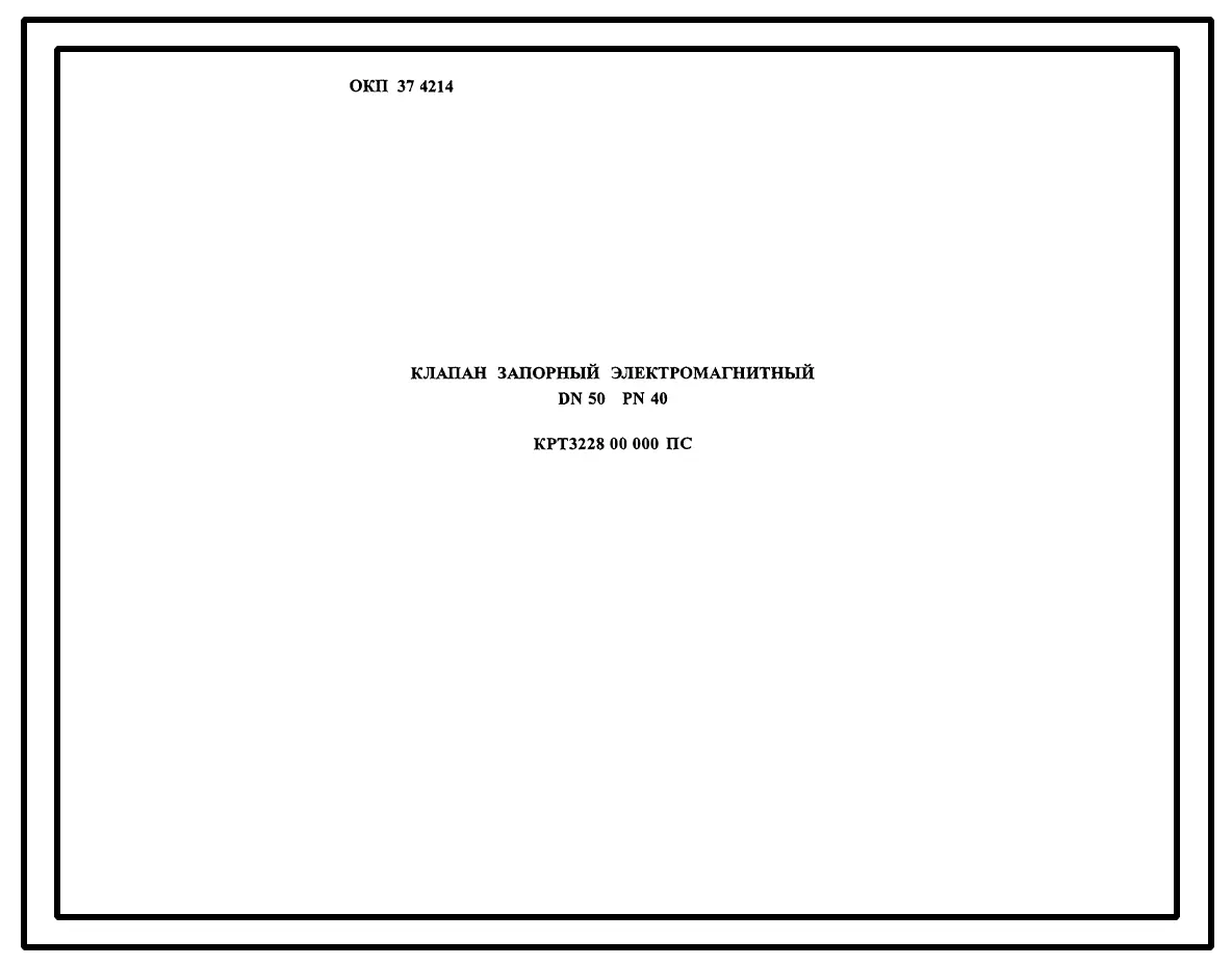 Шифр КРТ3228.00.000 Клапан запорный электромагнитный DN50 PN40