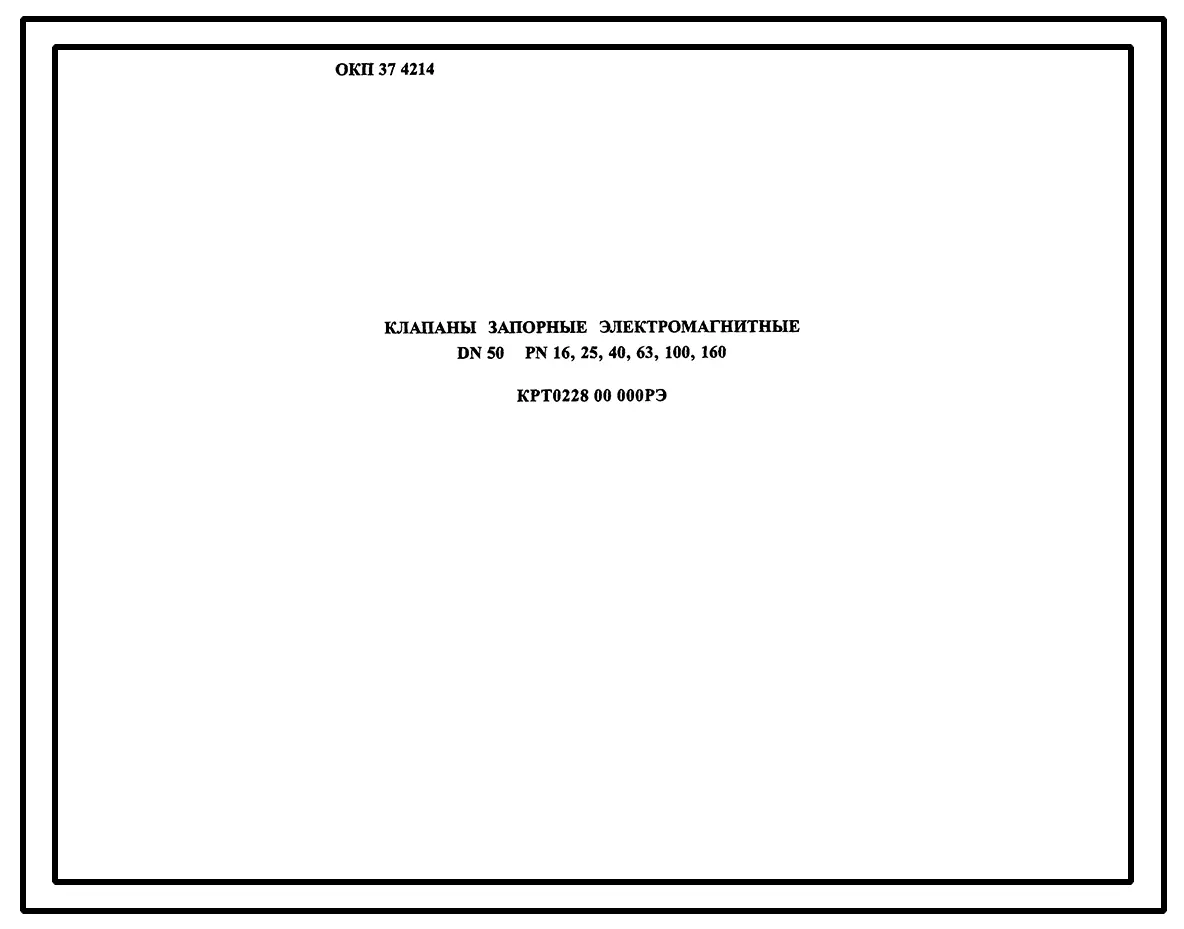 Шифр КРТ0228.00.000 Клапаны запорные электромагнитные DN50, PN16; 25; 40; 63; 100; 160