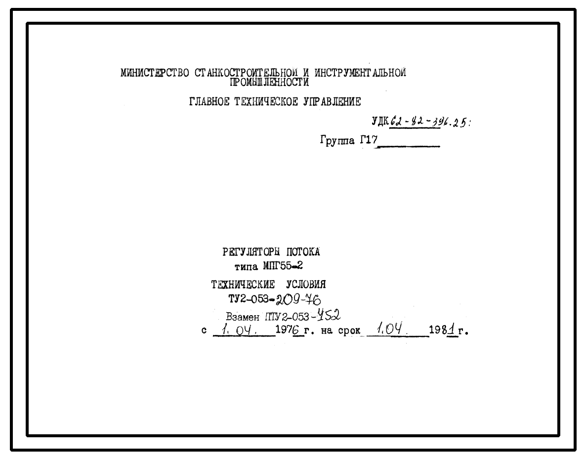 Шифр ТУ2-053-209-76 Регуляторы потока типа МПГ55-2