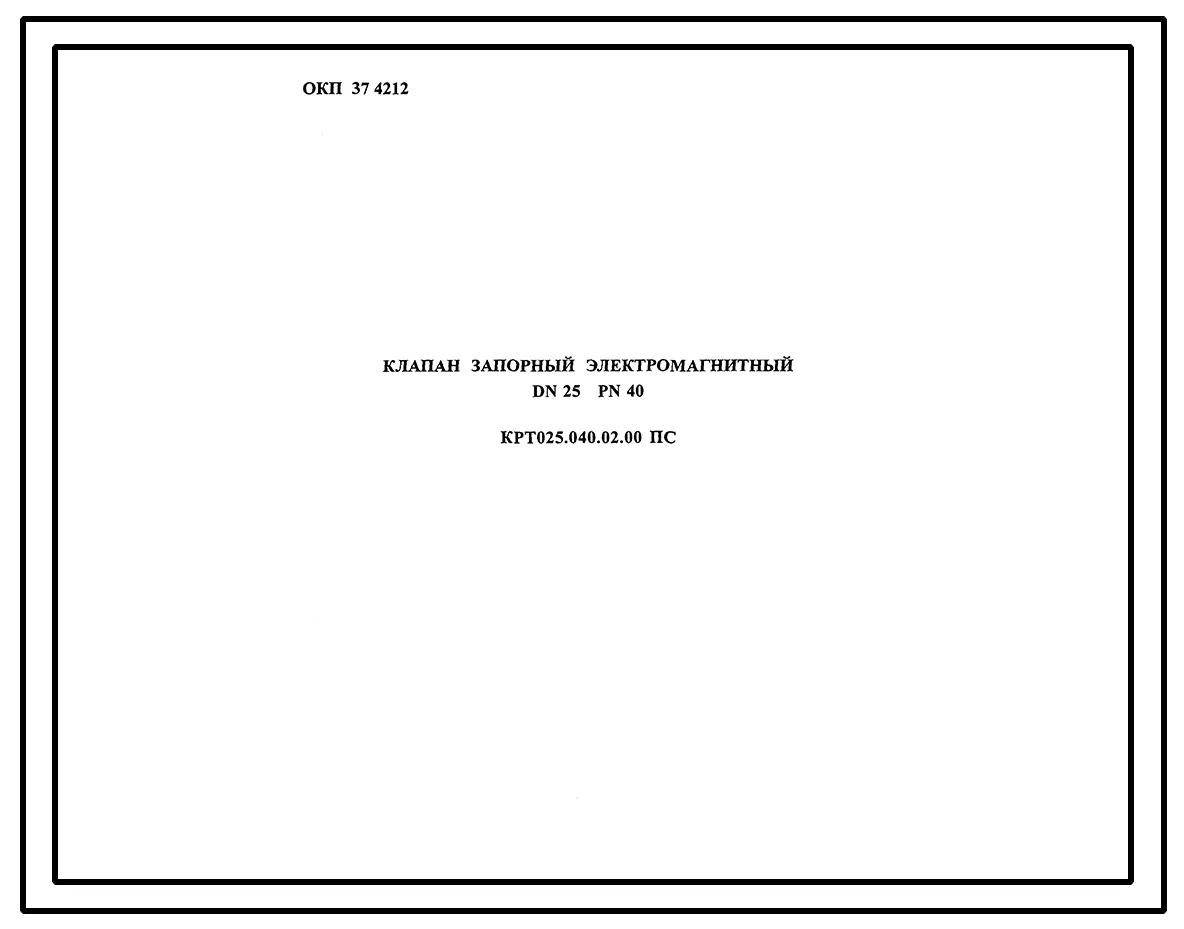 Шифр КРТ025.040.02.00 Клапан запорный электромагнитный DN25 PN40