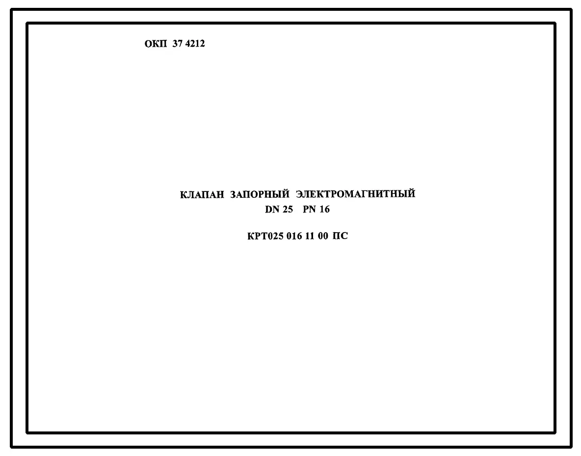 Шифр КРТ025.016.11.00 Клапан запорный электромагнитный DN25 PN16
