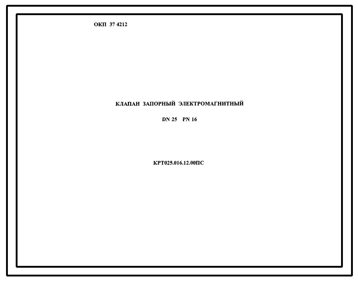 Шифр КРТ025.016.12.00 Клапан запорный электромагнитный DN25 PN16