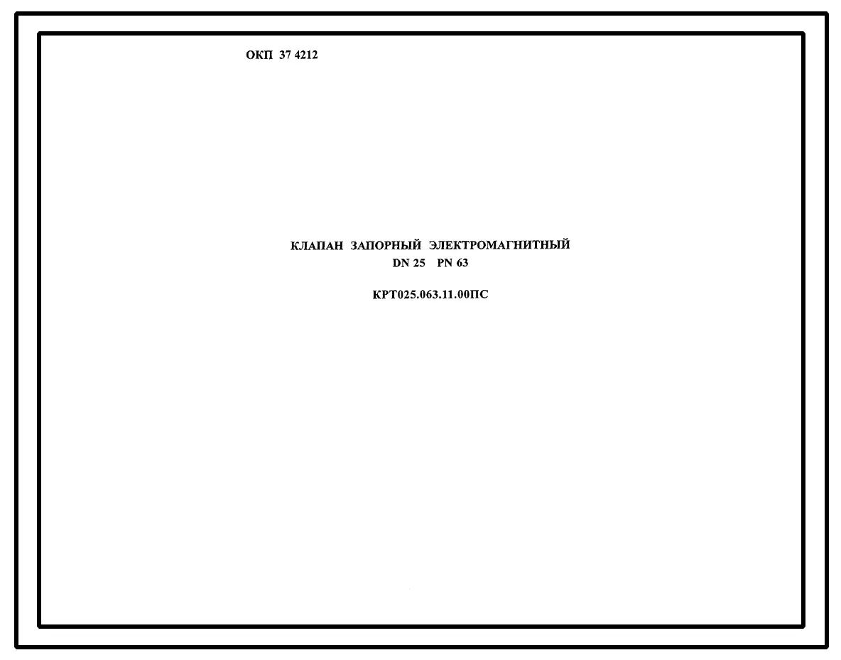Шифр КРТ025.063.11.00 Клапан запорный электромагнитный DN25 PN63