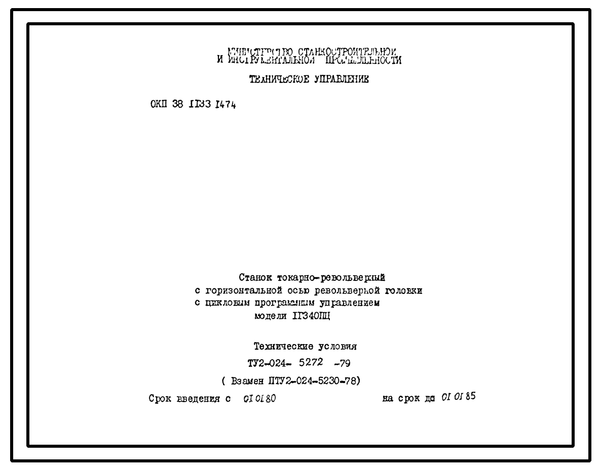 Шифр ТУ2-024-5272-79 Станок токарно-револьверный с горизонтальной осью револьверной головки с цикловым программным управлением модели 1Г340ПЦ