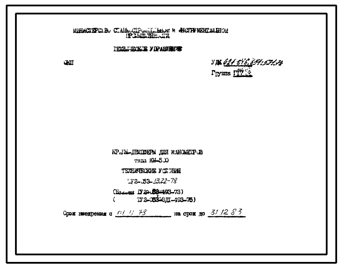 Шифр ТУ2-053-1372-78 Краны-демпферы для манометров типа КМ-500