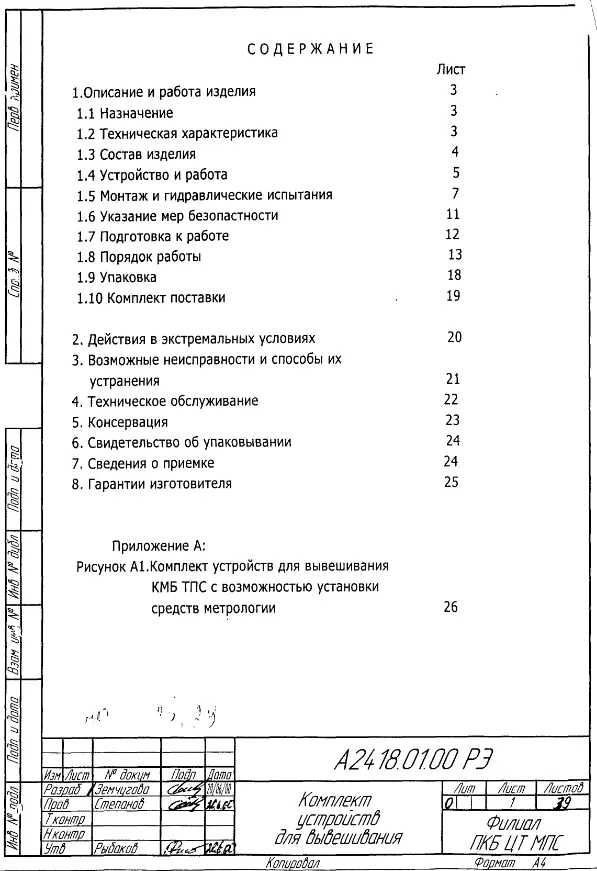 Шифр А2418.01.00.РЭ Комплект устройств для вывешивания КМБ ТПС с возможностью установки средств метрологии