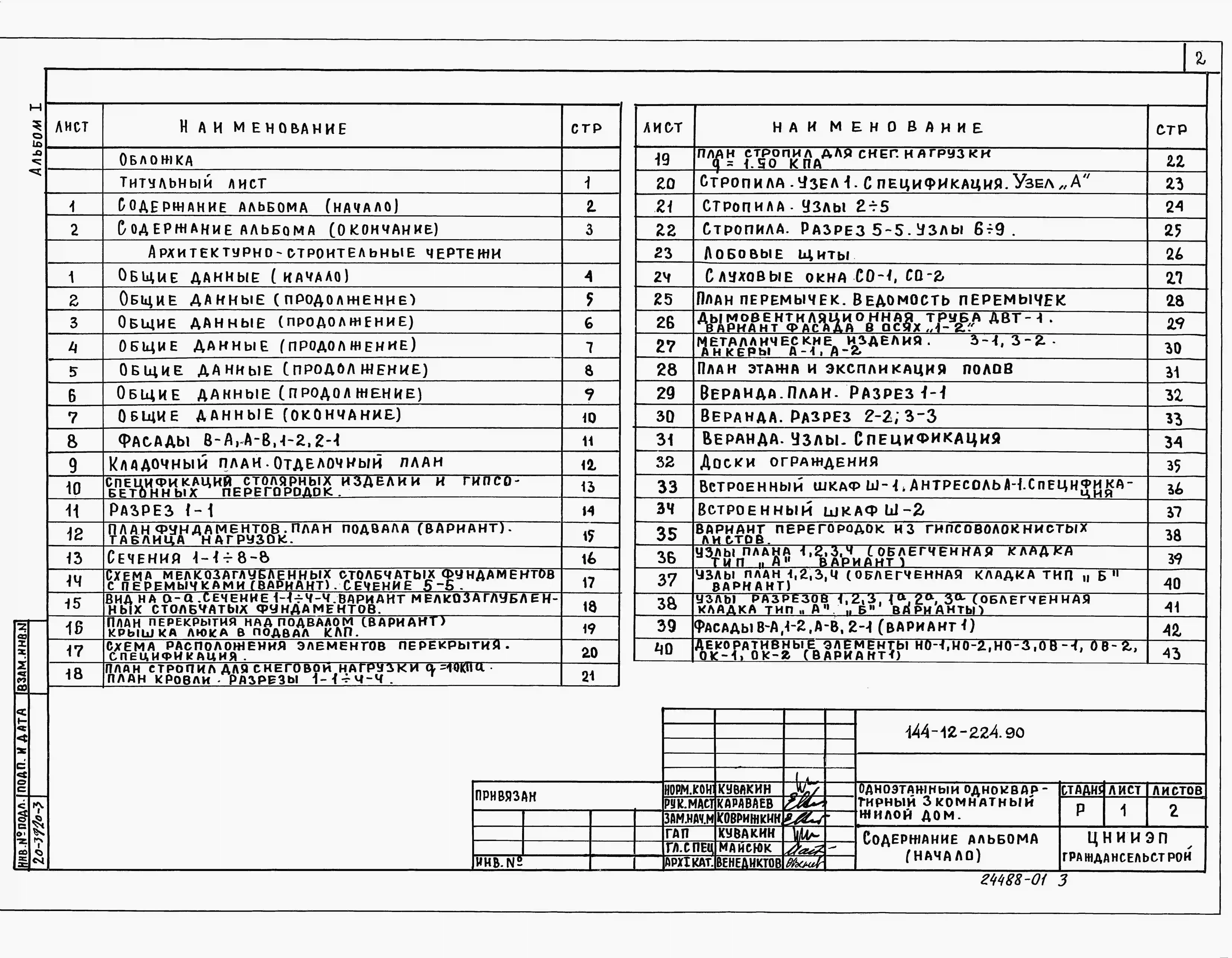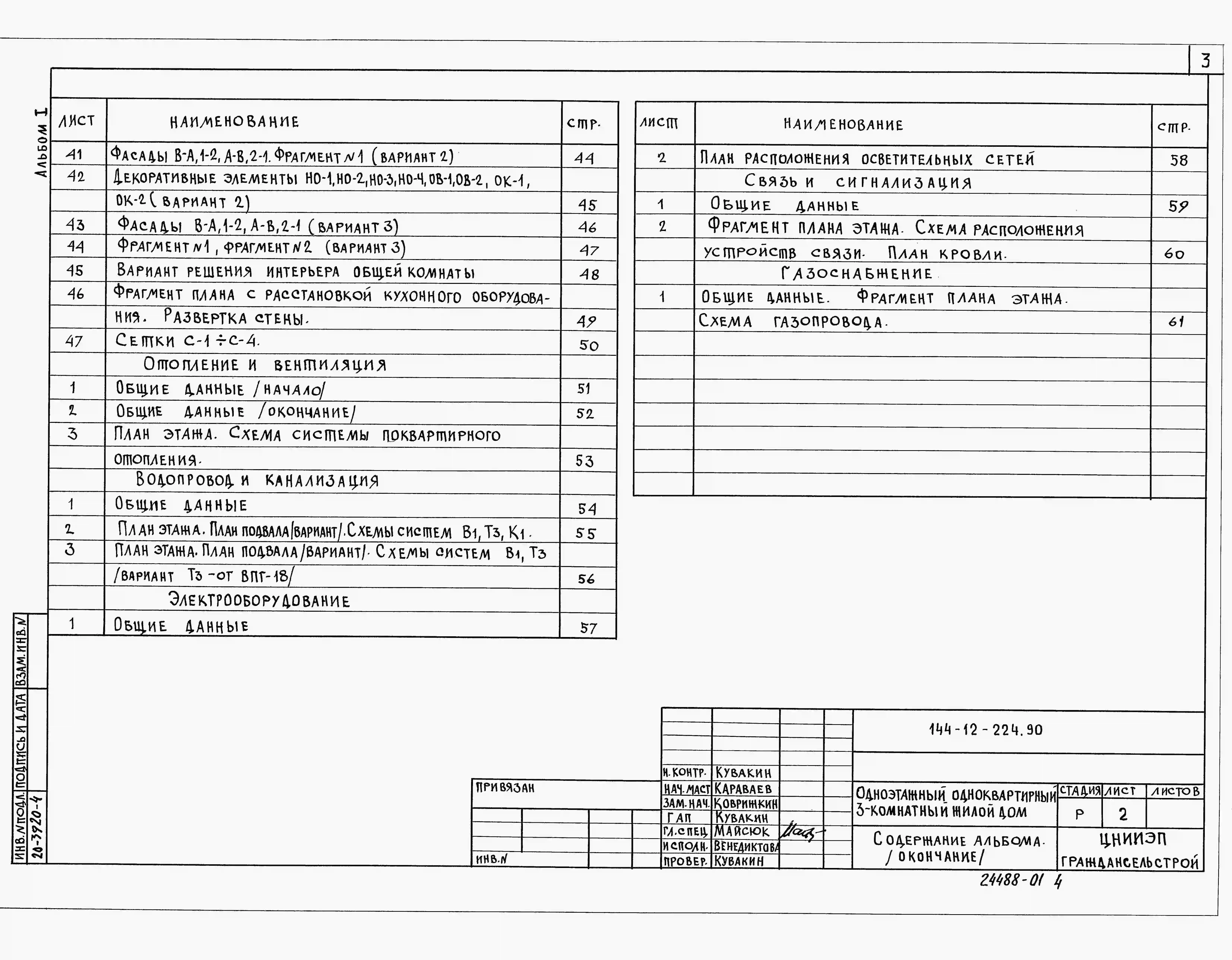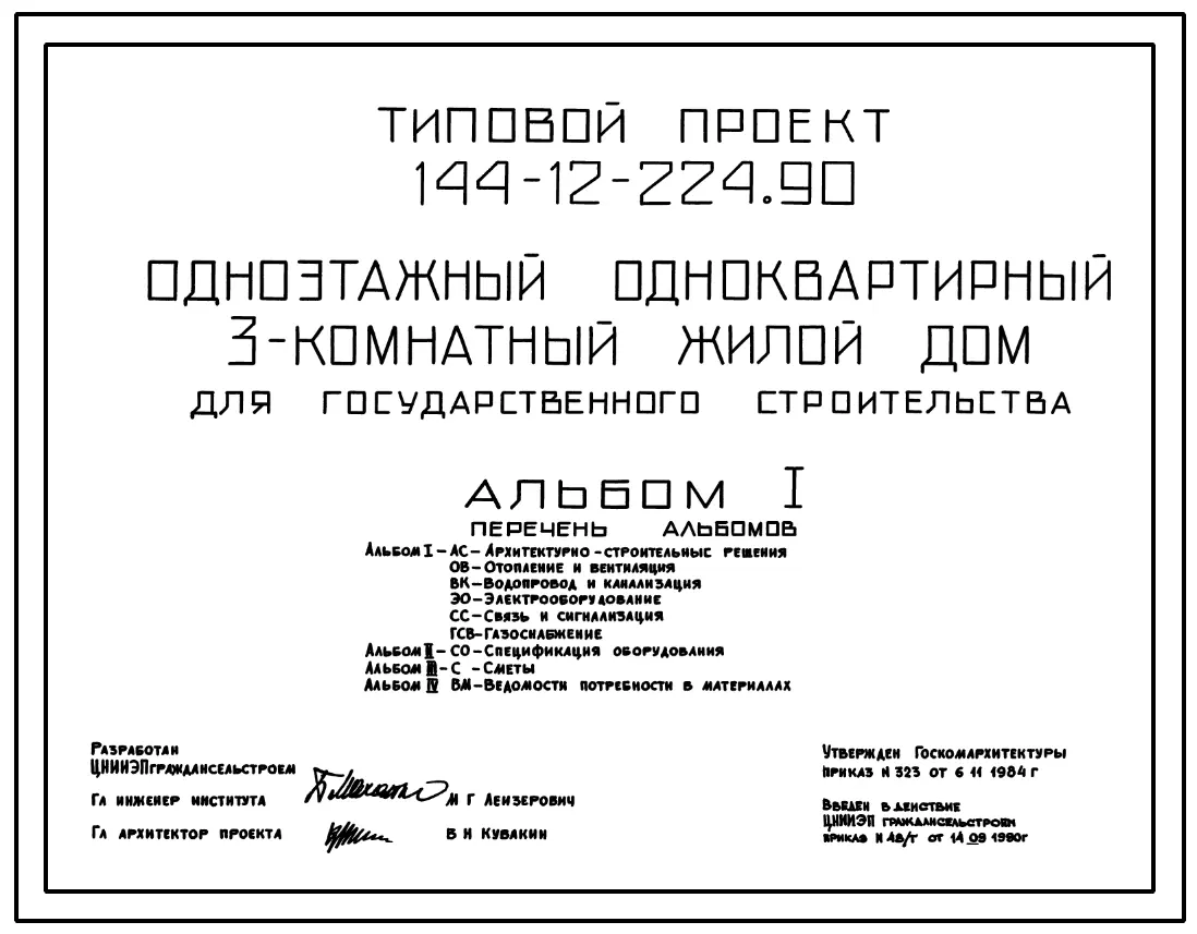 Типовой проект 144-12-224.90 Одноэтажный одноквартирный 3-комнатный жилой дом для государственного строительства. Чертежи (формат TIF) Паспорт проекта (формат PDF)