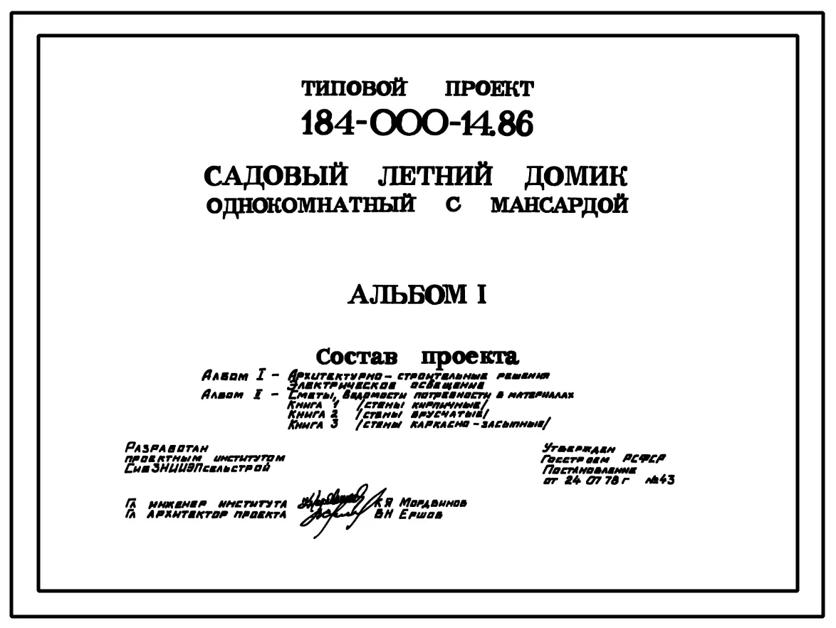 Типовой проект 184-000-14.86 Однокомнатный летний садовый домик с мансардой (разработаны варианты брусчатые и каркасно-засыпные). Площадь, м2: общая 27,6, мансарды 12,8, веранды 9,5 (СТЕНЫ ДЕРЕВЯННЫЕ, БРУСЧАТЫЕ, БРЕВЕНЧАТЫЕ, ДЕРЕВЯННЫЕ КАРКАСНЫЕ, ДЕРЕВЯНН. Паспорт проекта (формат PDF) Чертежи (формат TIF)