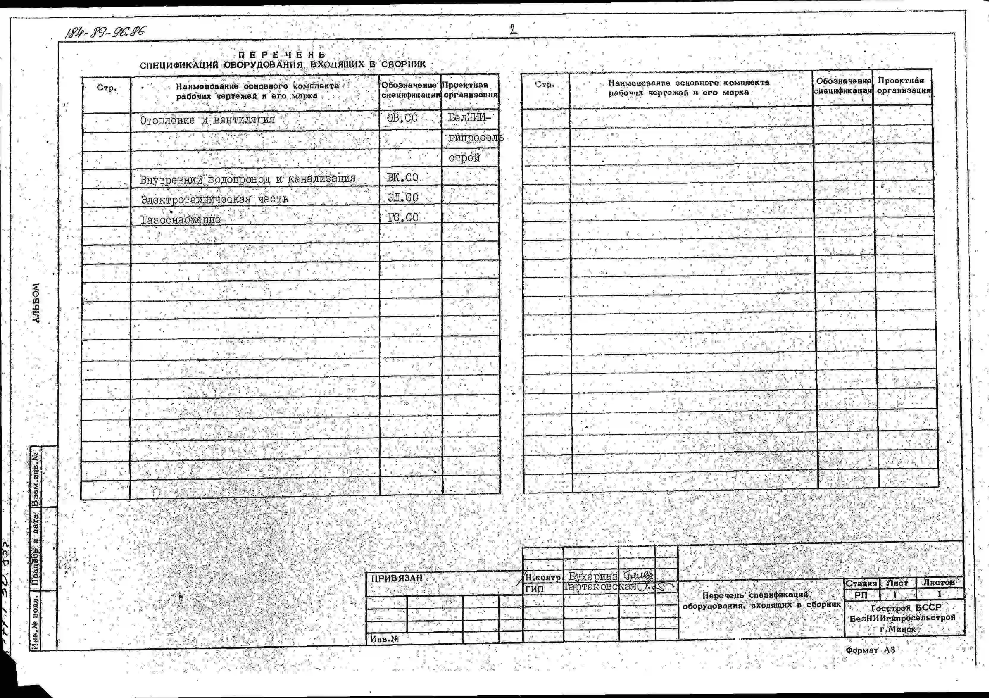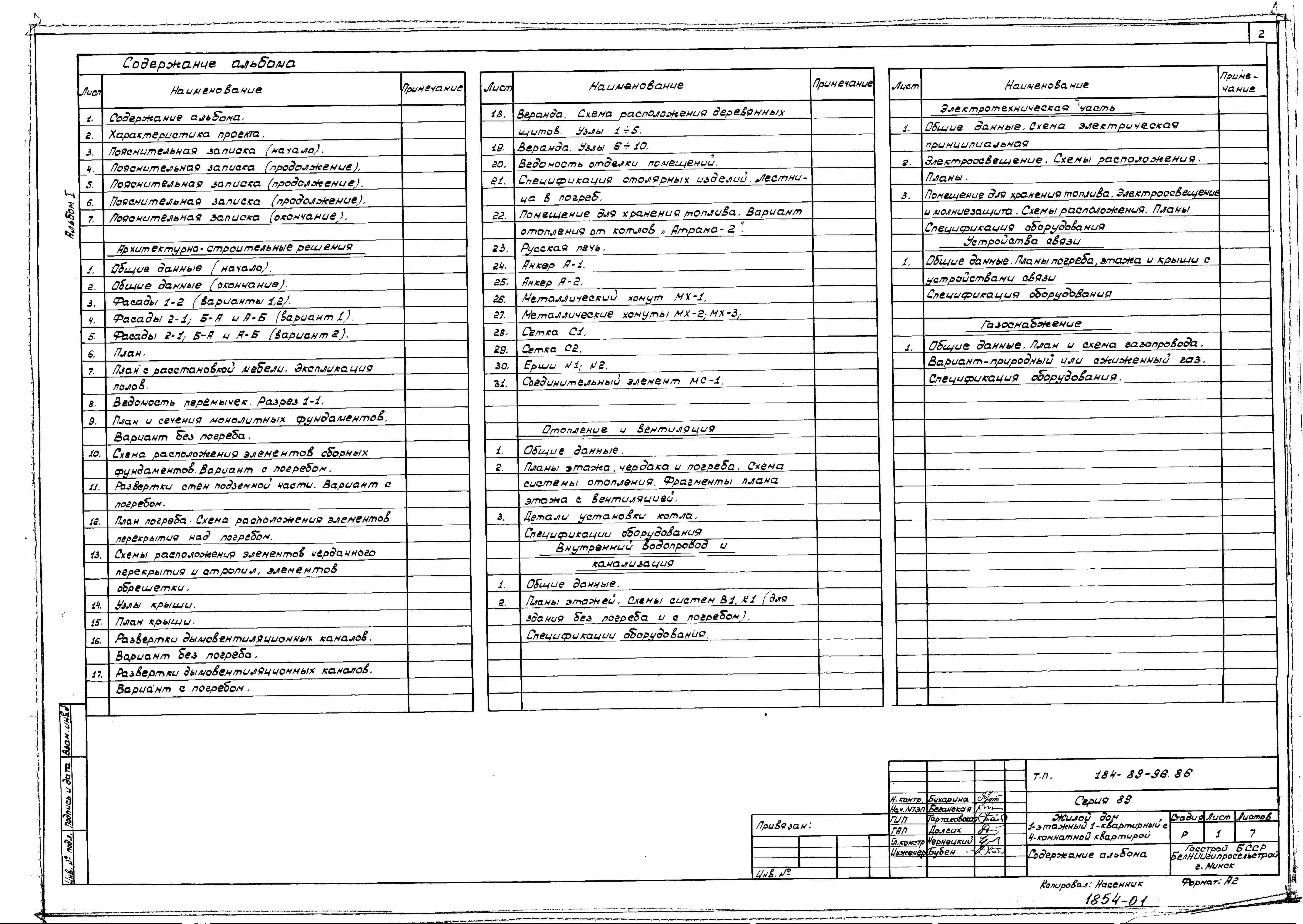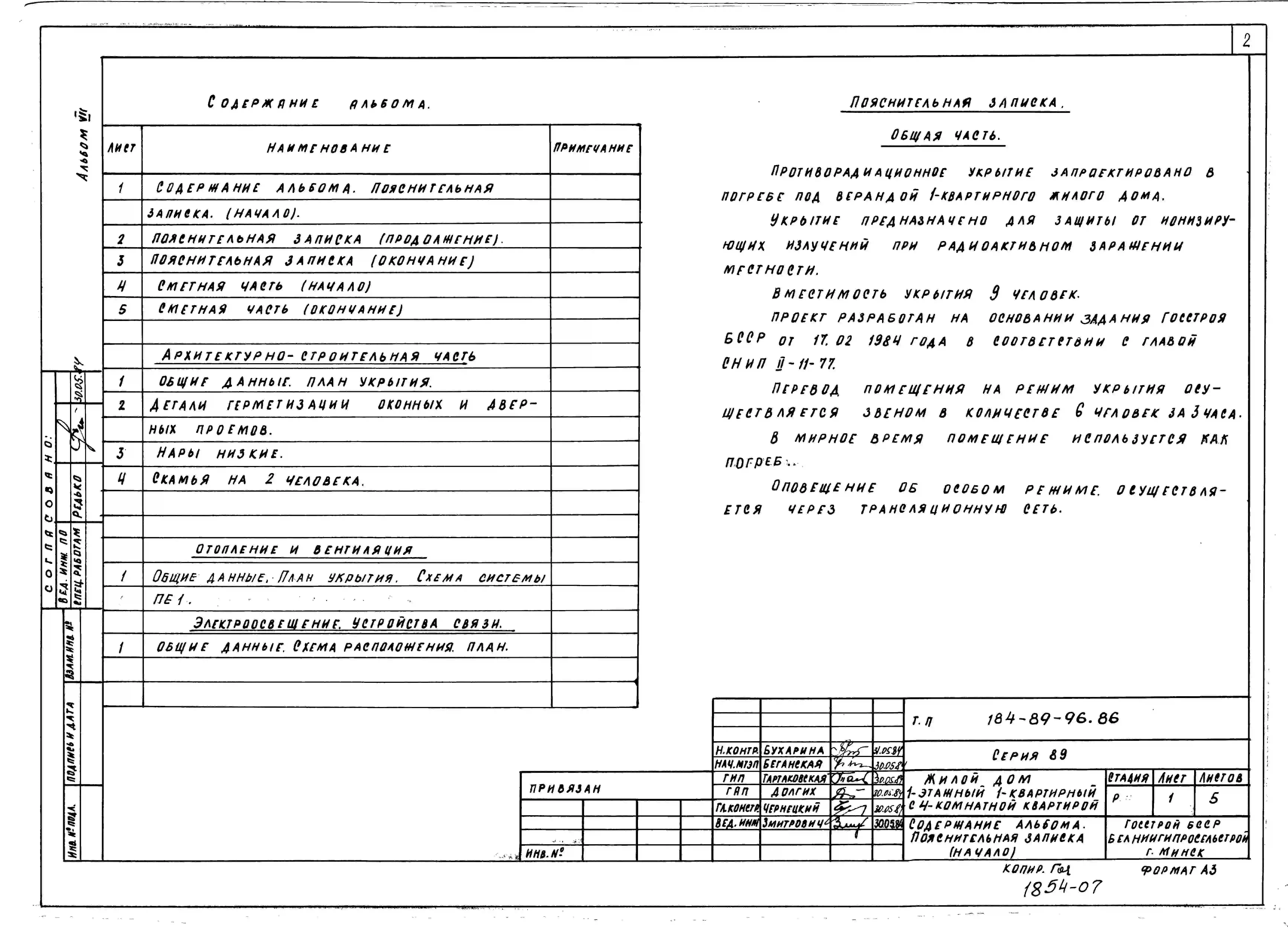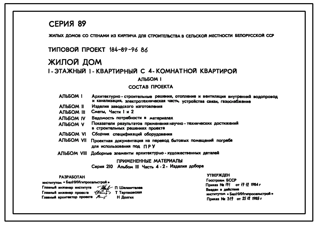 Типовой проект 184-89-96.86 Одноэтажный жилой дом с четырехкомнатной квартирой типа 4Б. Паспорт проекта (формат PDF) Чертежи (формат TIF)