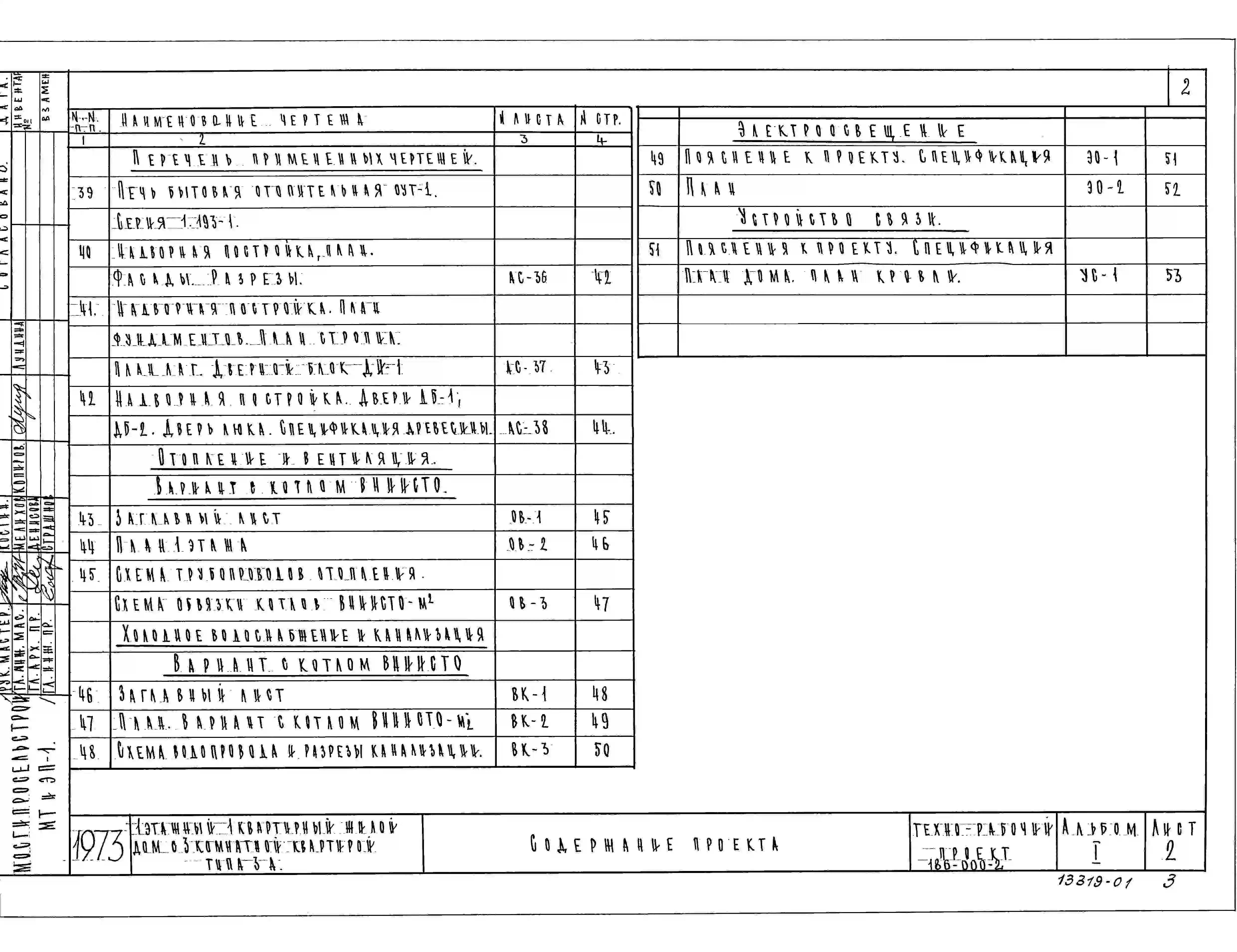 Типовой проект 186-000-2 Дом с трехкомнатной квартирой типа 3А. Отопление печное, люфт-клозет. Общая площадь 60 м2 (СТЕНЫ – ДЕРЕВЯННЫЙ КАРКАС С УТЕПЛИТЕЛЕМ ИЗ МИНЕРАЛОВАТНЫХ ПЛИТ. Одноэтажные). Паспорт проекта (формат PDF) Чертежи (формат TIF)