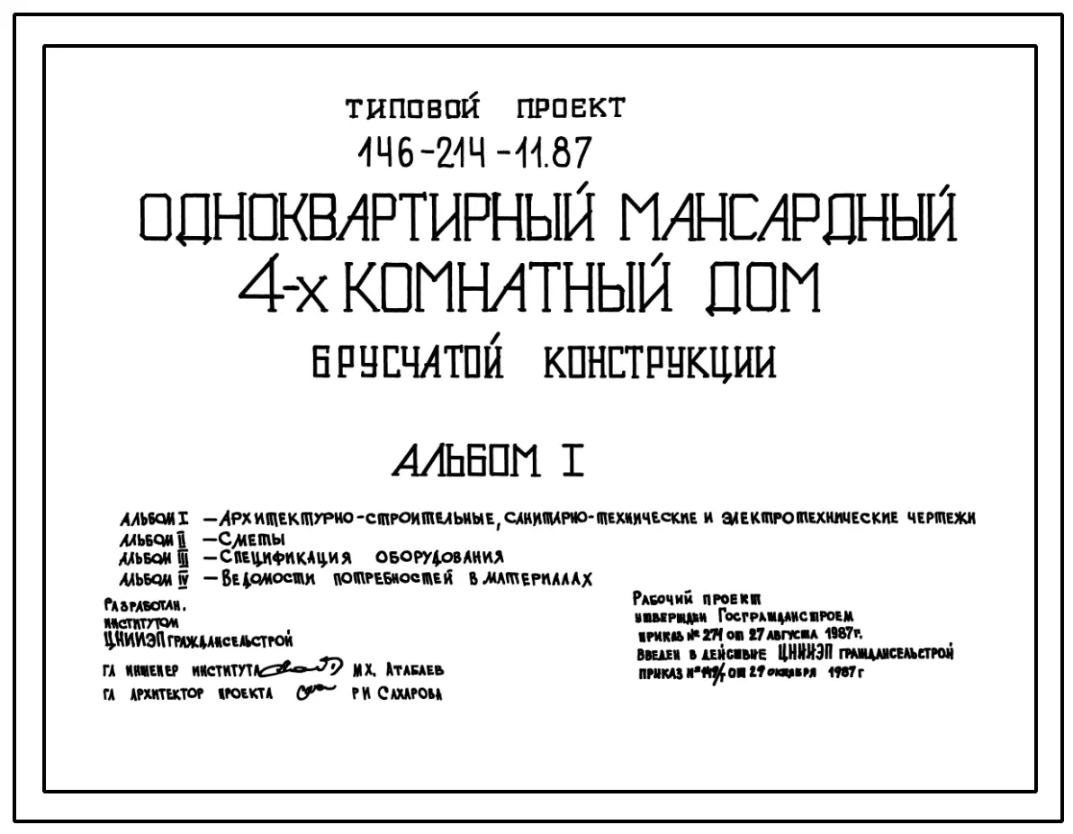 Типовой проект 146-214-11.87 Одноквартирный 4-комнатный дом брусчатой конструкции. Паспорт проекта (формат PDF) Чертежи (формат TIF)