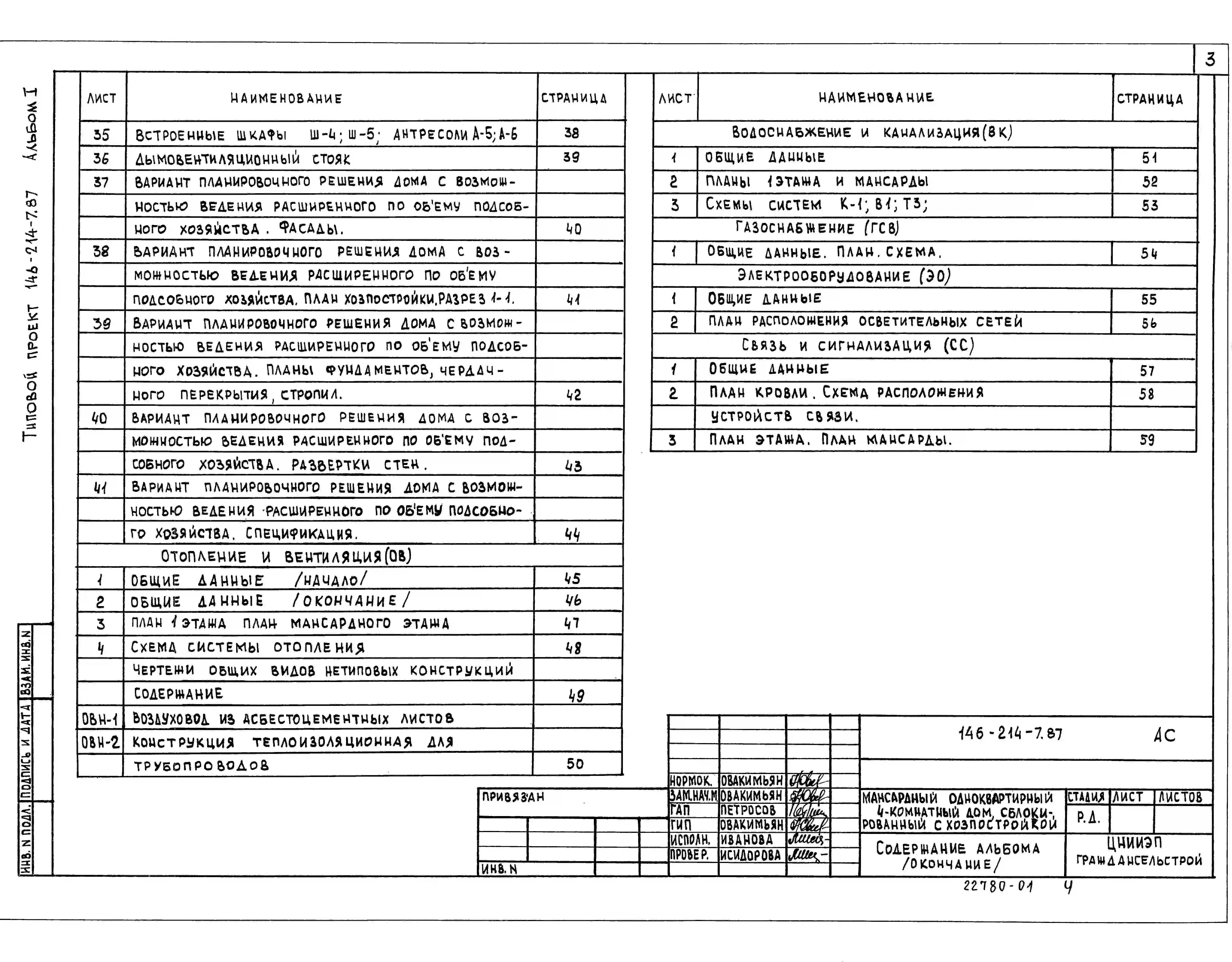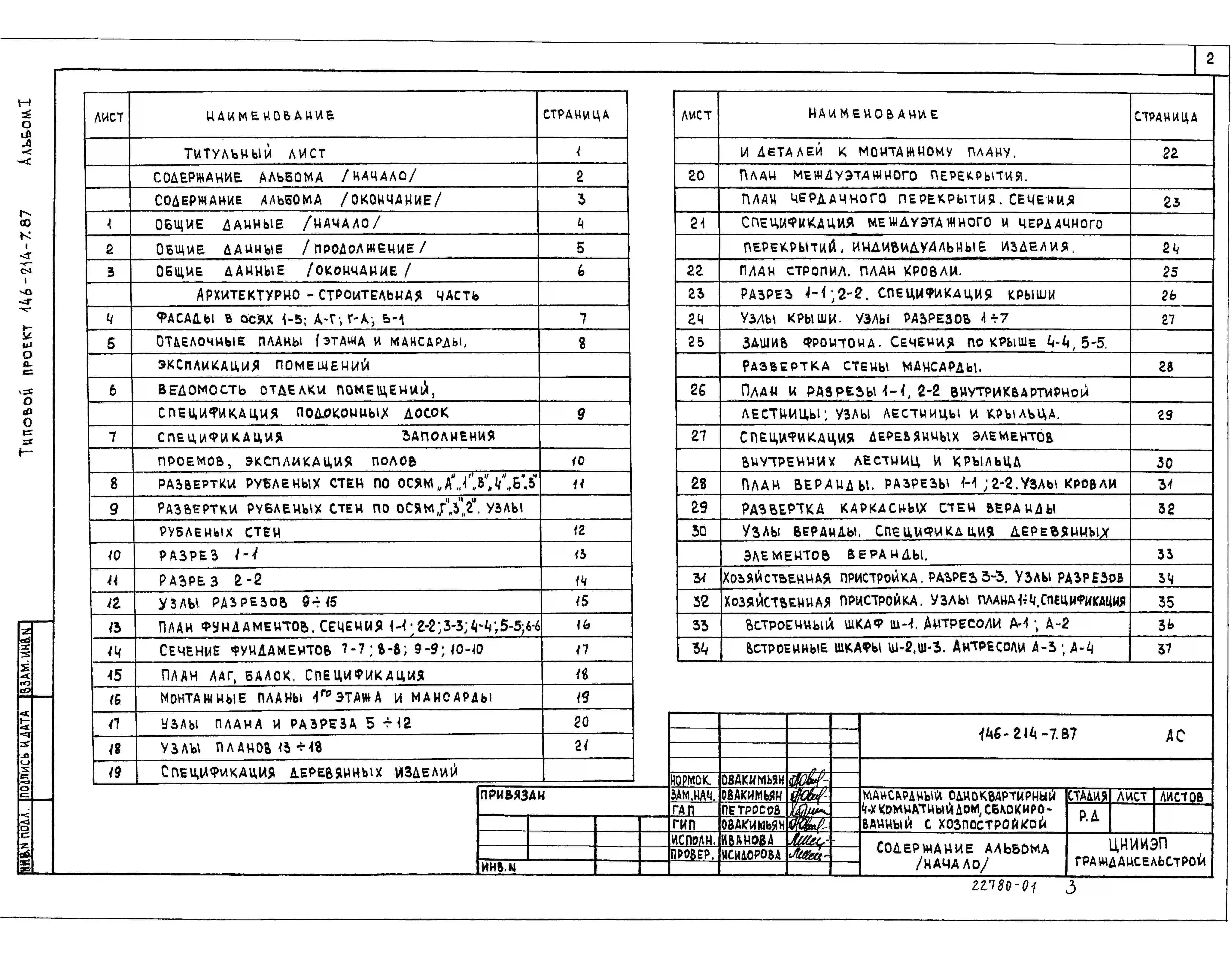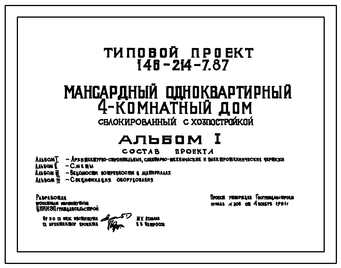 Типовой проект 146-214-7.87 Мансардный одноквартирный 4-комнатный дом, сблокированный с хозпостройкой. Чертежи (формат TIF)
