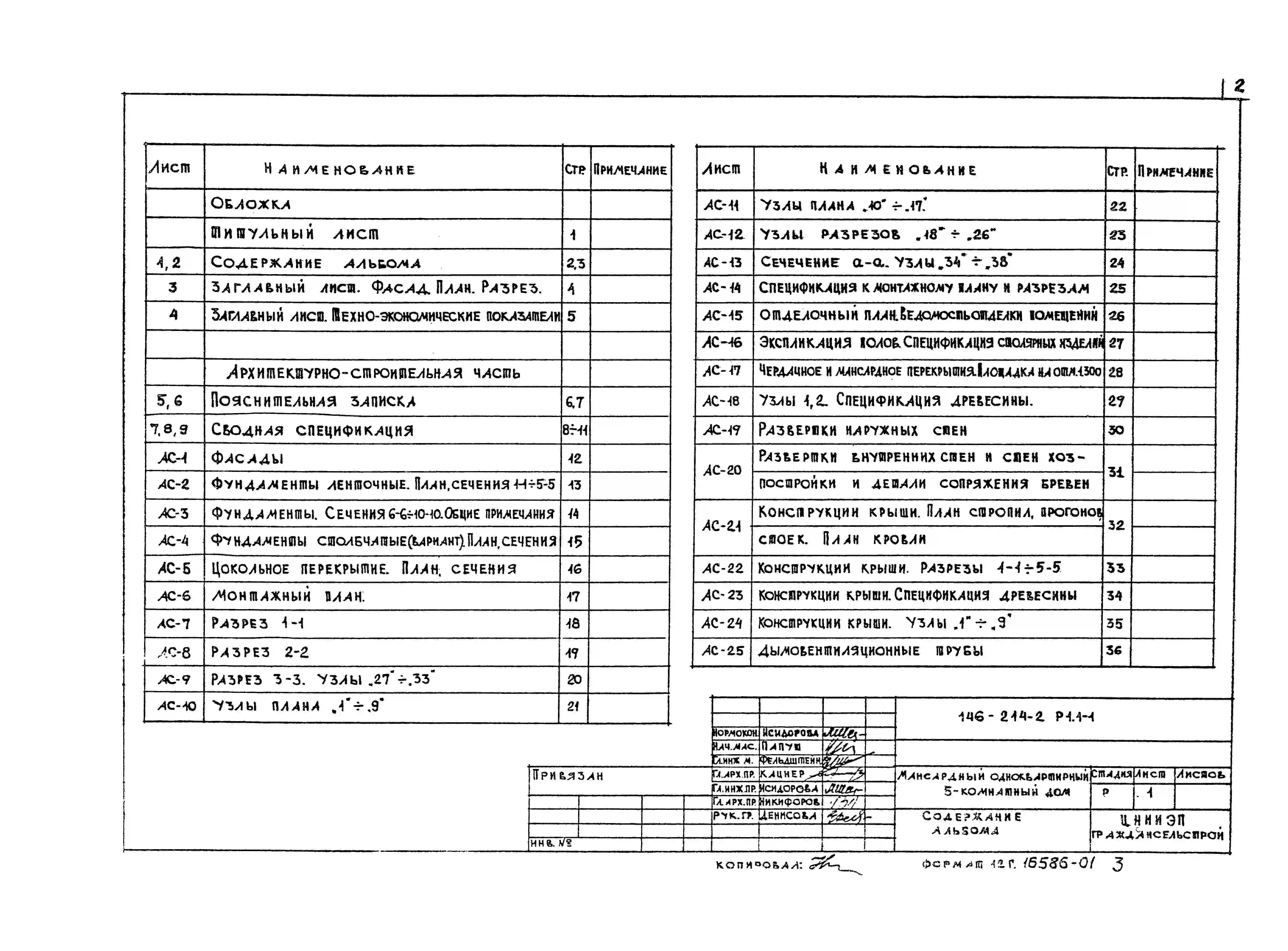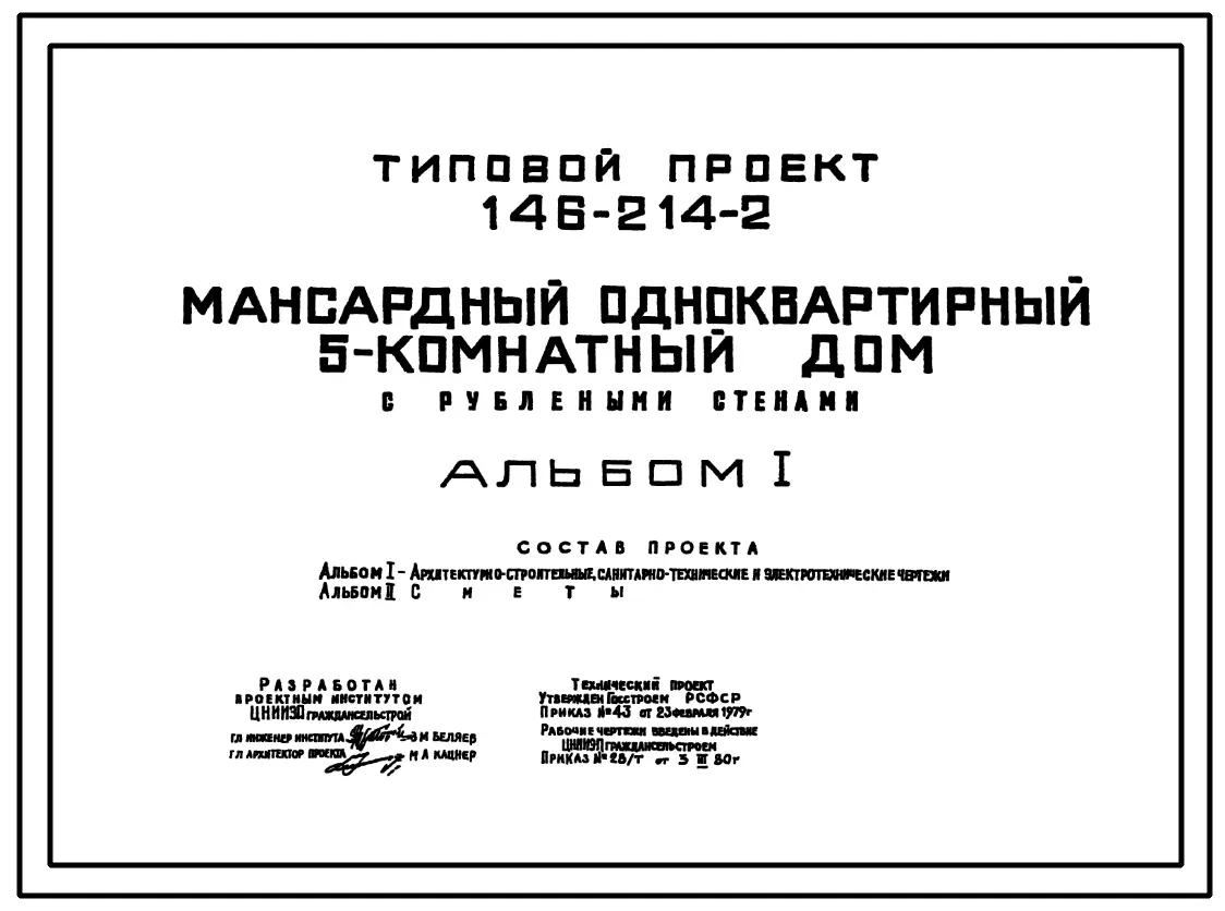 Типовой проект 146-214-2 Мансардный одноквартирный 5-комнатный дом (с рублеными стенами). Паспорт проекта (формат PDF) Чертежи (формат TIF)