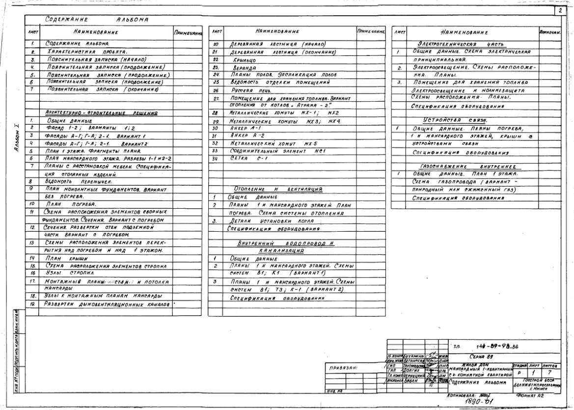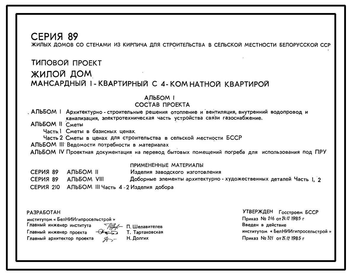 Типовой проект 144-89-98.86 Мансардный жилой дом с четырехкомнатной квартирой типа 4Б. Паспорт проекта (формат PDF) Чертежи (формат TIF)