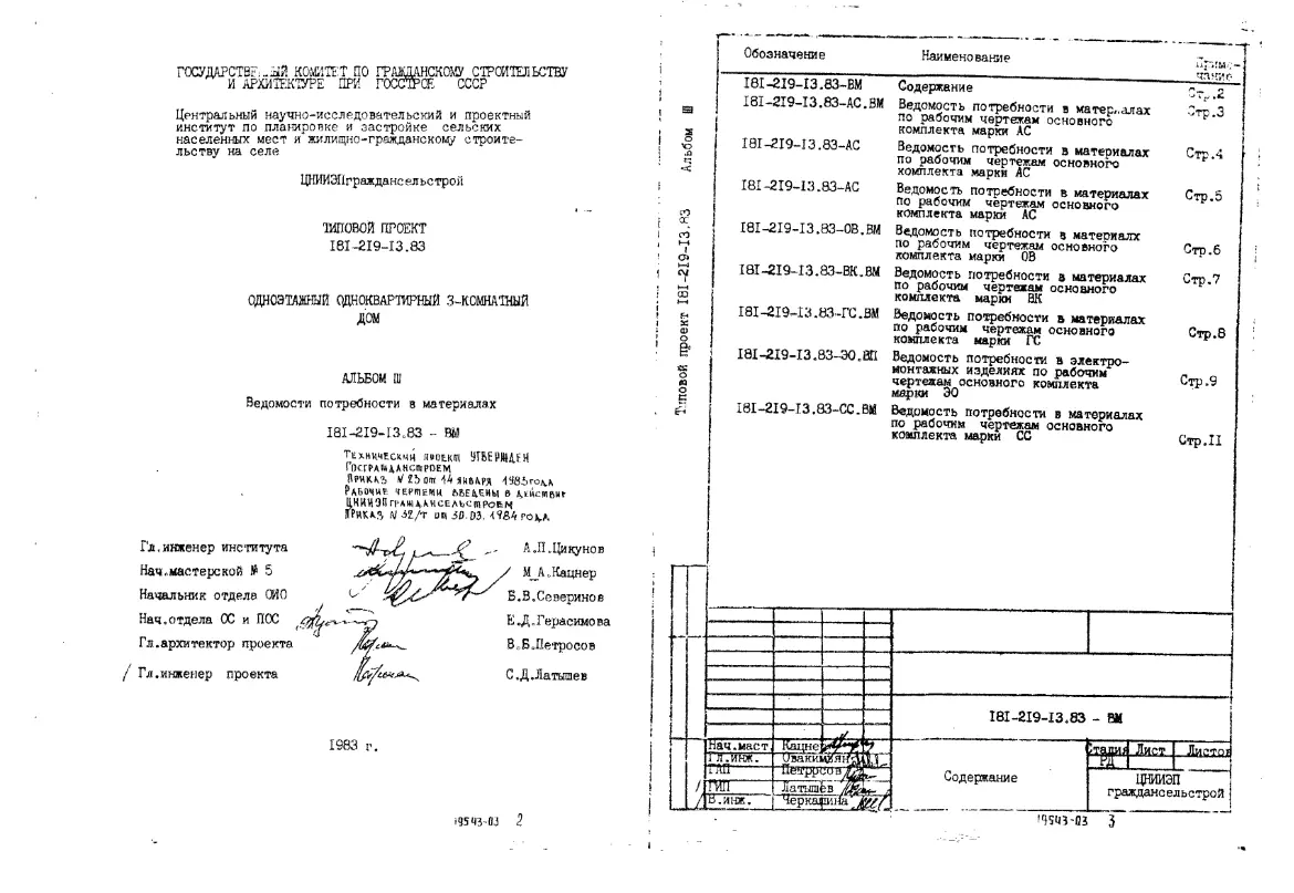 Типовой проект 181-219-13.83 1-этажный 1-квартирный 3-комнатный дом. Для строительства во 2 климатическом районе.. Паспорт проекта (формат PDF)