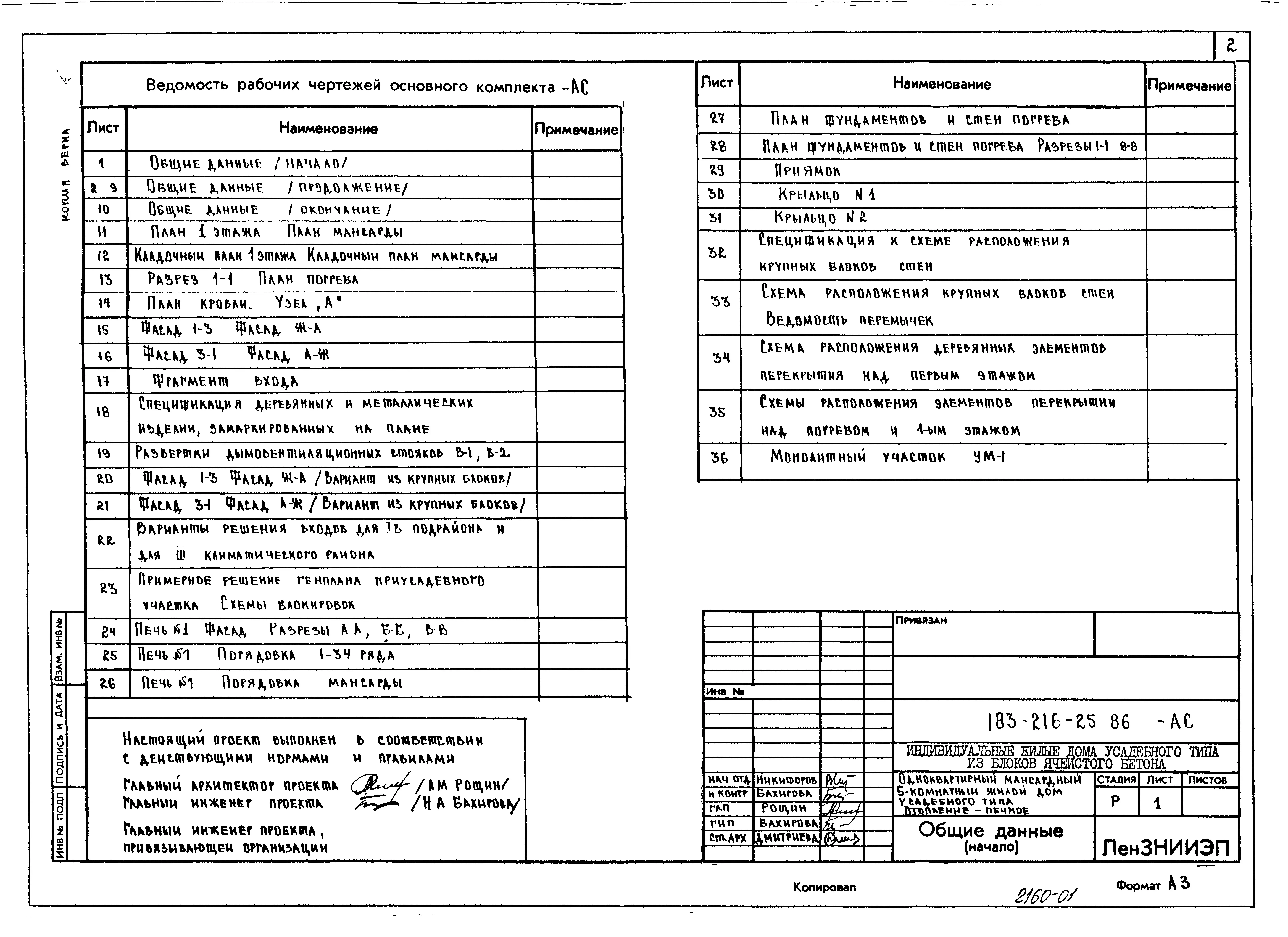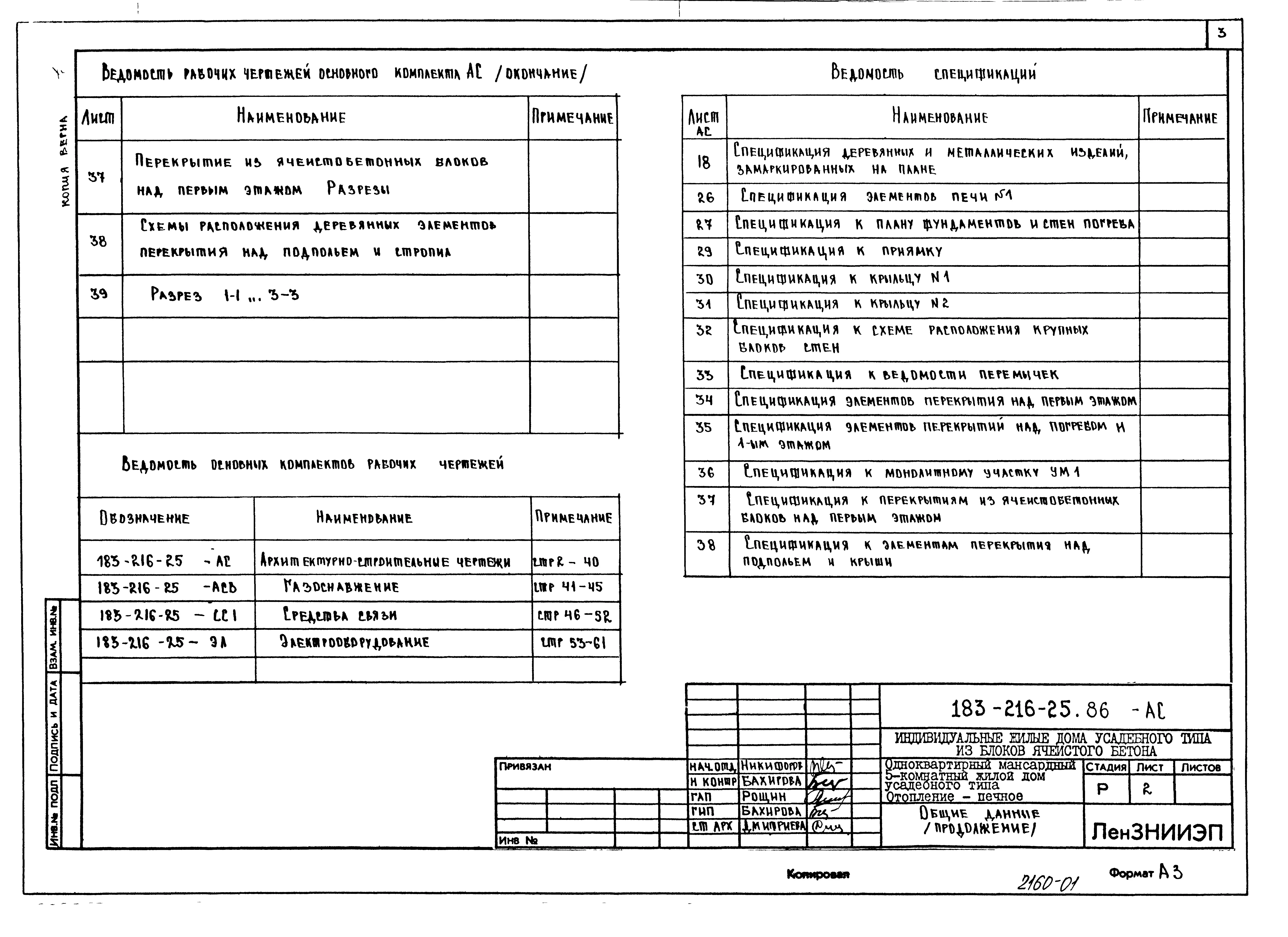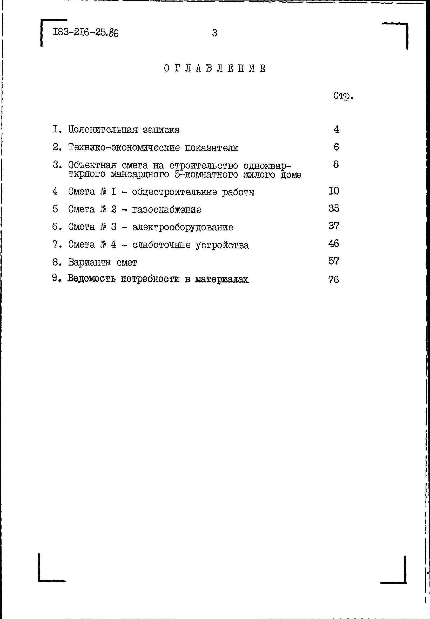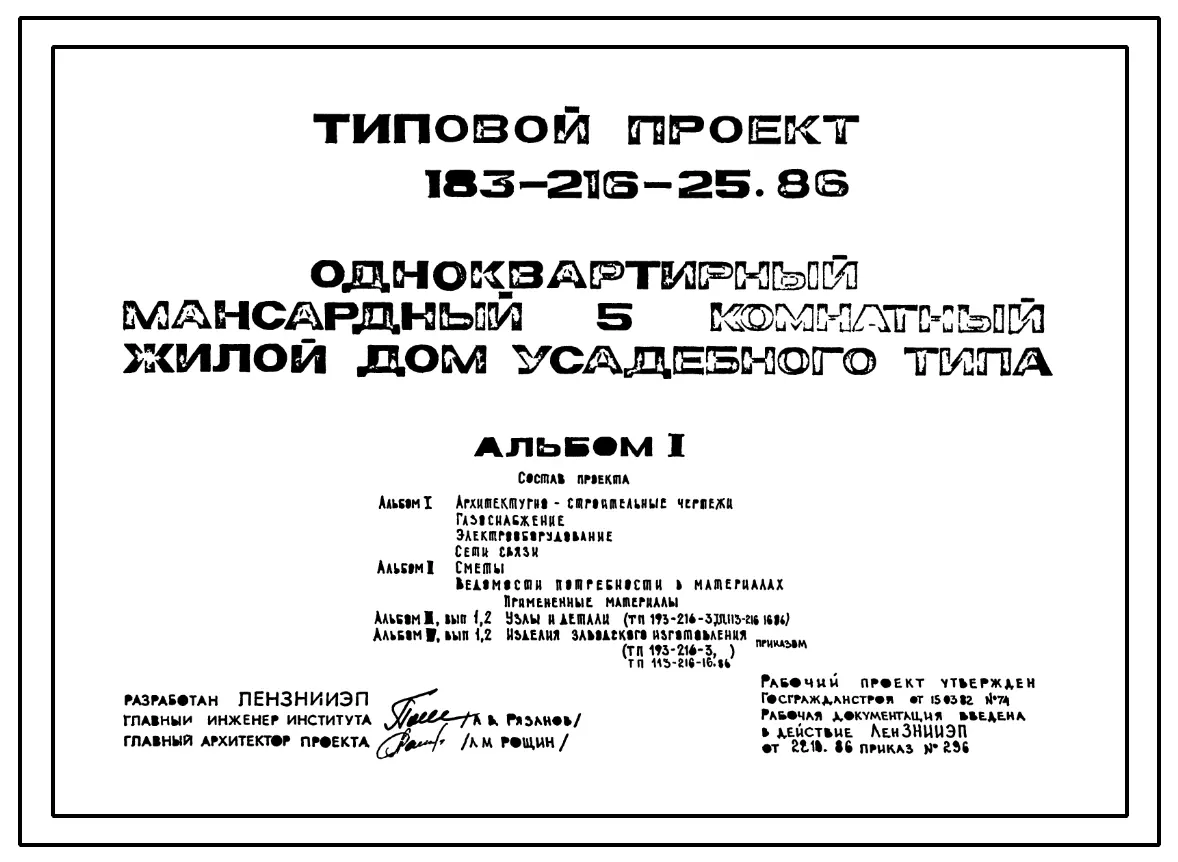 Типовой проект 183-216-25.86 Одноквартирный мансардный пятикомнатный жилой дом усадебного типа. Паспорт проекта (формат PDF) Чертежи (формат TIF)