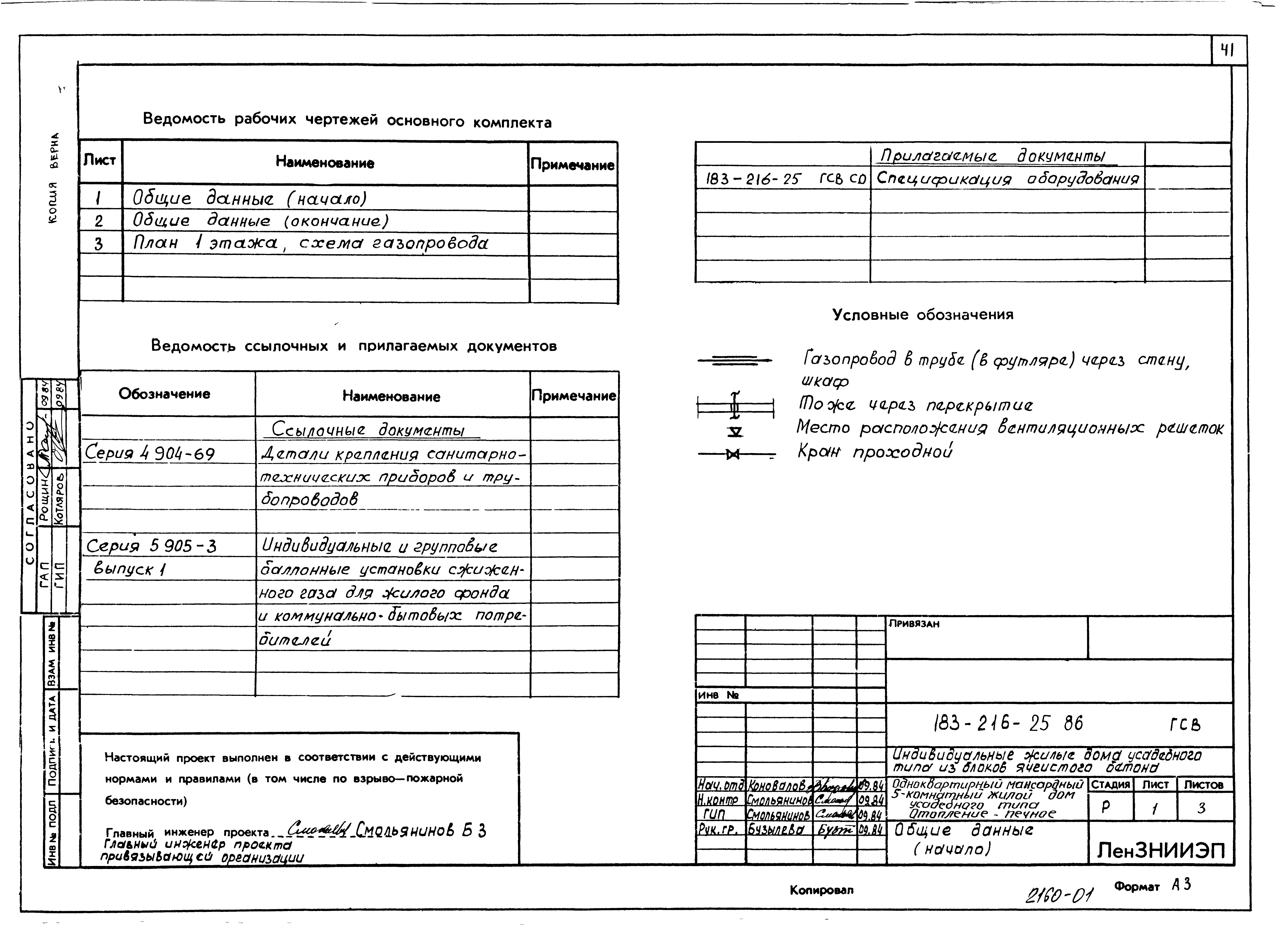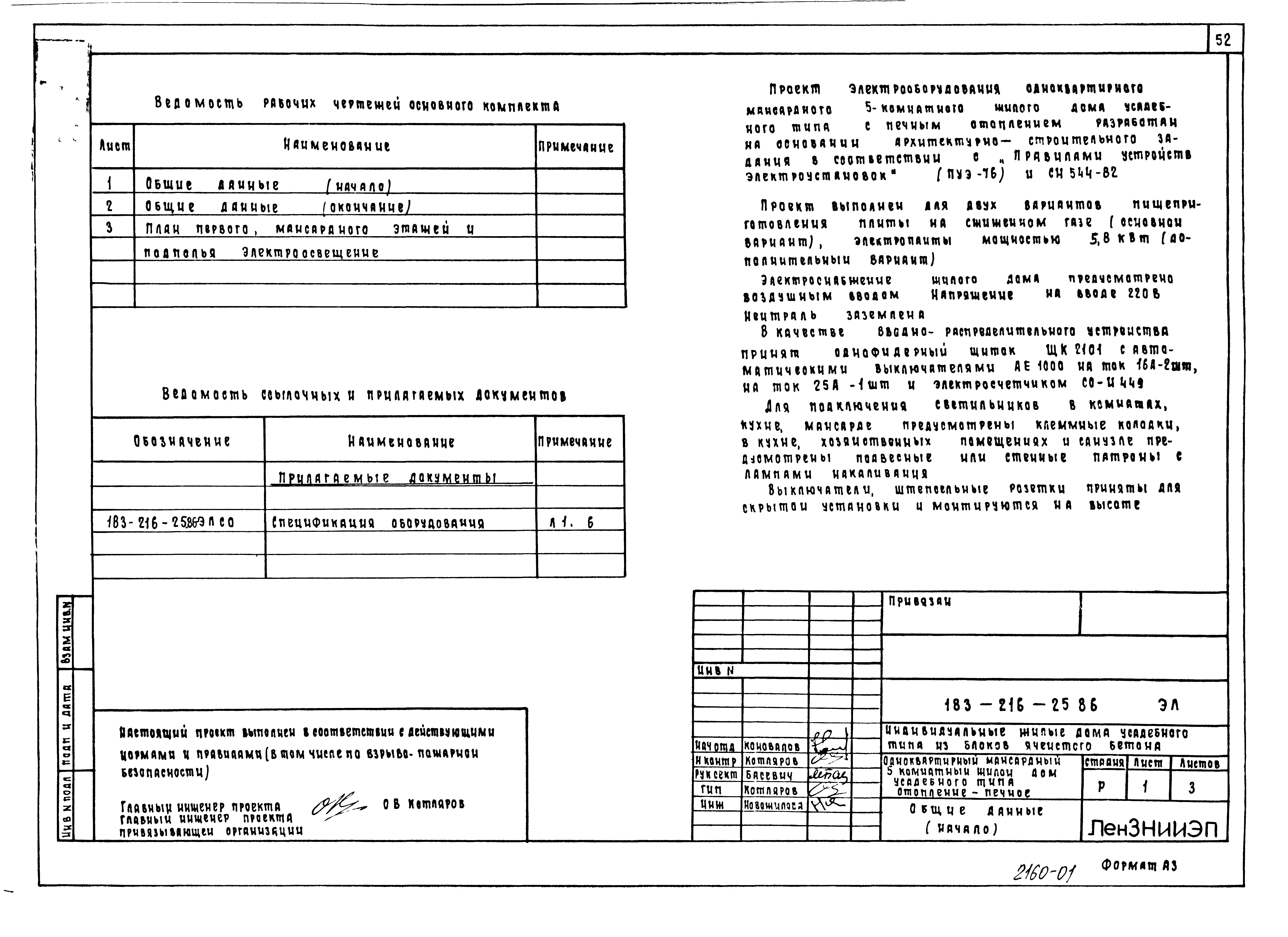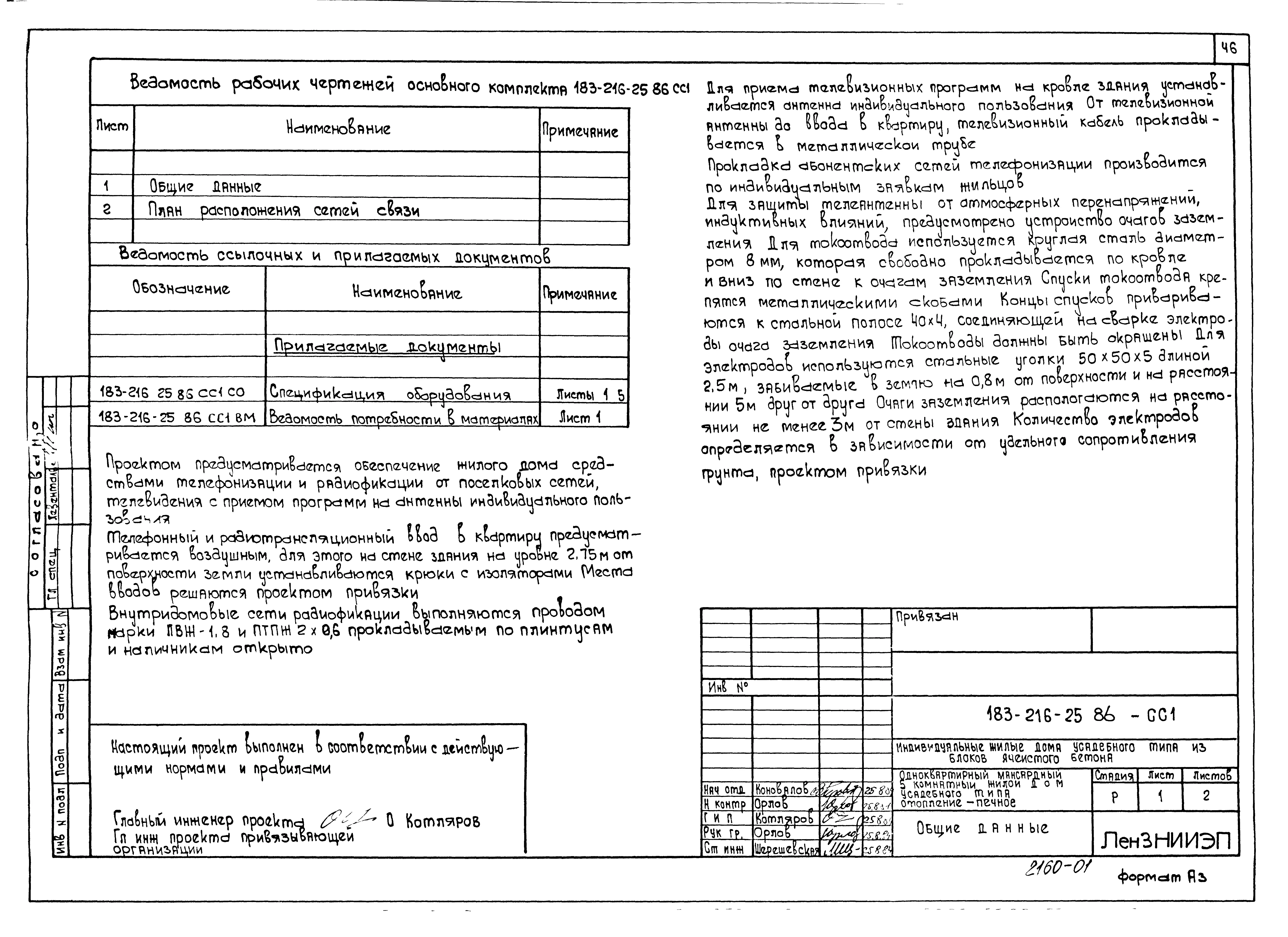 Типовой проект 183-216-25.86 Одноквартирный мансардный пятикомнатный жилой дом усадебного типа. Паспорт проекта (формат PDF) Чертежи (формат TIF)