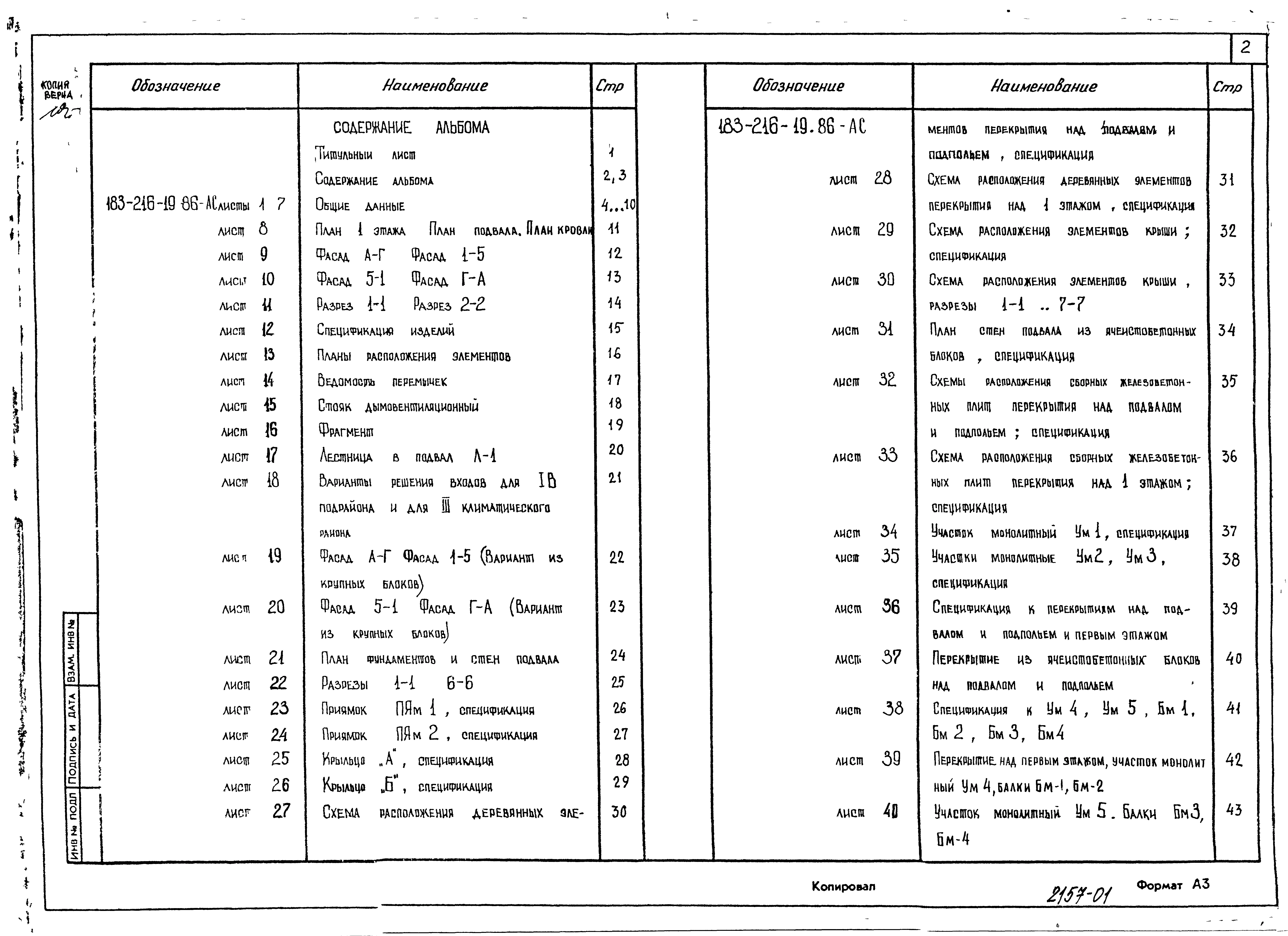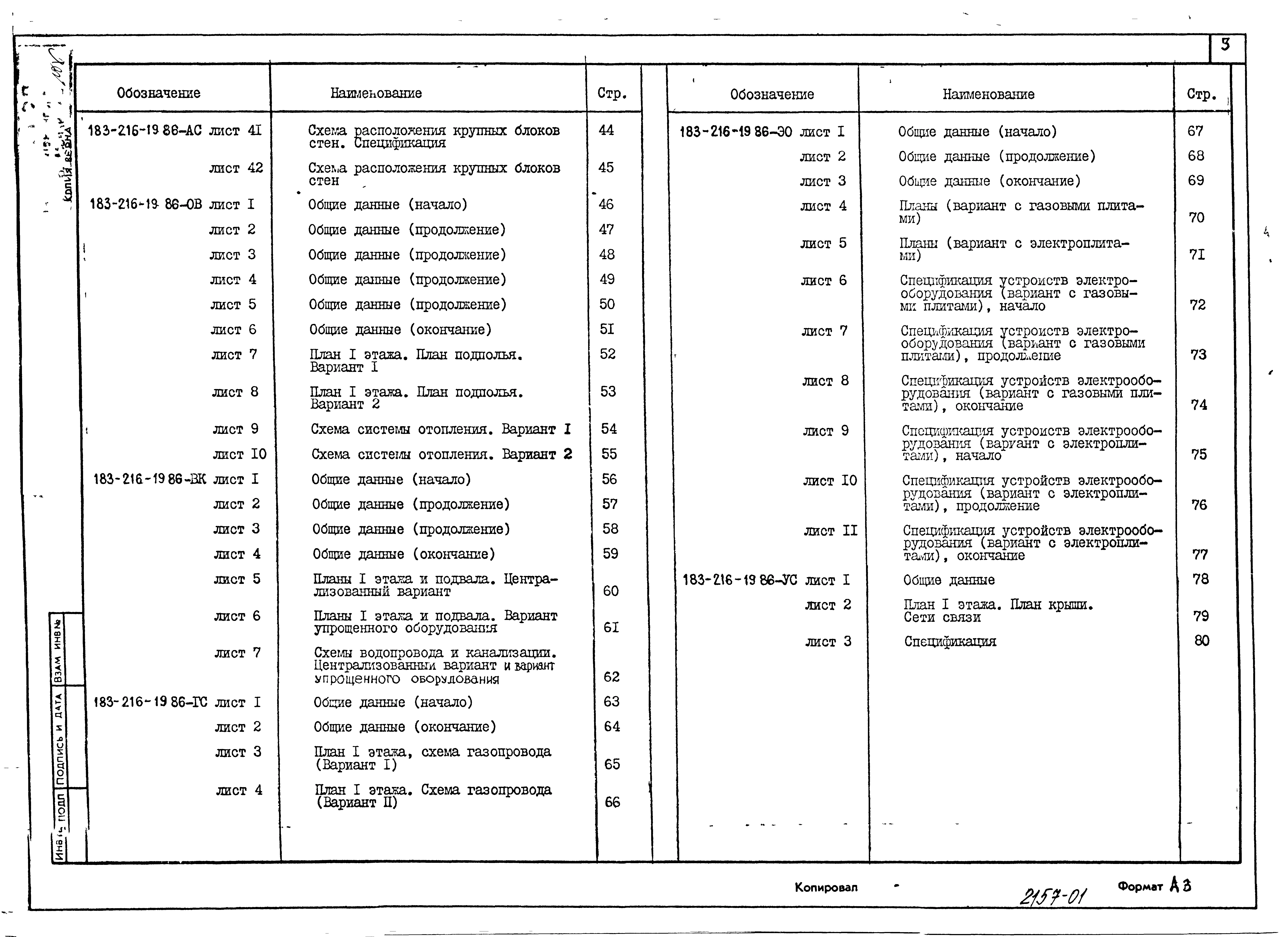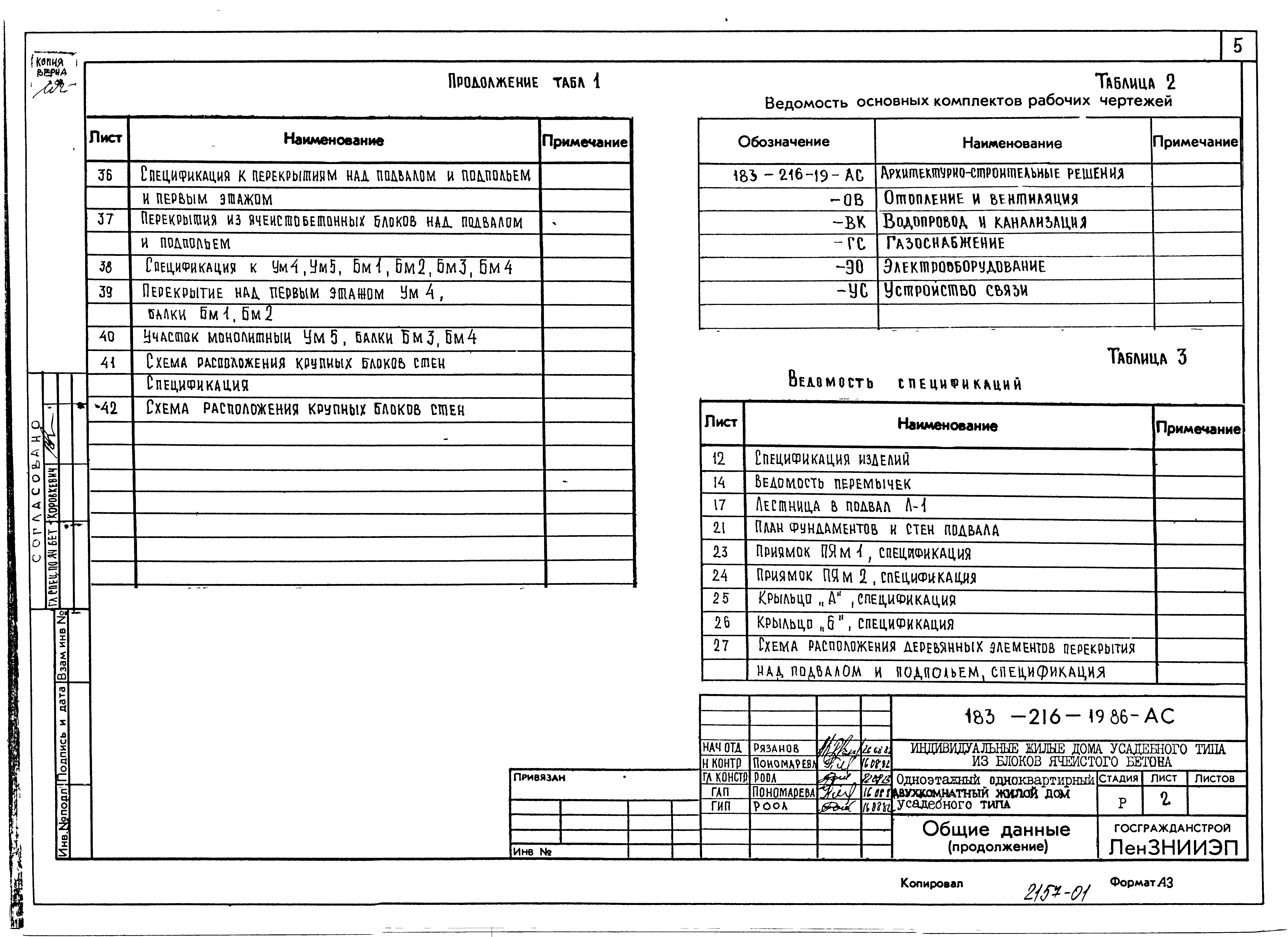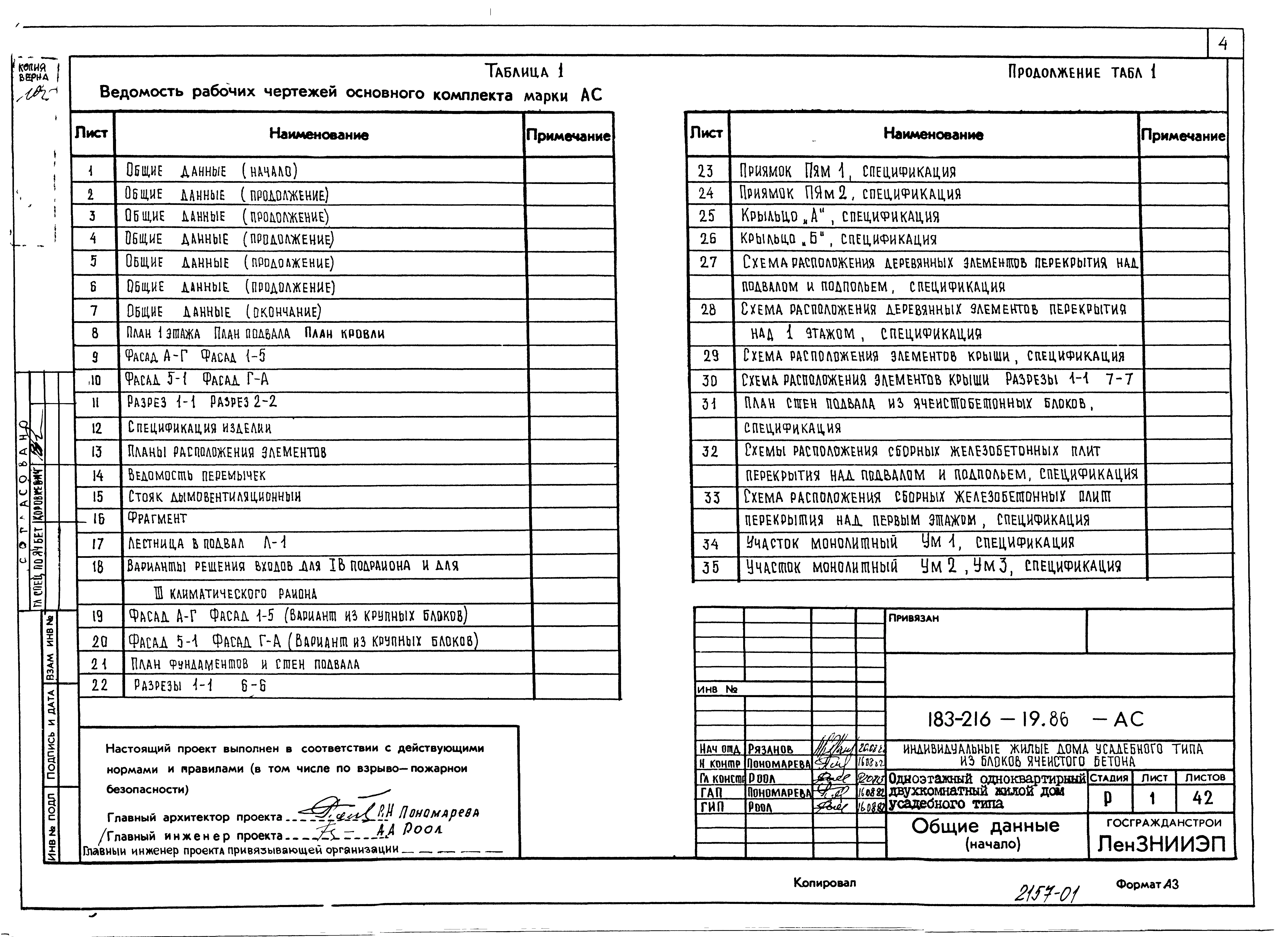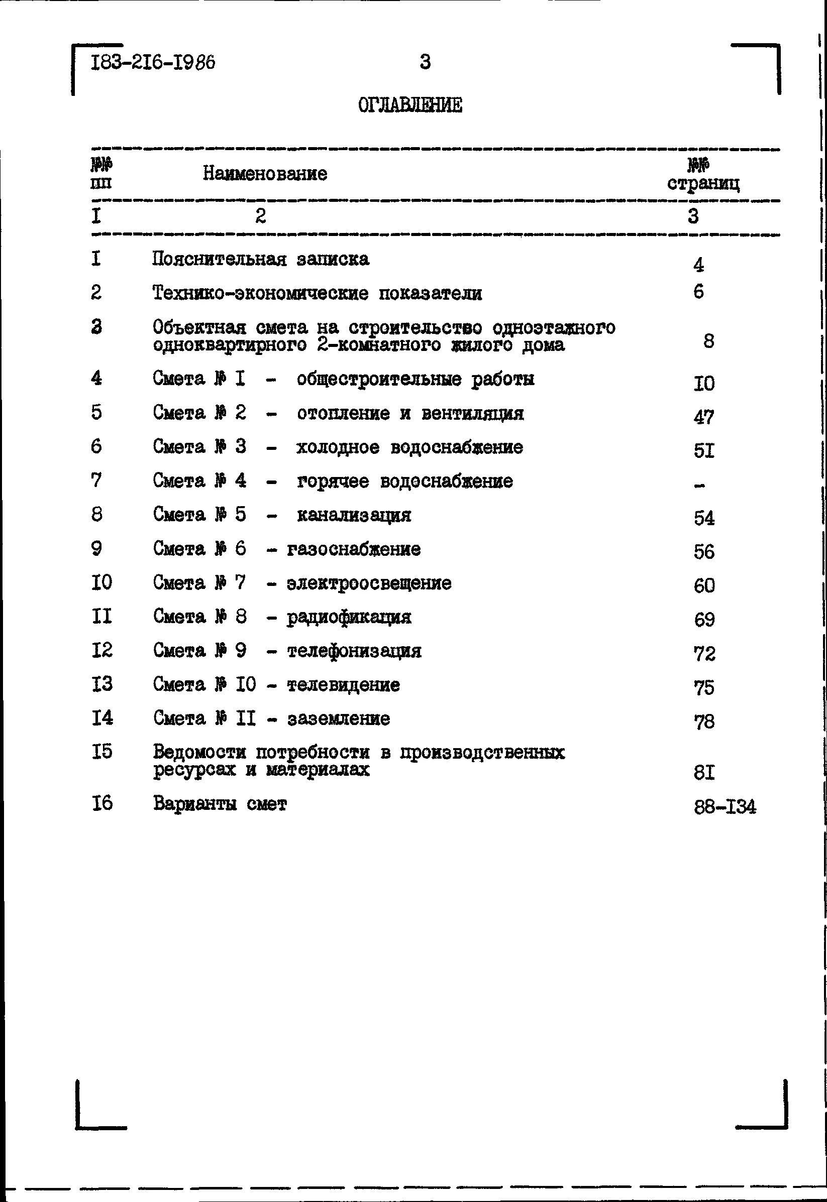 Типовой проект 183-216-19.86 Одноэтажный одноквартирный двухкомнатный жилой дом усадебного типа. Паспорт проекта (формат PDF) Чертежи (формат TIF)