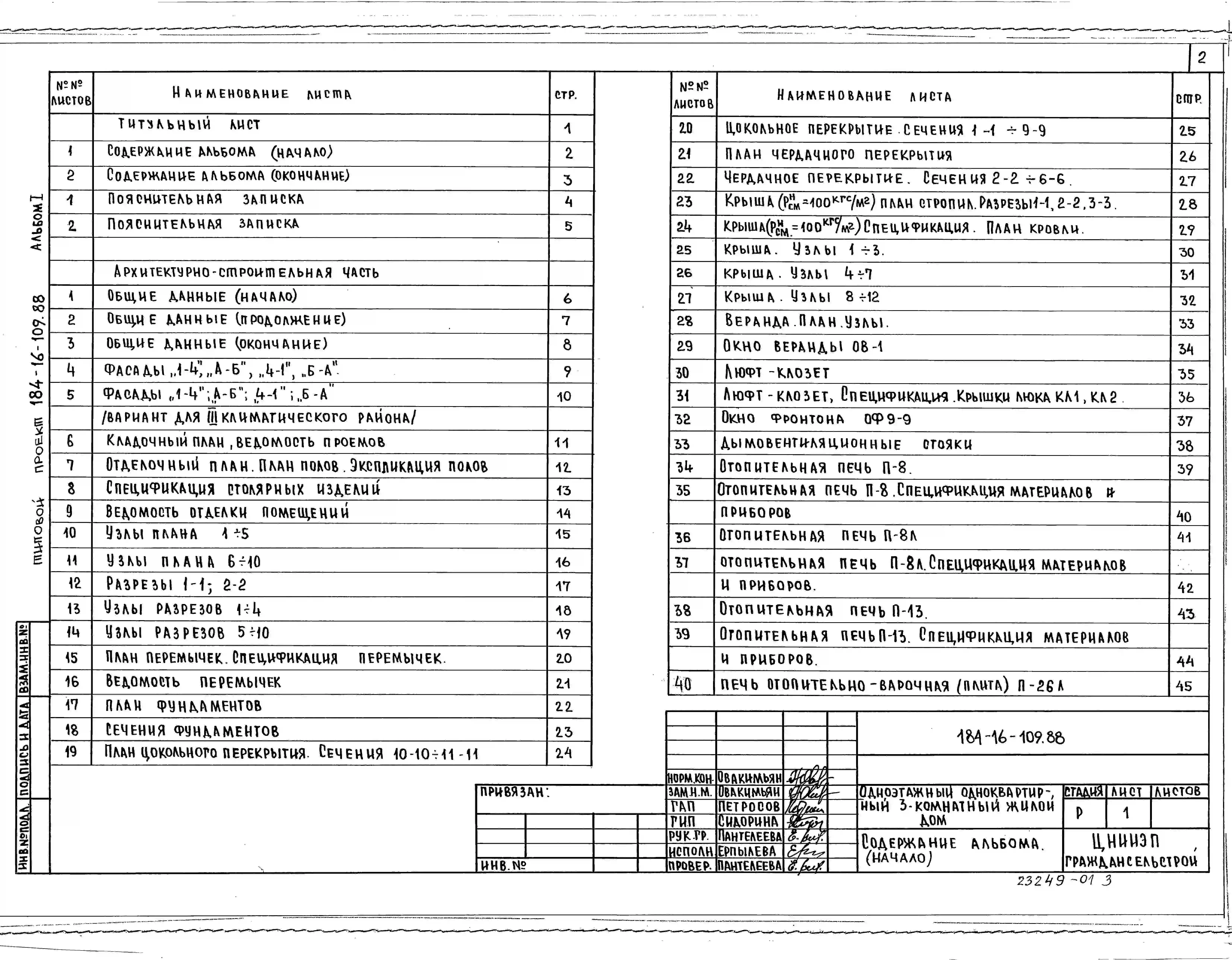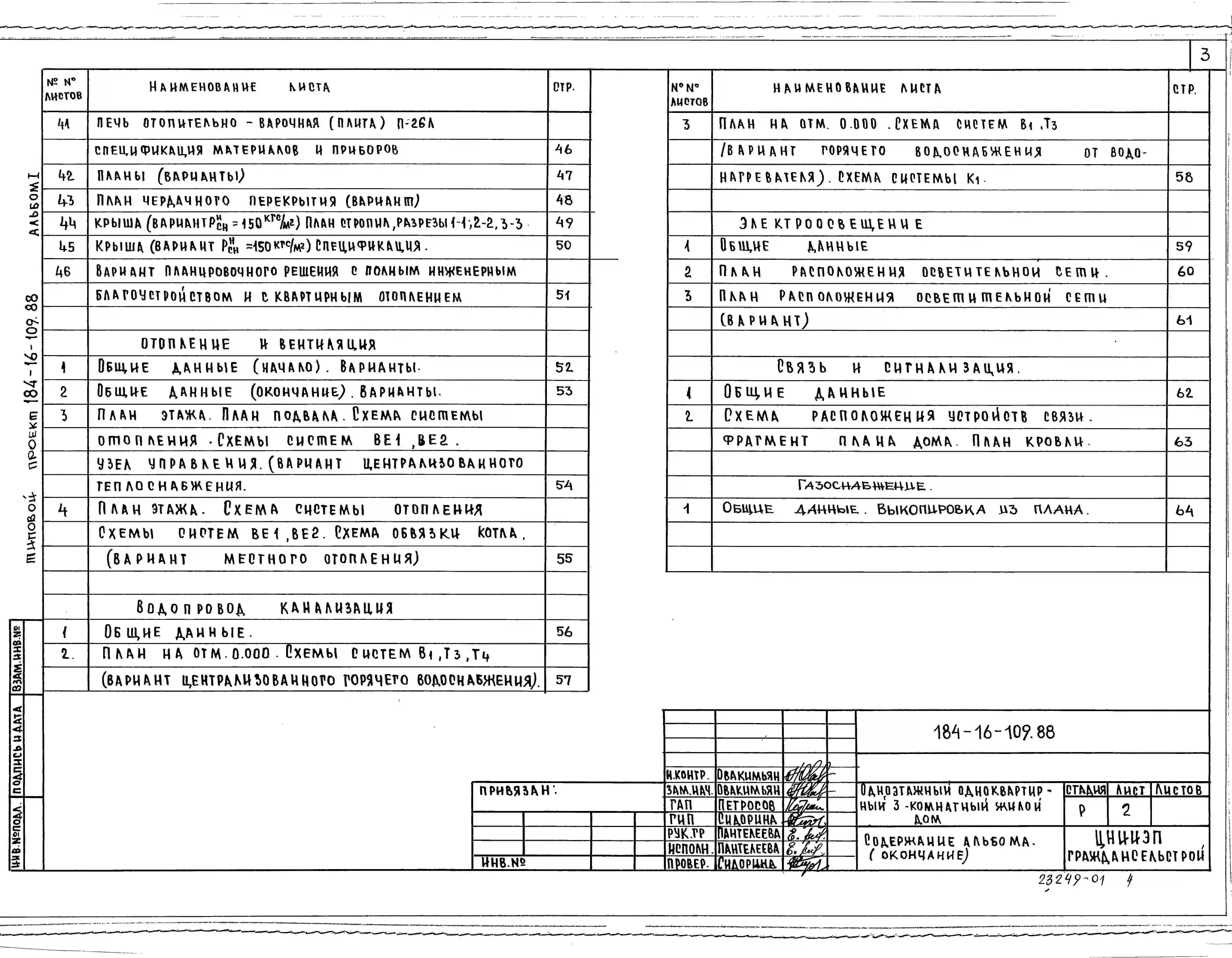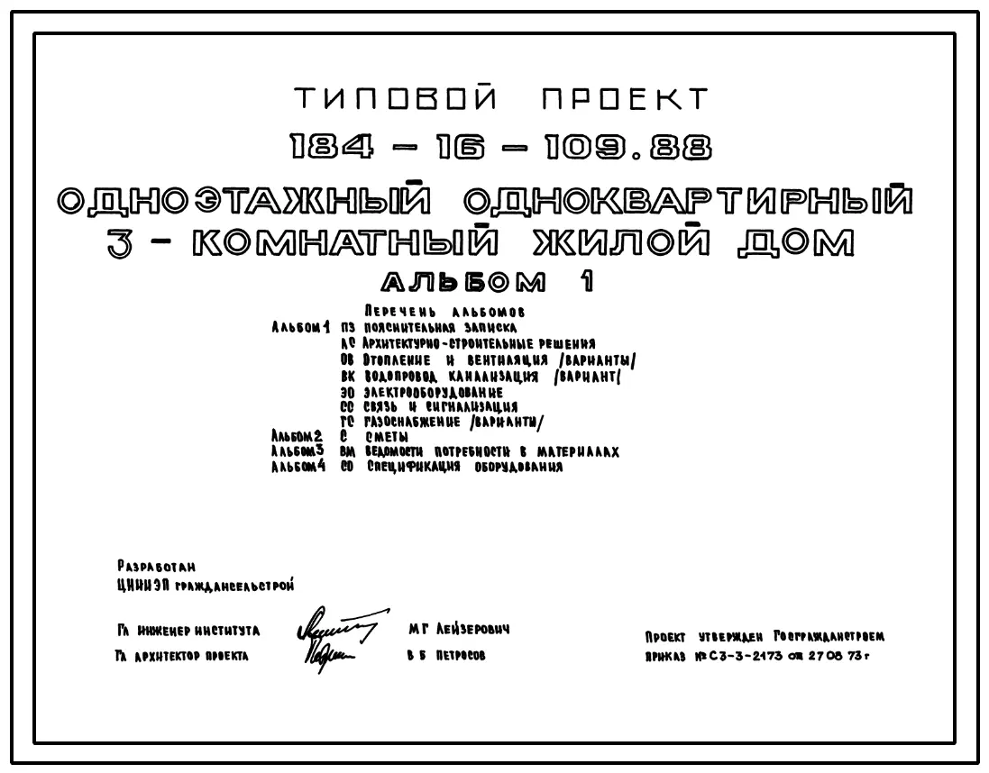 Типовой проект 184-16-109.88 Одноэтажный одноквартирный 3-комнатный жилой дом. Паспорт проекта (формат PDF) Чертежи (формат TIF)