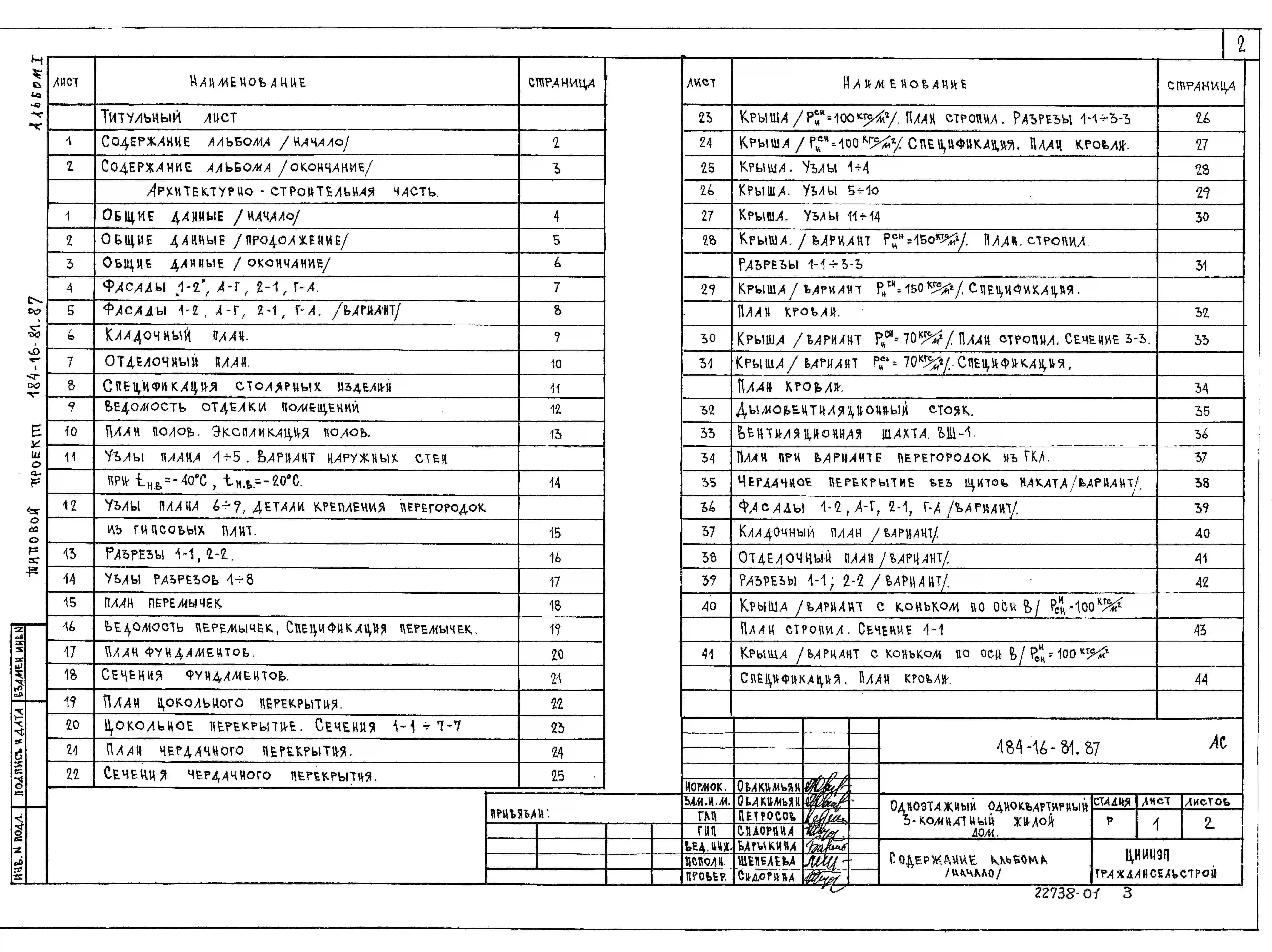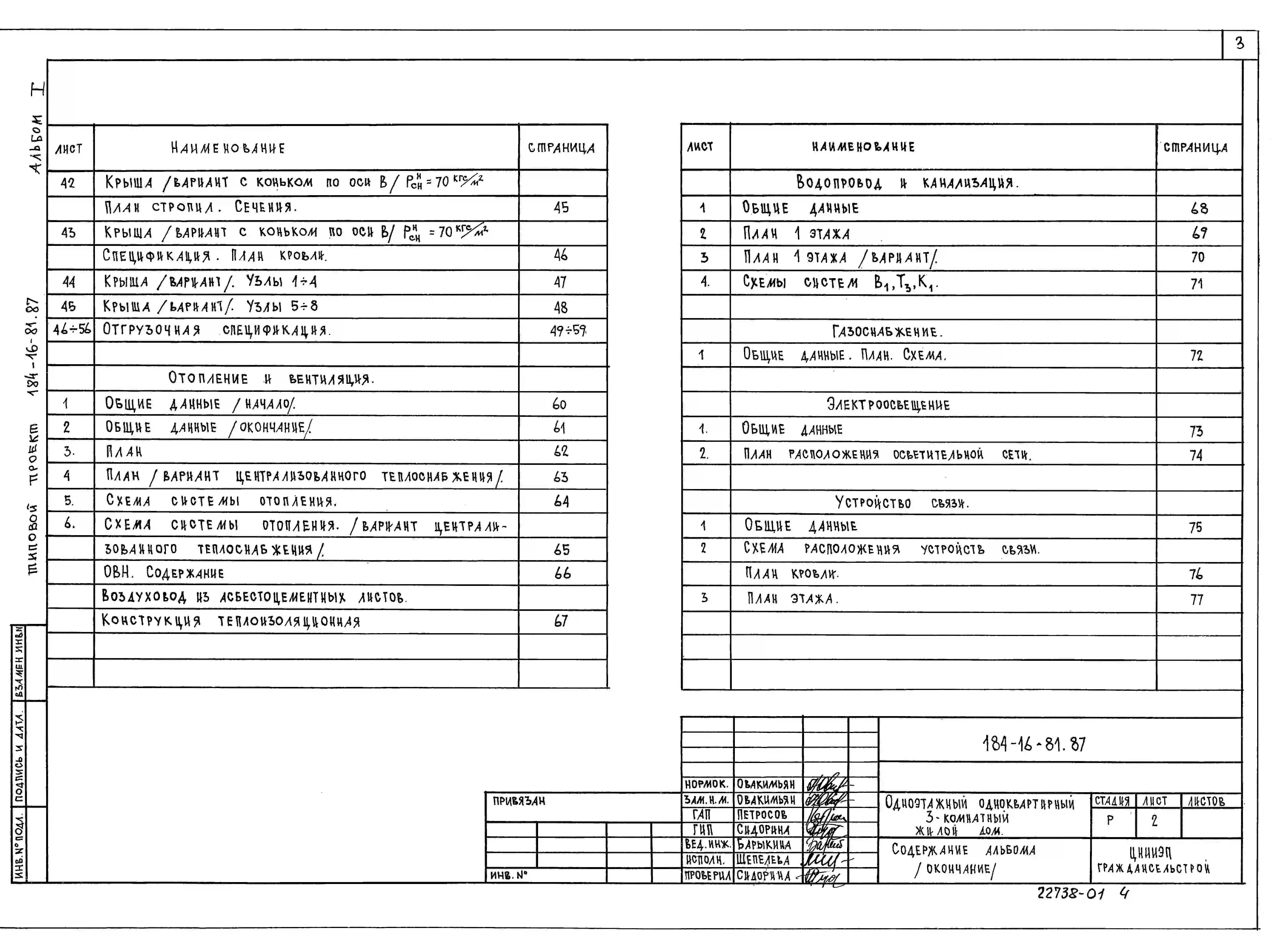 Типовой проект 184-16-81.87 Одноэтажный одноквартирный 3-комнатный жилой дом. Паспорт проекта (формат PDF) Чертежи (формат TIF)