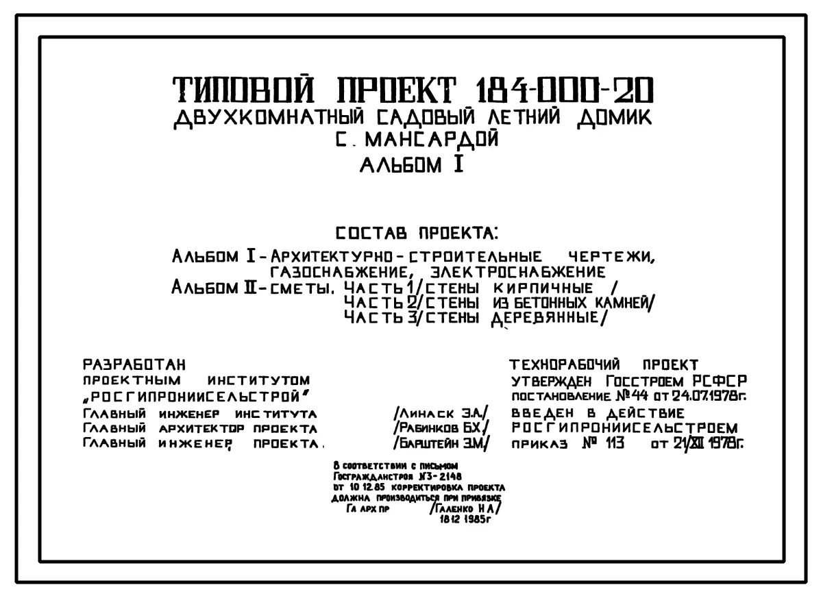 Типовой проект 184-000-20 Двухкомнатный садовый летний домик с мансардой. Для строительства во II климатическом районе.. Паспорт проекта (формат PDF) Чертежи (формат TIF)