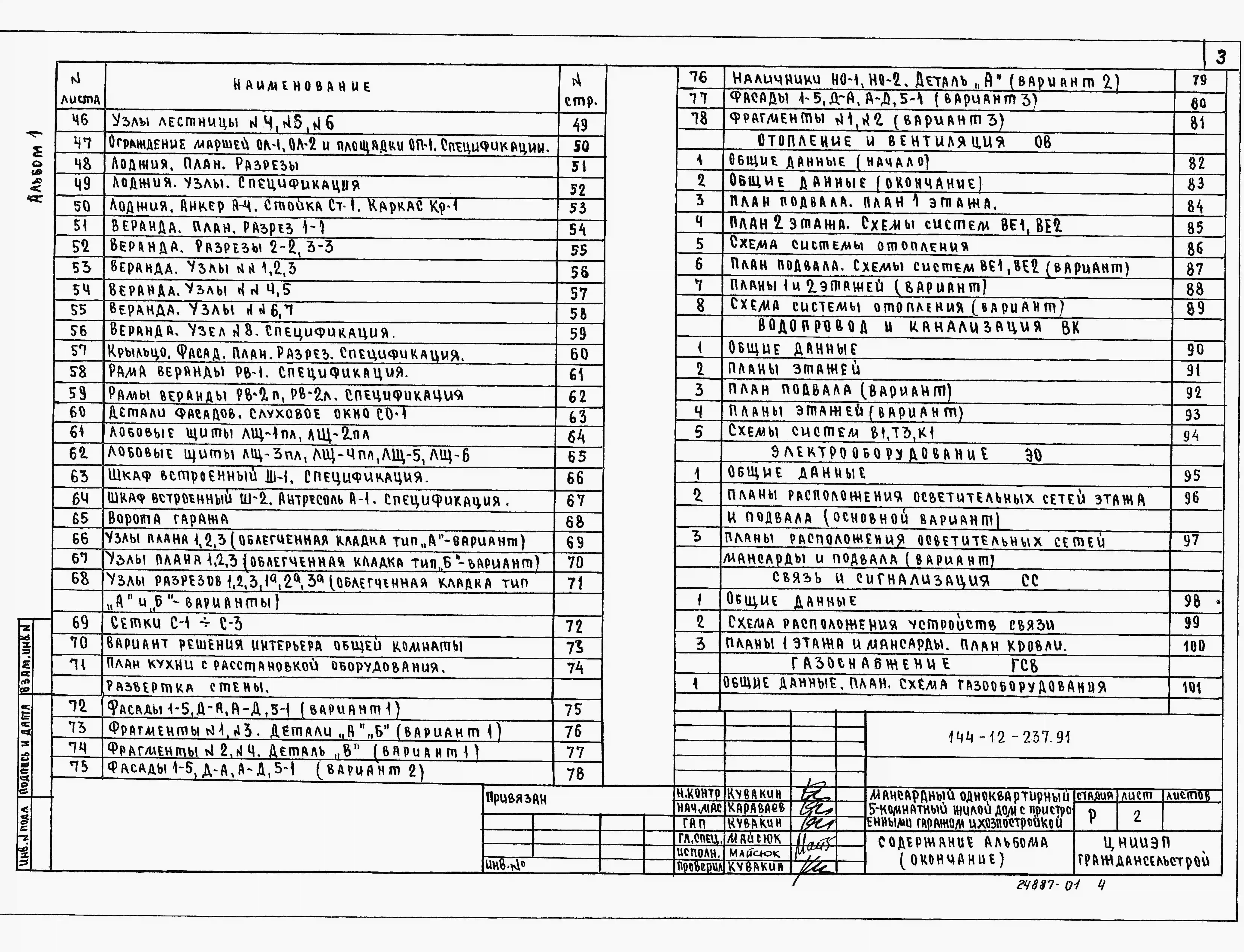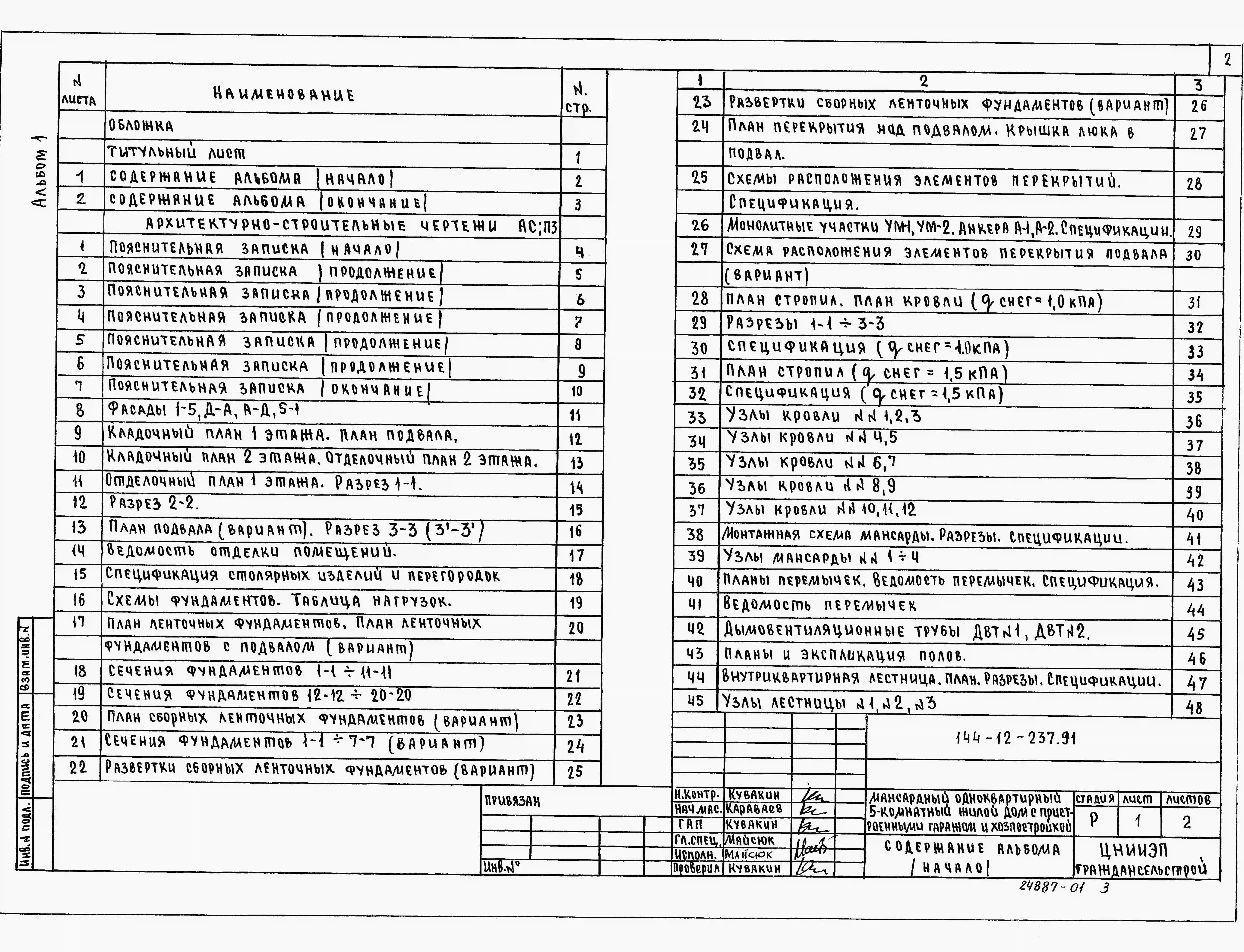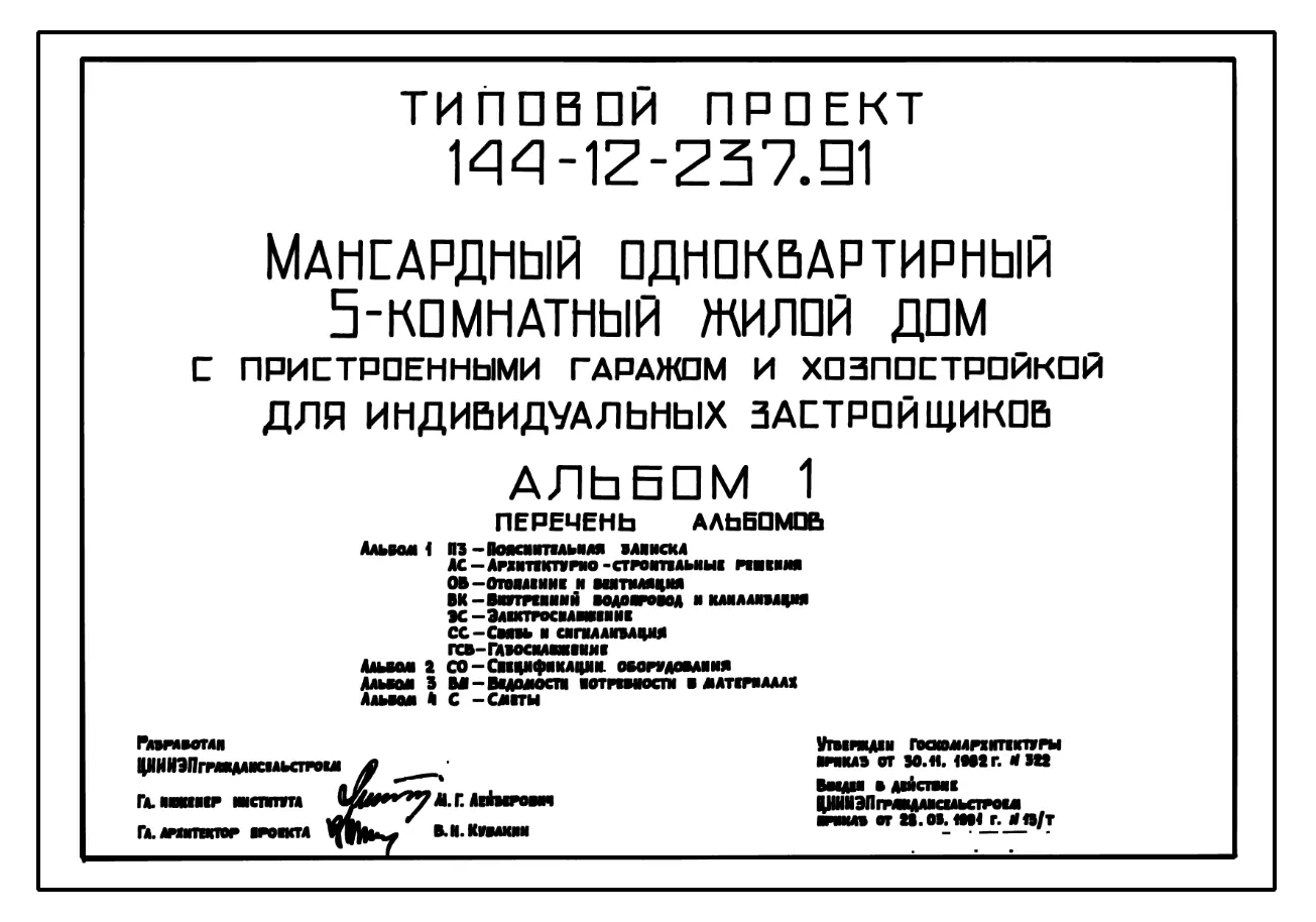 Типовой проект 144-12-237.91 Дом с пятикомнатной квартирой, с пристроенными гаражом и хозпостройкой. Общая площадь квартиры 139 м2. Чертежи (формат TIF) Паспорт проекта (формат PDF)