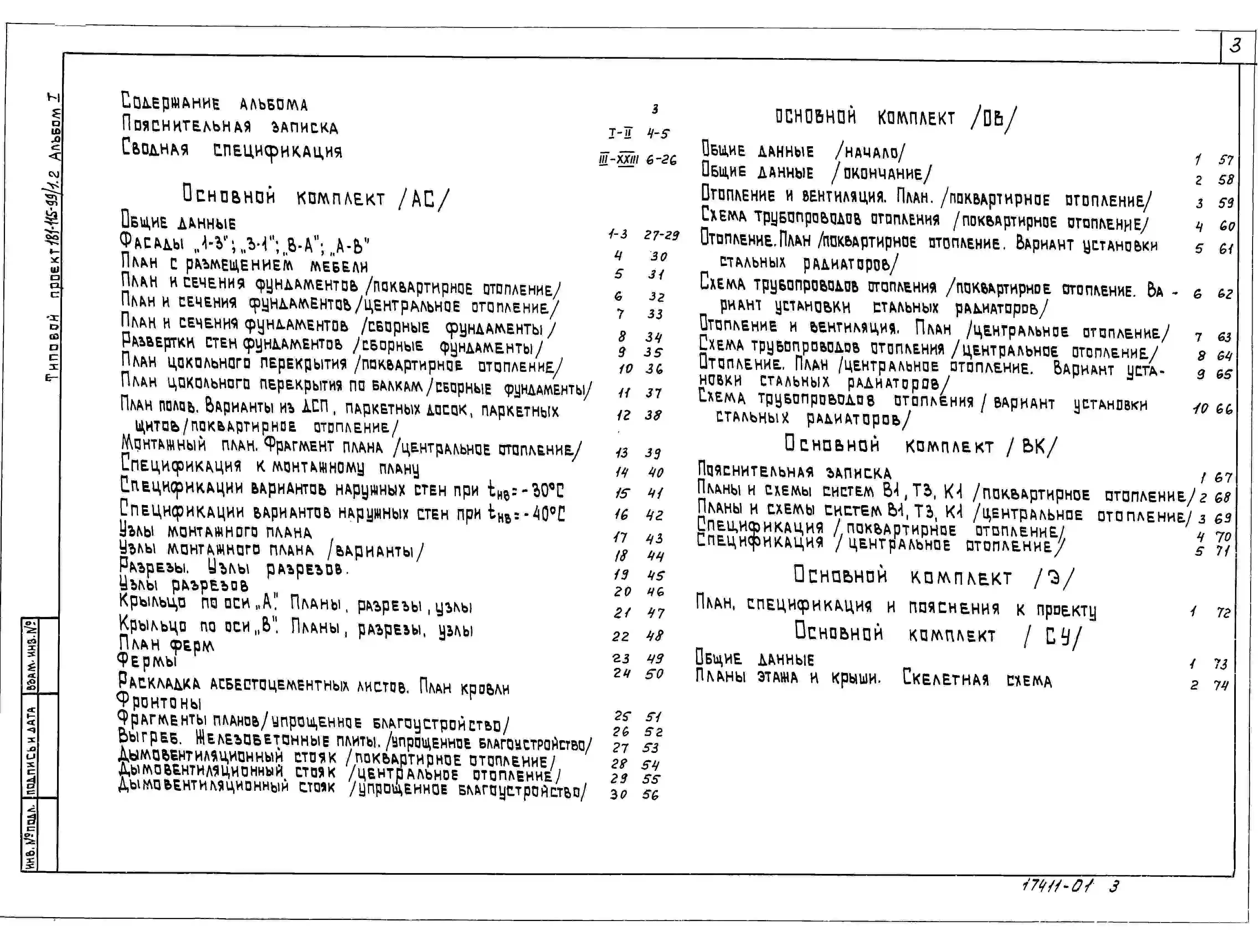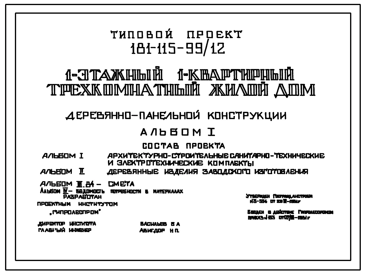 Типовой проект 181-115-99/1.2 Дом с трехкомнатной квартирой типа 3Б. Общая площадь 64 м2 .Для Костромской области.. Паспорт проекта (формат PDF) Чертежи (формат TIF)