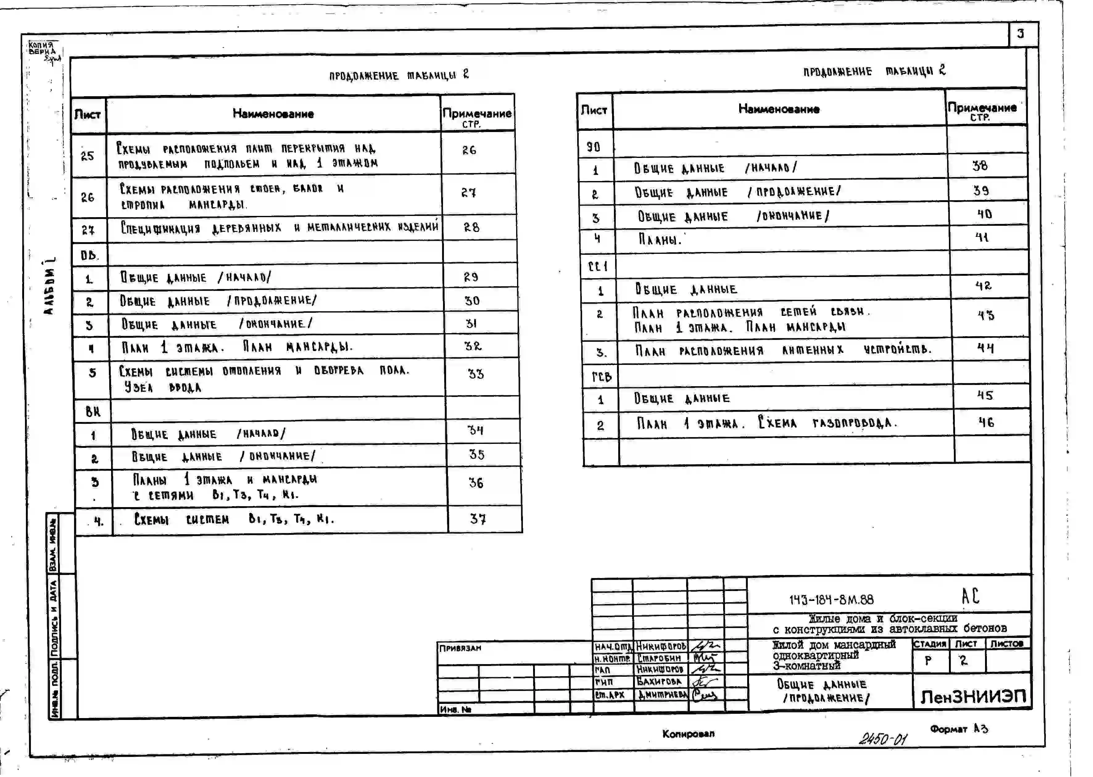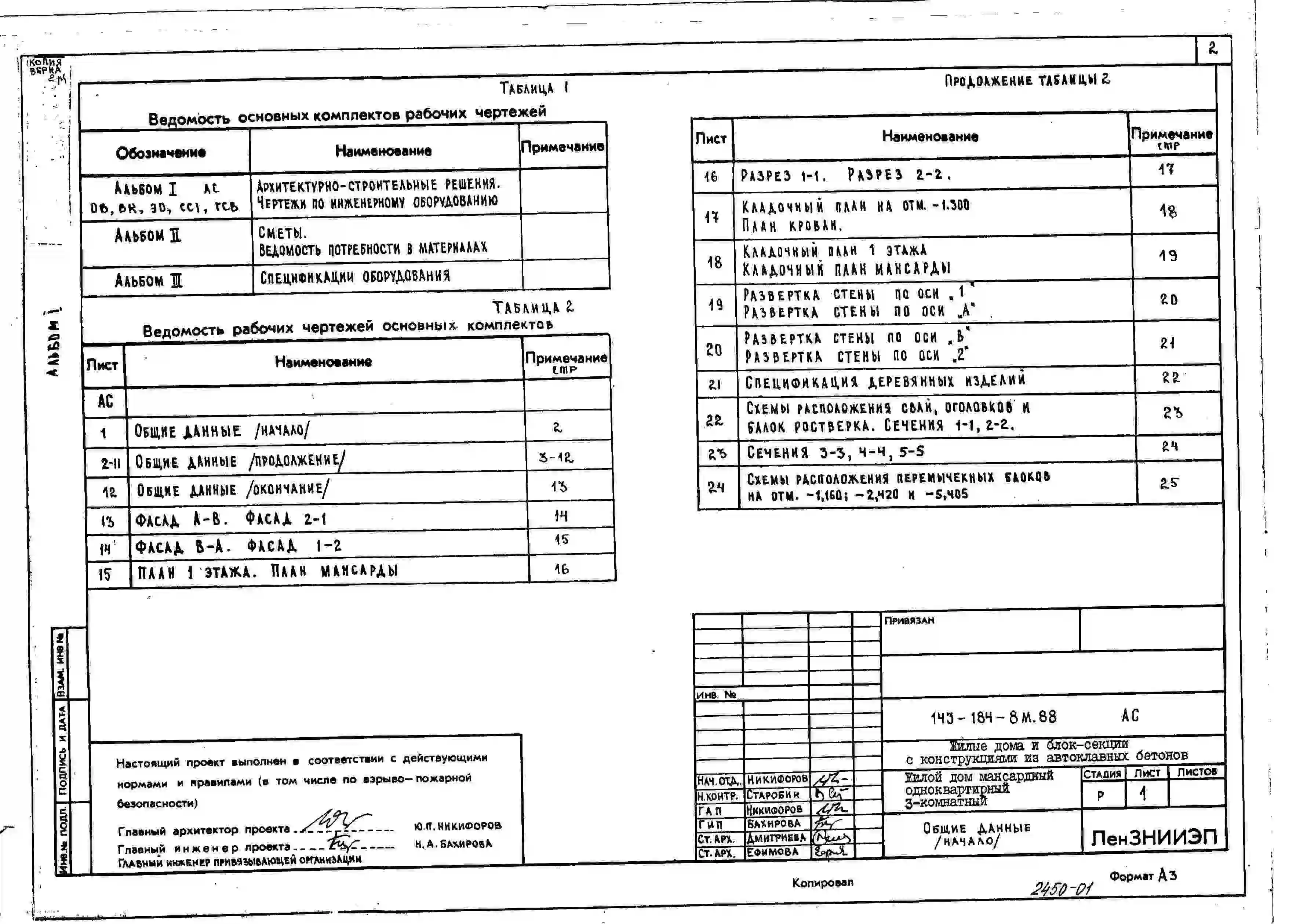 Типовой проект 143-184-8м.88 Мансардный дом с трехкомнатной квартирой. Паспорт проекта (формат PDF) Чертежи (формат TIF)