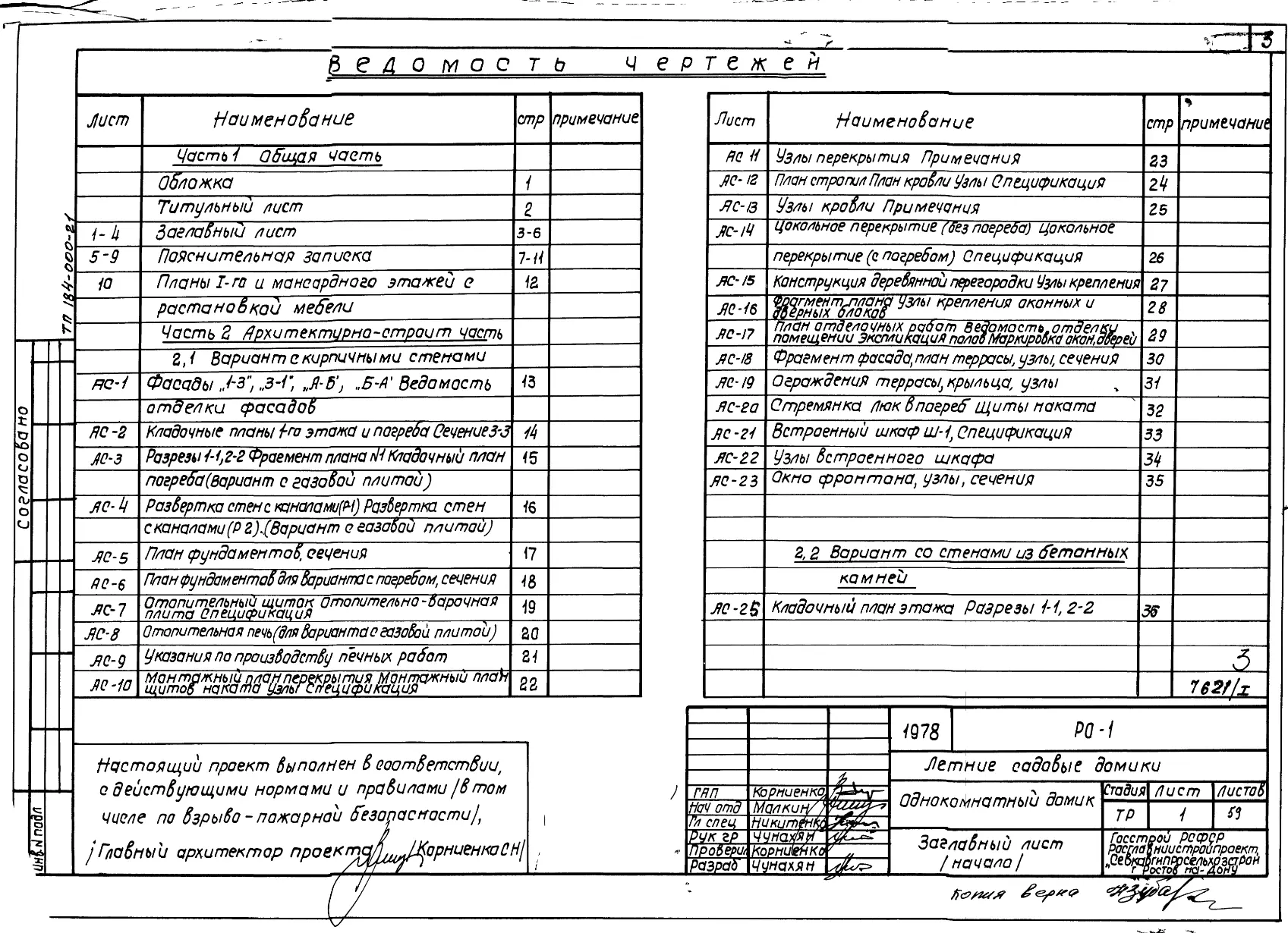 Типовой проект 184-000-21 Однокомнатный садовый летний домик. Для строительства в III климатическом районе.. Паспорт проекта (формат PDF) Чертежи (формат TIF)