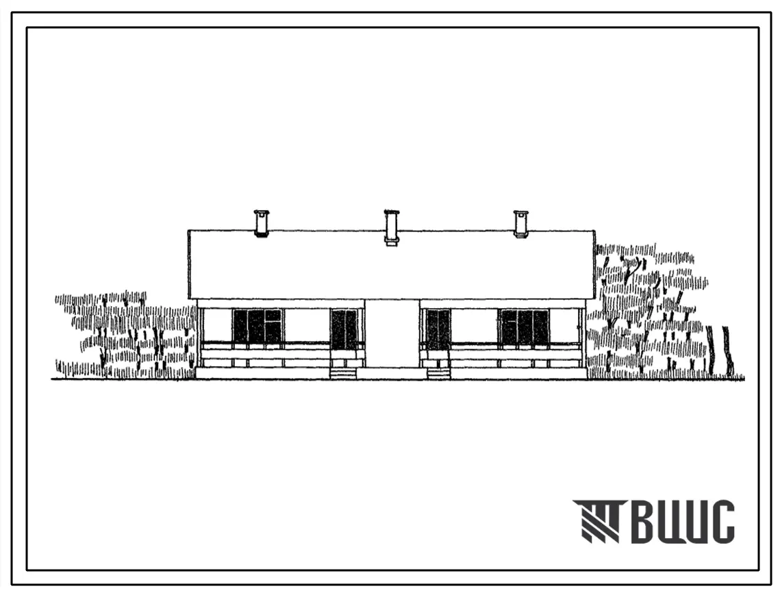 Типовой проект 185-42-45с/69 1-этажный 2-квартирный 2-комнатный жилой дом для строительства в 4 строительно-климатической зоне, в районах с сейсмичностью 7 и 8 баллов.
