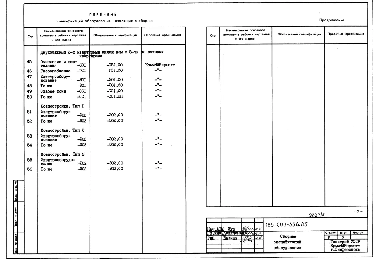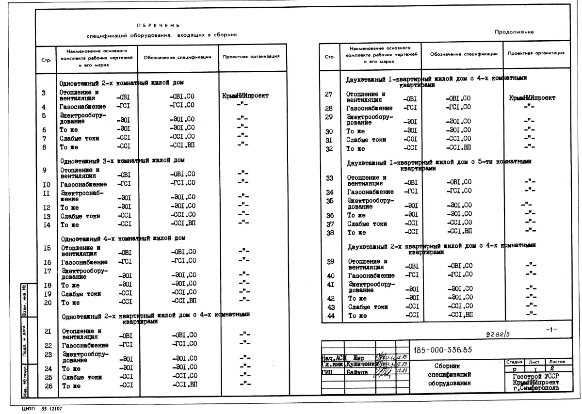 Типовой проект 185-000-336.85 Одноэтажный дом с двухкомнатной квартирой типа 2. Для строительства в городах и поселках городского типа. Паспорт проекта (формат PDF) Чертежи (формат TIF)
