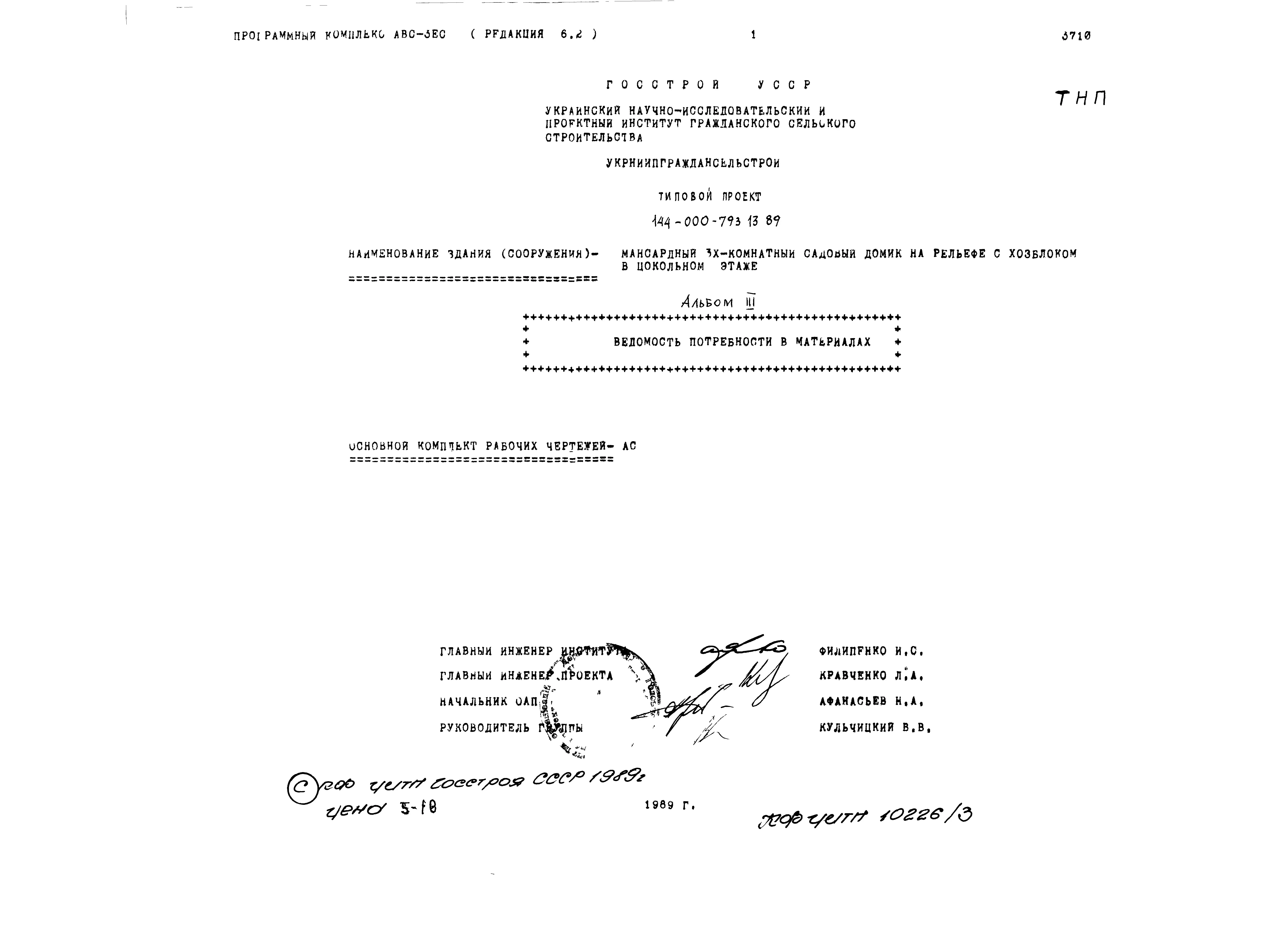 Типовой проект 144-000-793.13.89 Мансардный 3-комнатный садовый домик на рельефе с хозблоком в цокольном этаже. Чертежи (формат TIF)