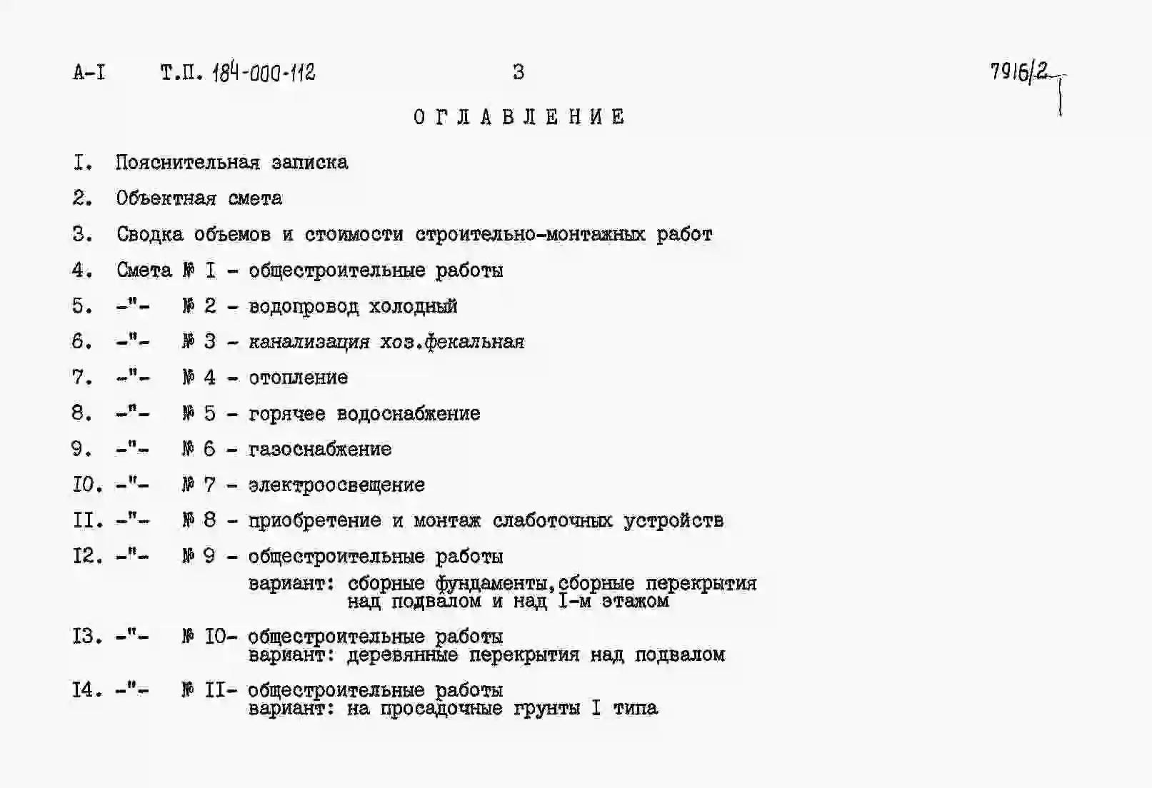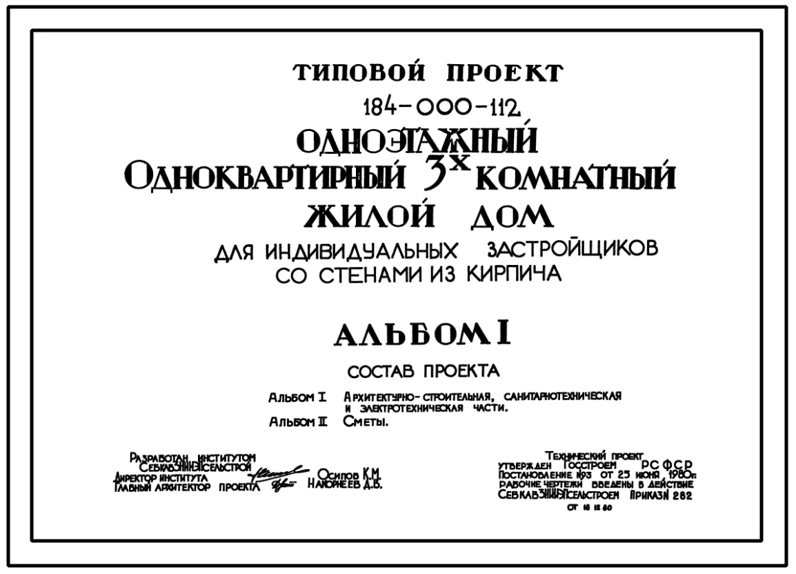 Типовой проект 184-000-112 Одноэтажый одноквартирный трехкомнатный жилой дом для индивидуальных застройщиков. Паспорт проекта (формат PDF) Чертежи (формат TIF)