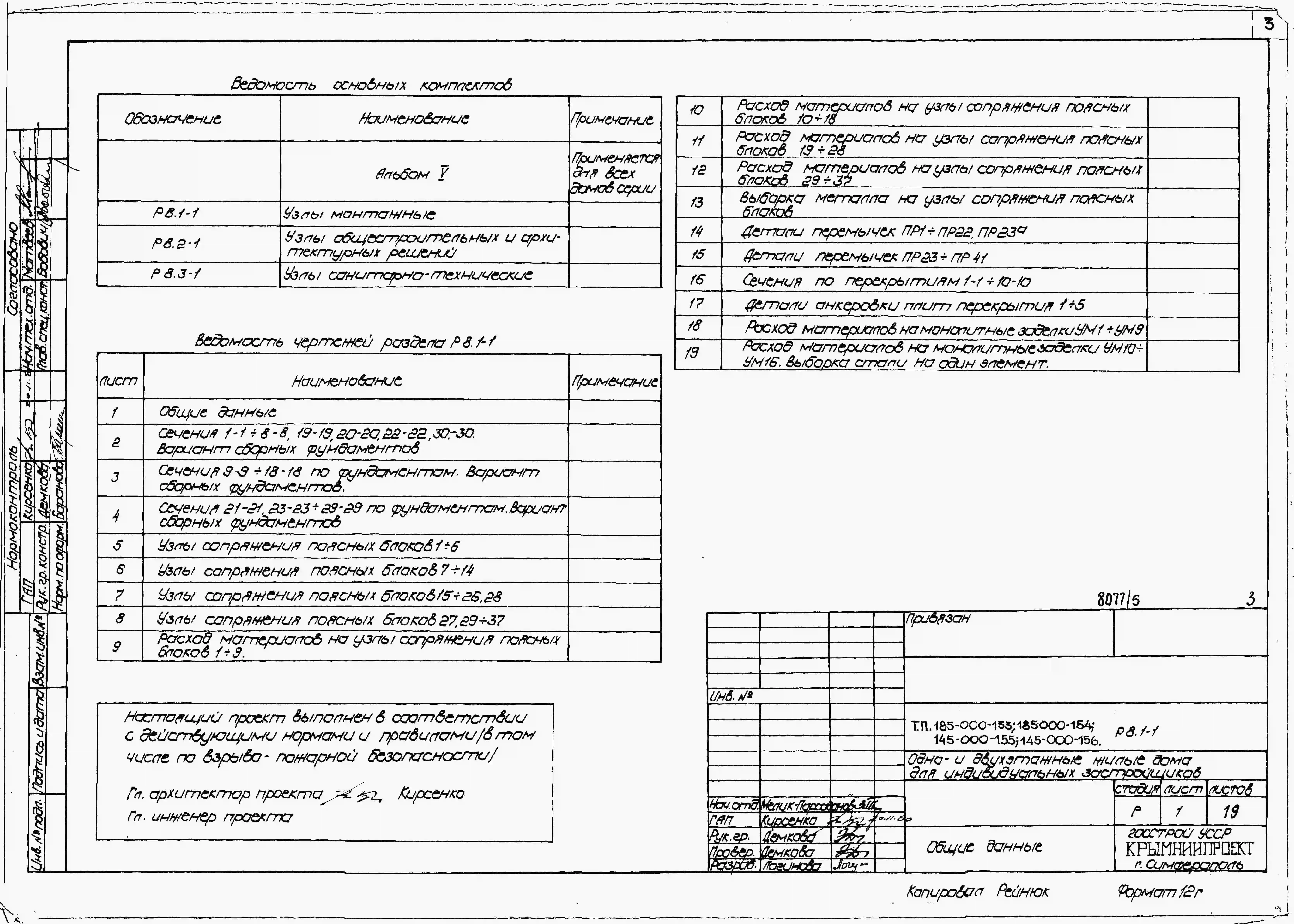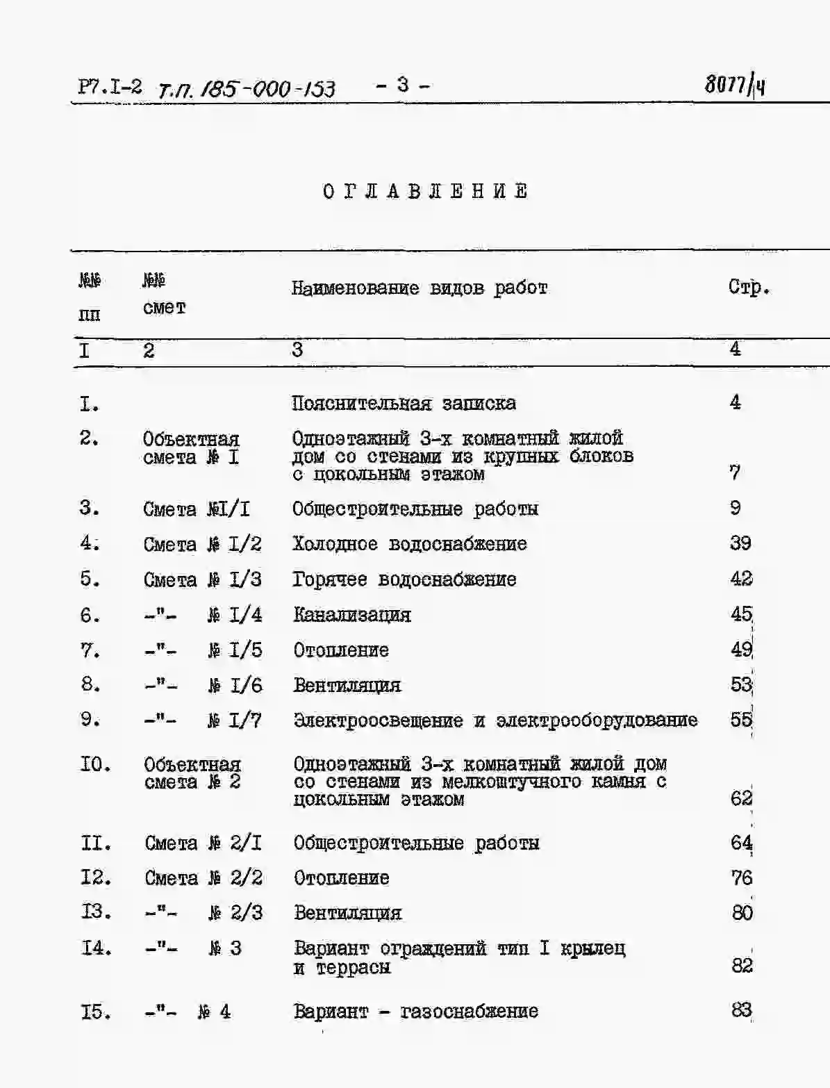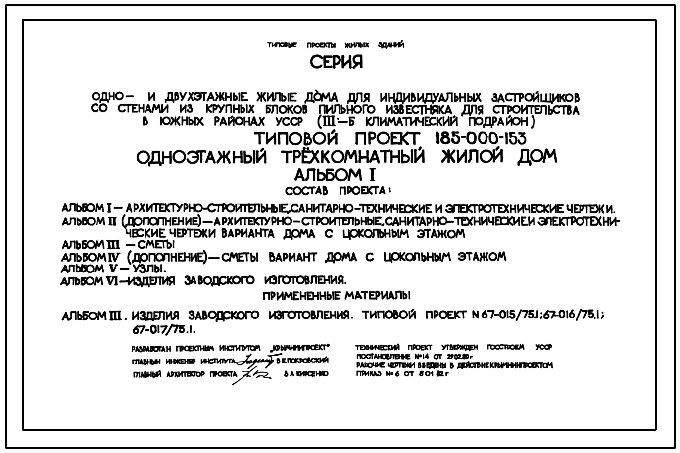 Типовой проект 185-000-153 Одноэтажный трехкомнатный жилой дом. Стены из крупных блоков пильного известняка.. Паспорт проекта (формат PDF) Чертежи (формат TIF)